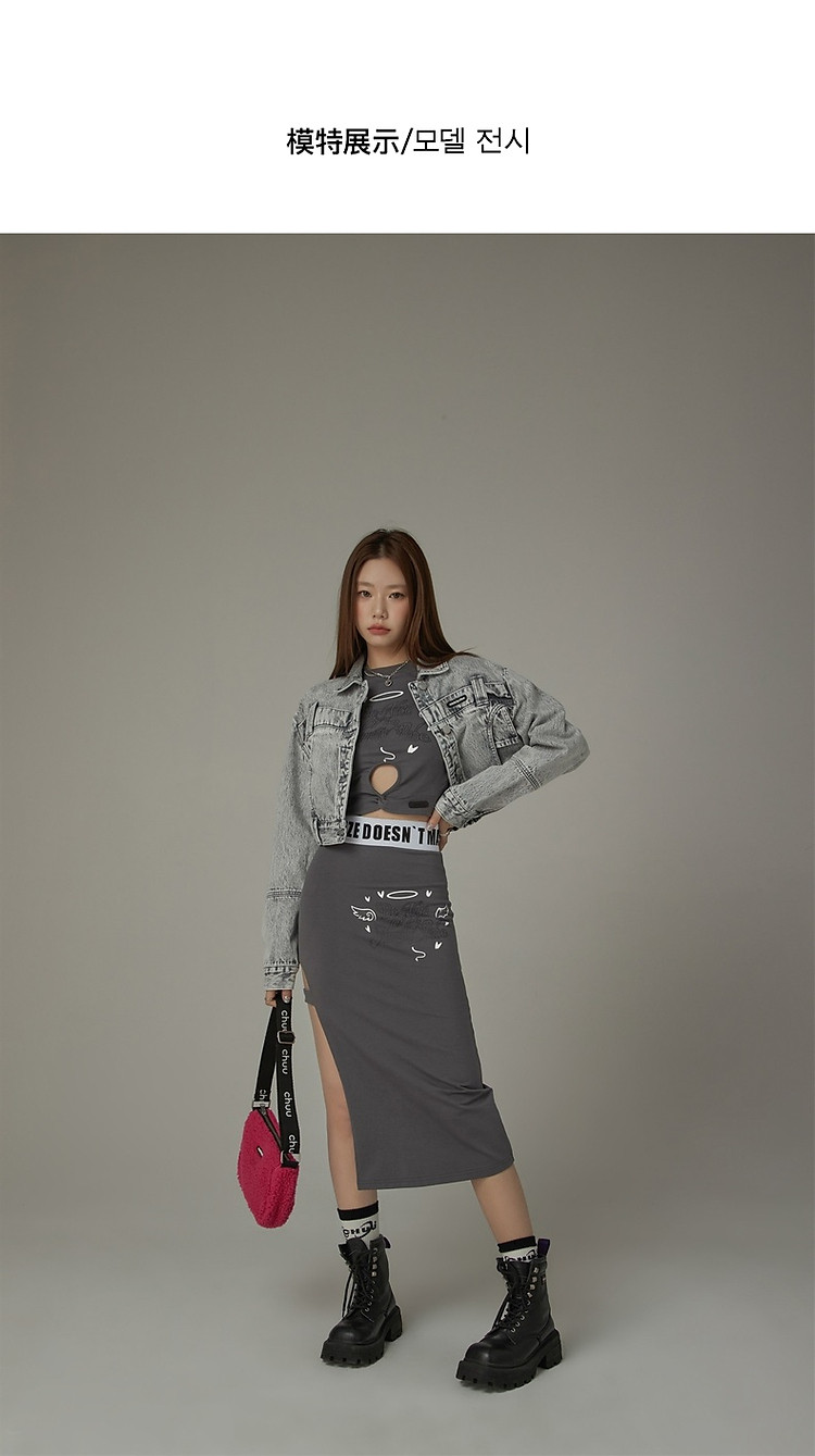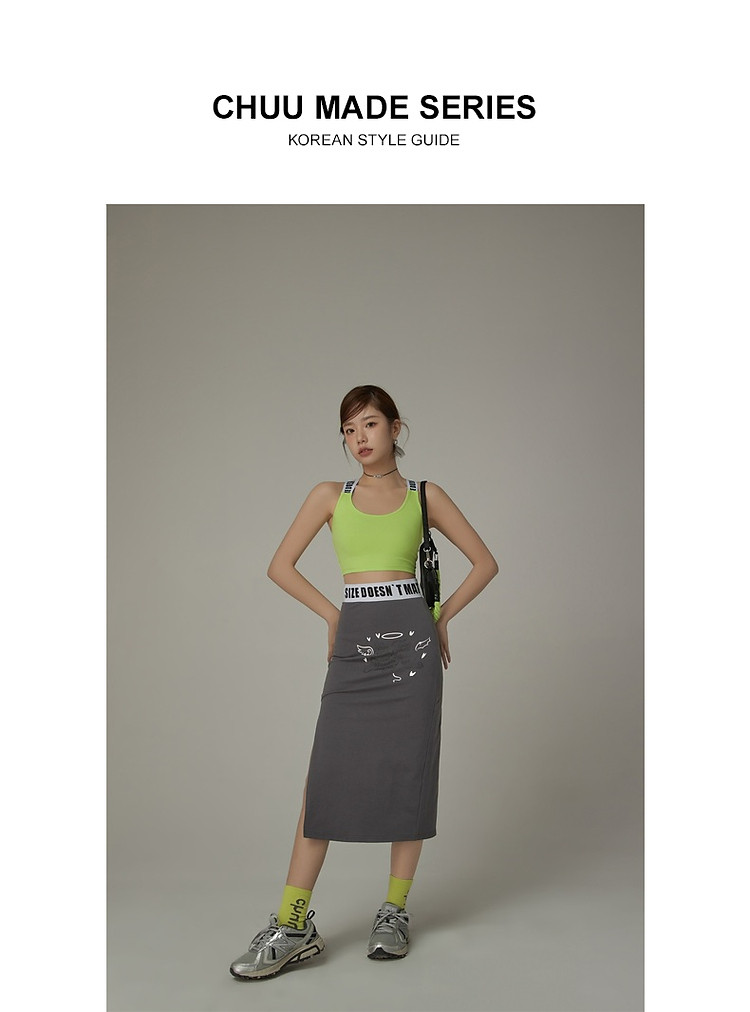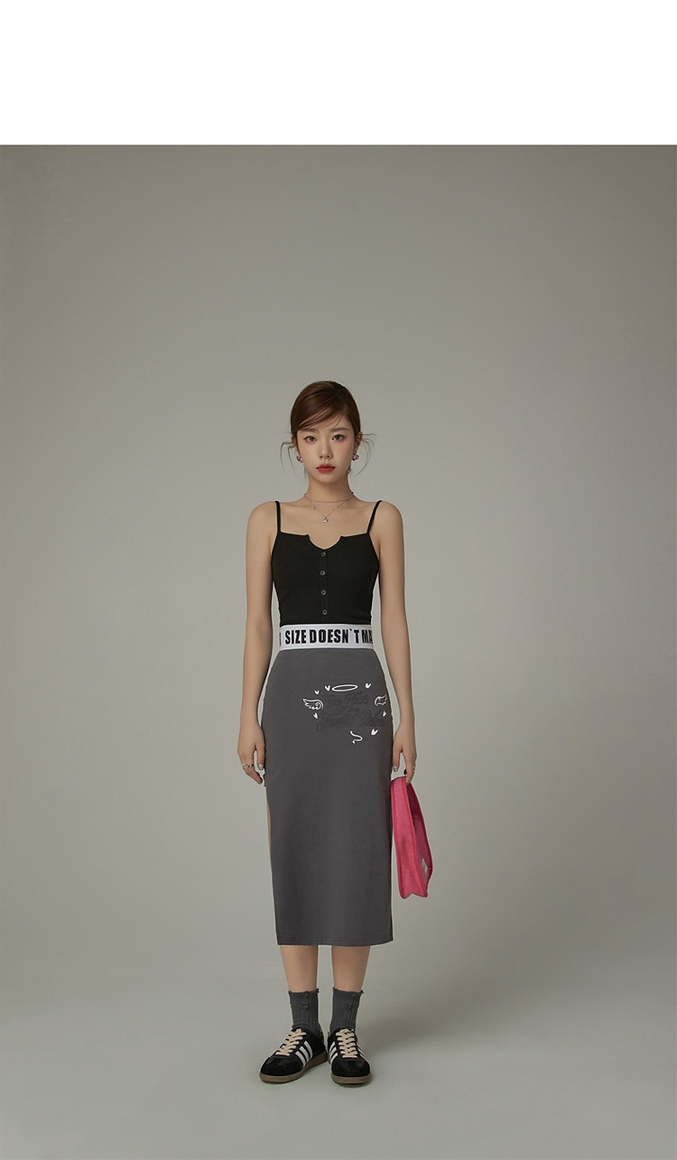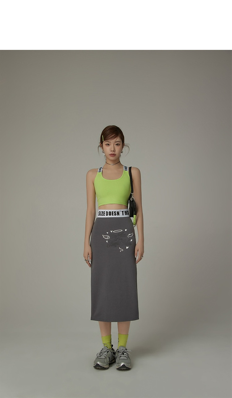 印花开衩半身裙女春夏辣妹字母镂空不对称包臀长裙子 463763