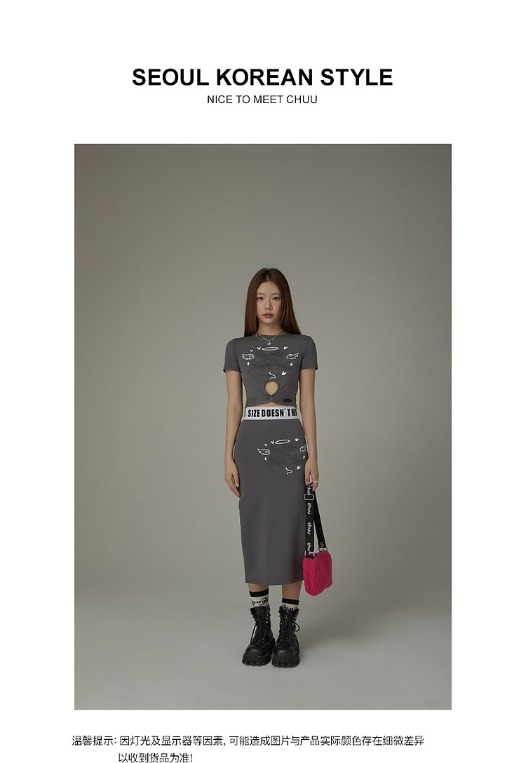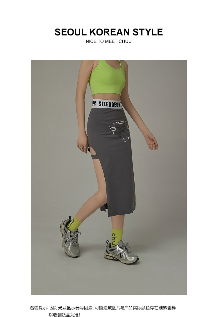 商品名称:印花开衩半身裙女春夏辣妹字母镂空不对称包臀长裙子 463763