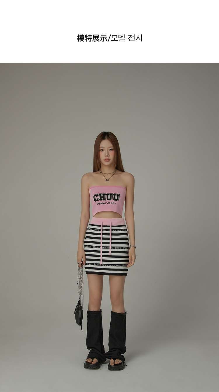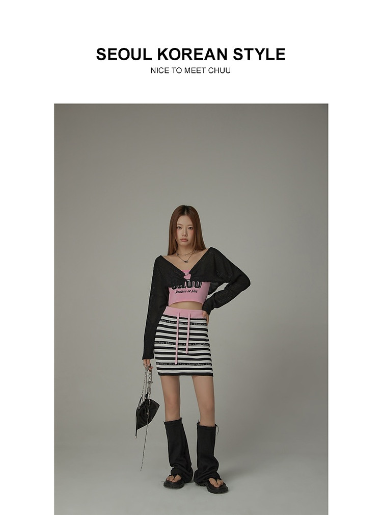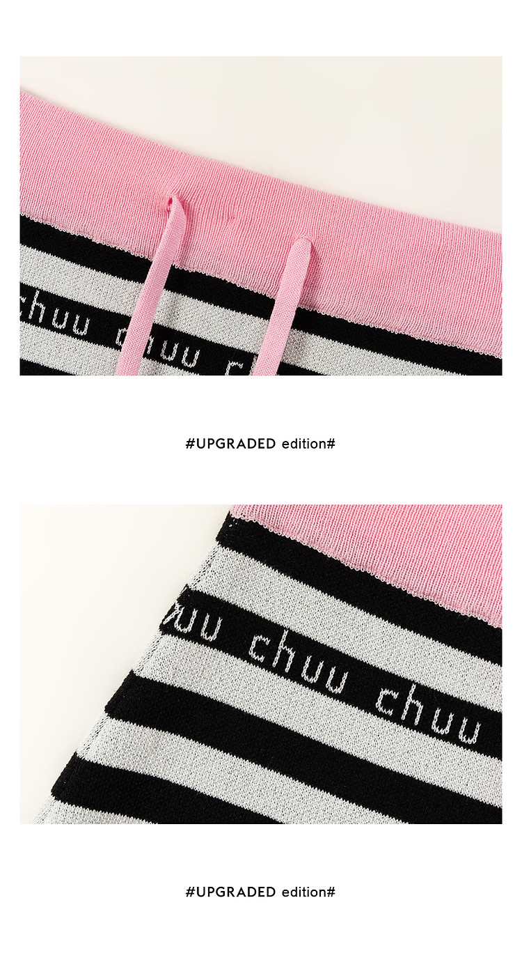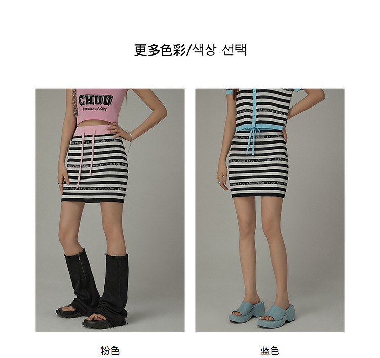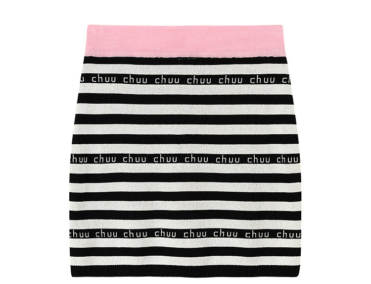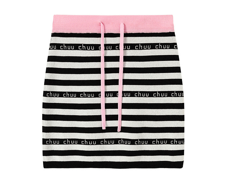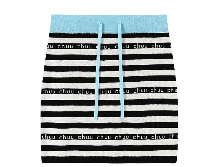 商品名称:字母撞色抽绳半身裙女春夏高腰拼接针织a字包臀裙子 773395