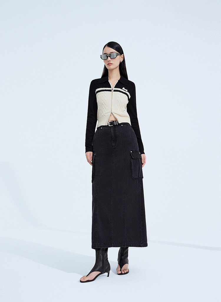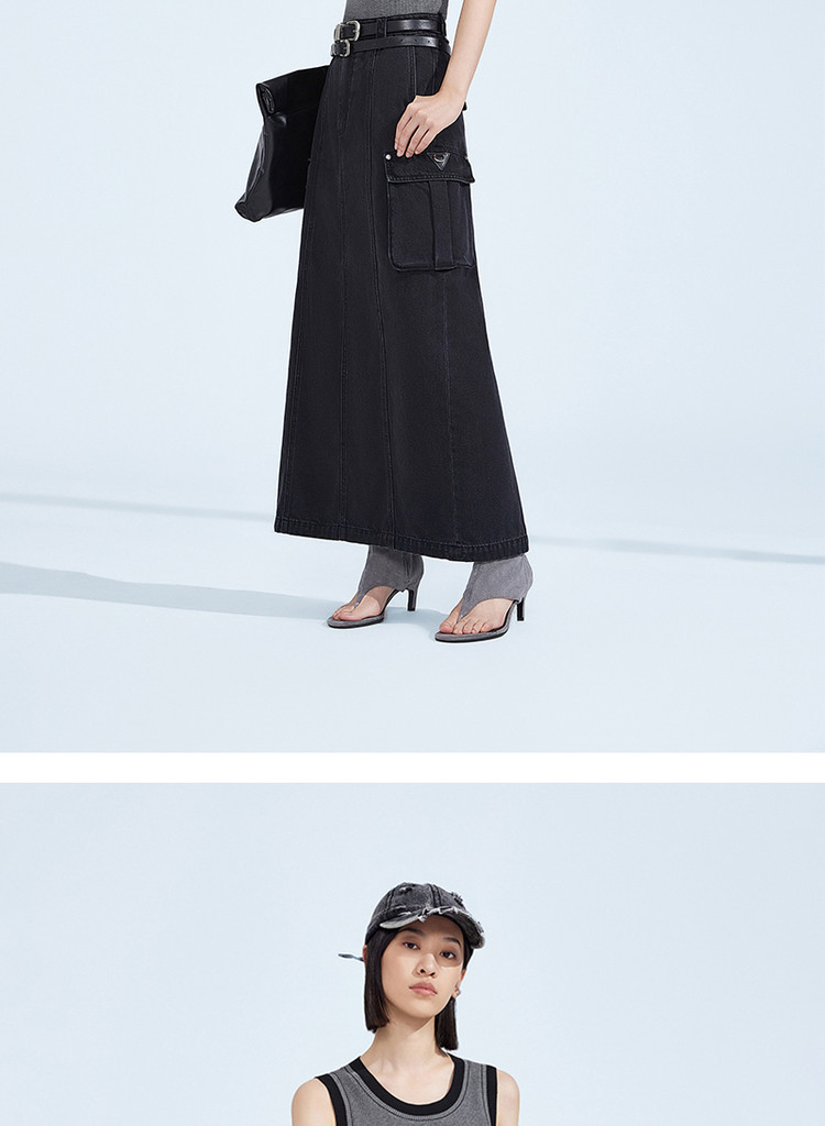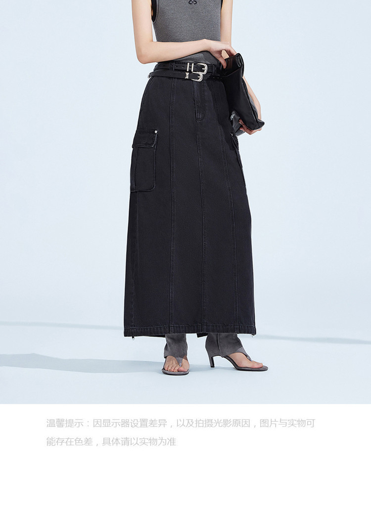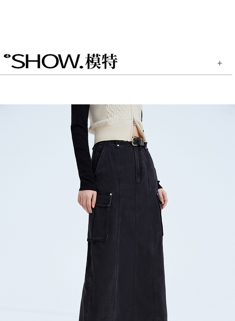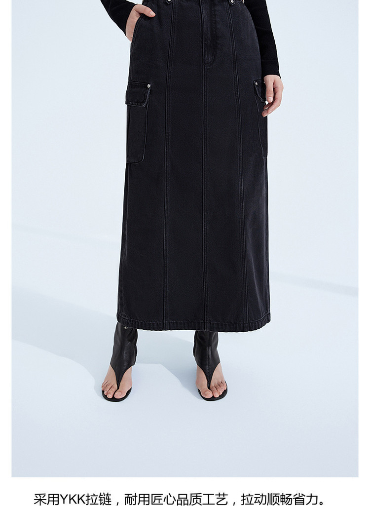 春装 开衩高腰中长款休闲工装风牛仔半身裙 825679