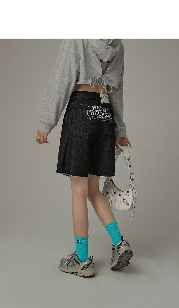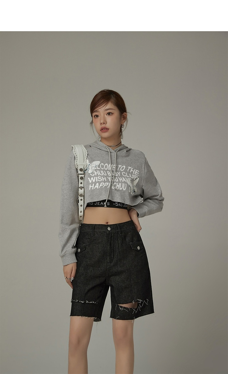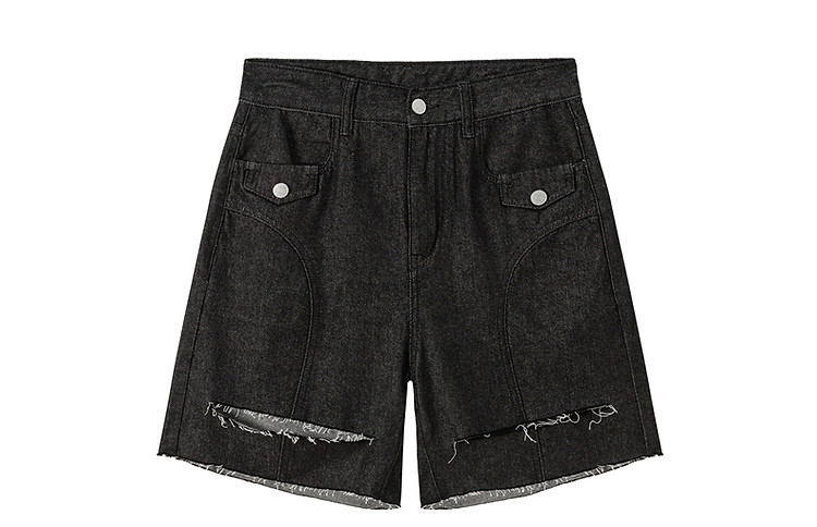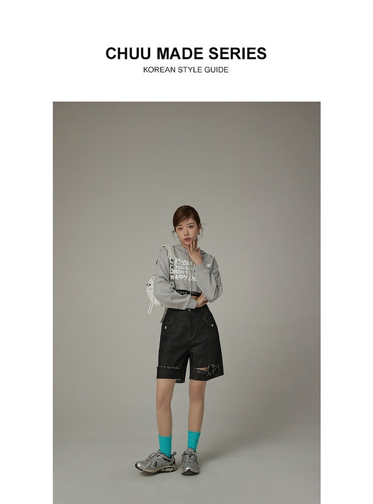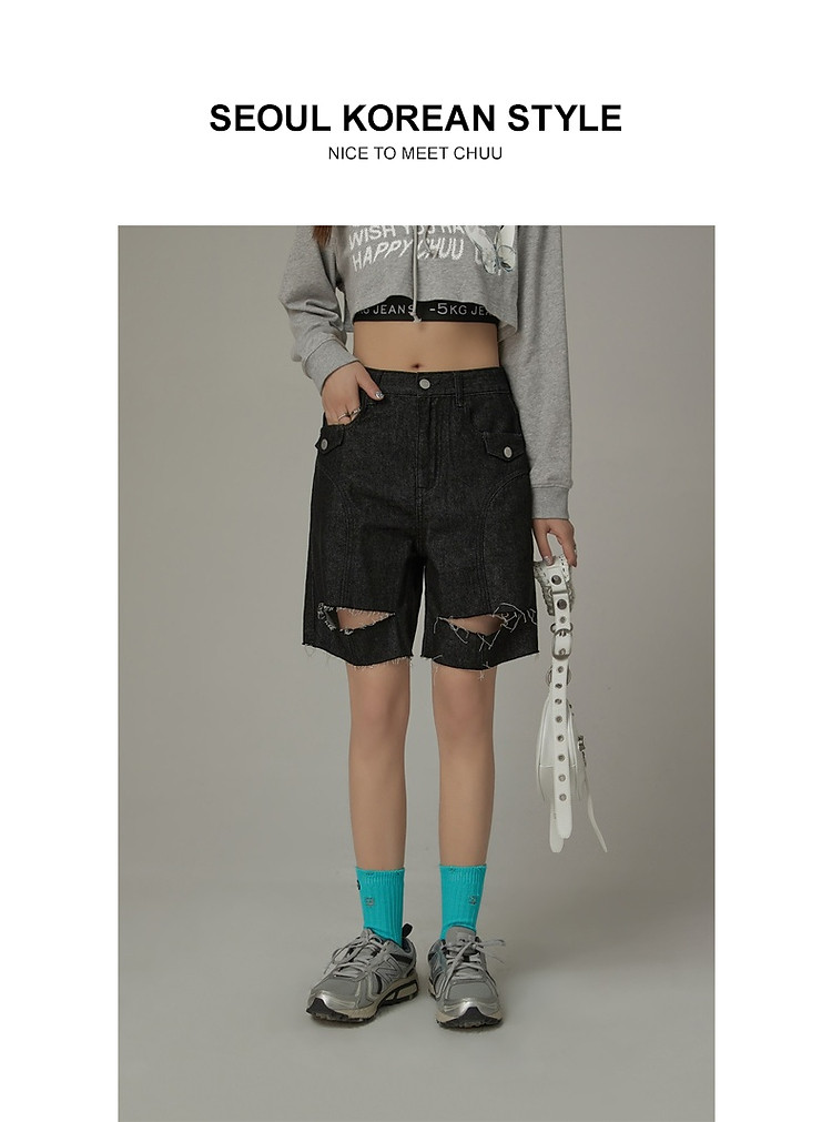 CHUU破洞牛仔短裤女夏设计感高腰毛边显瘦中裤 753043