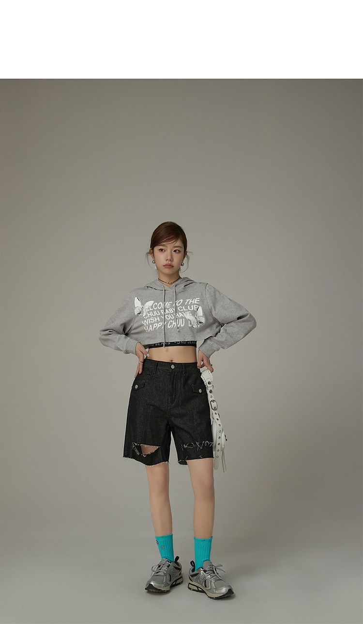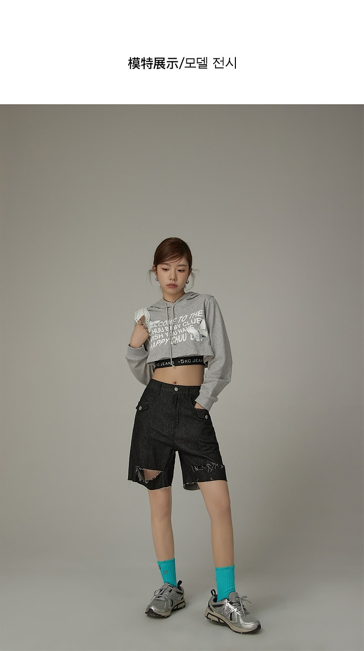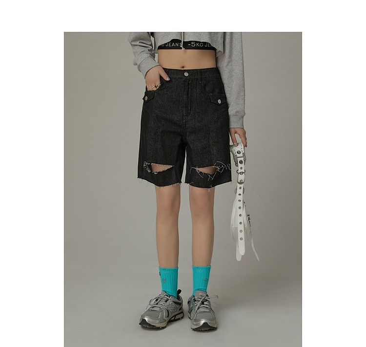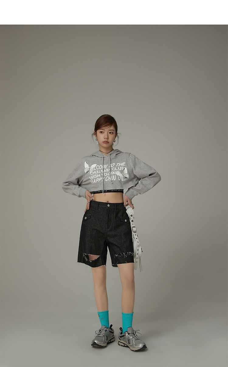 CHUU破洞牛仔短裤女夏设计感高腰毛边显瘦中裤 753043