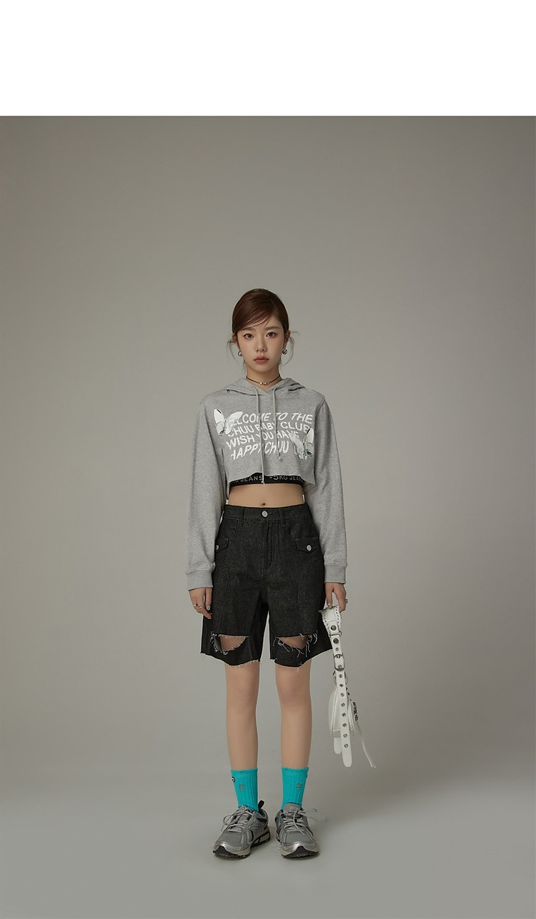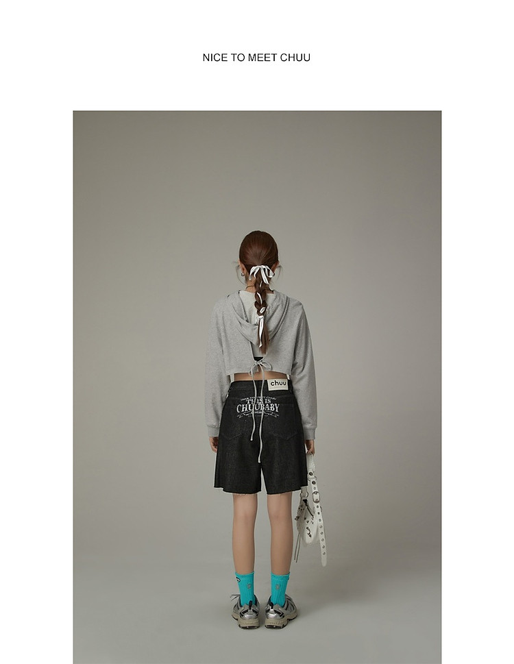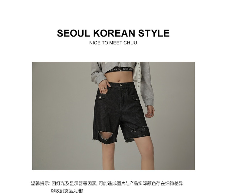 商品名称:CHUU破洞牛仔短裤女夏设计感高腰毛边显瘦中裤 753043