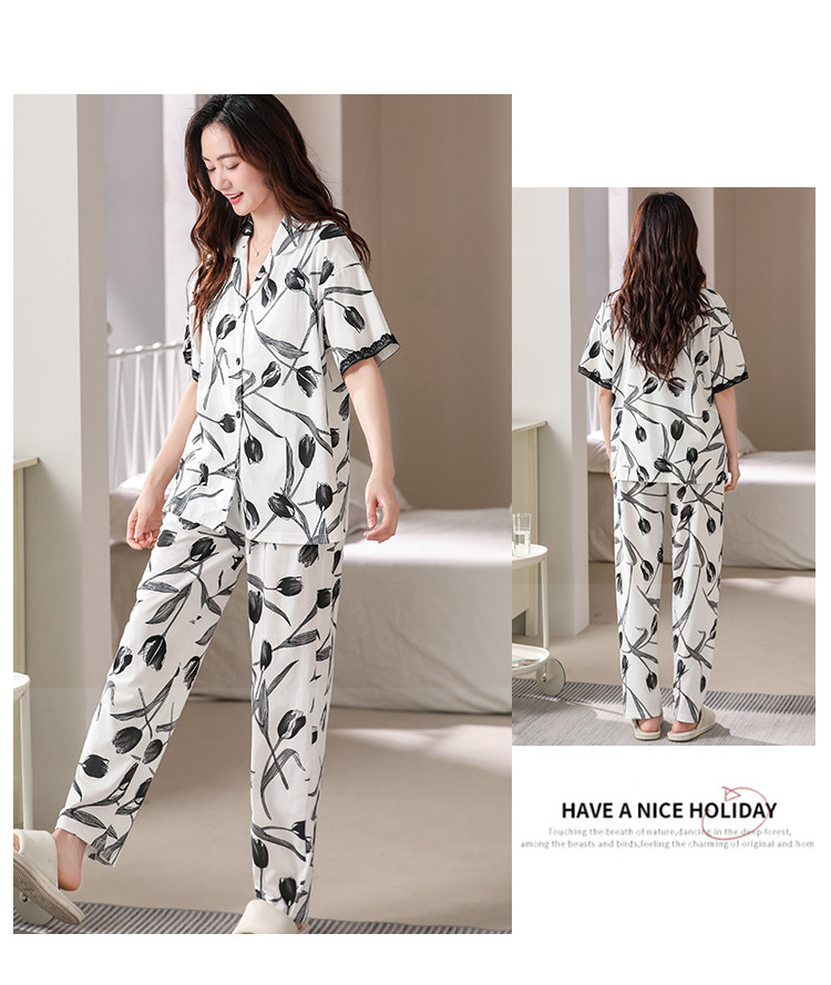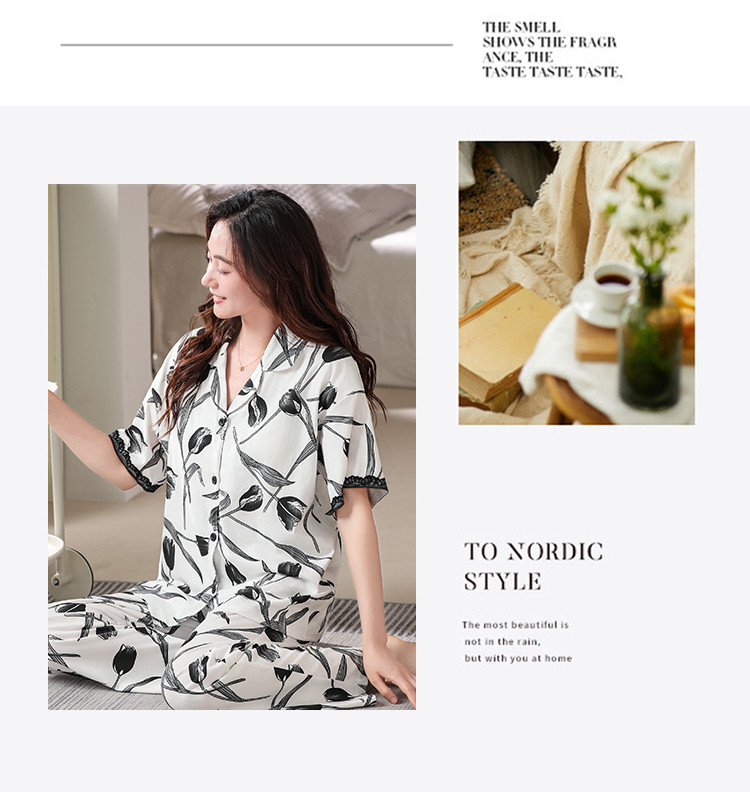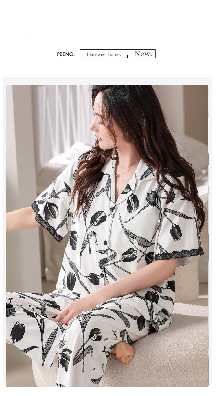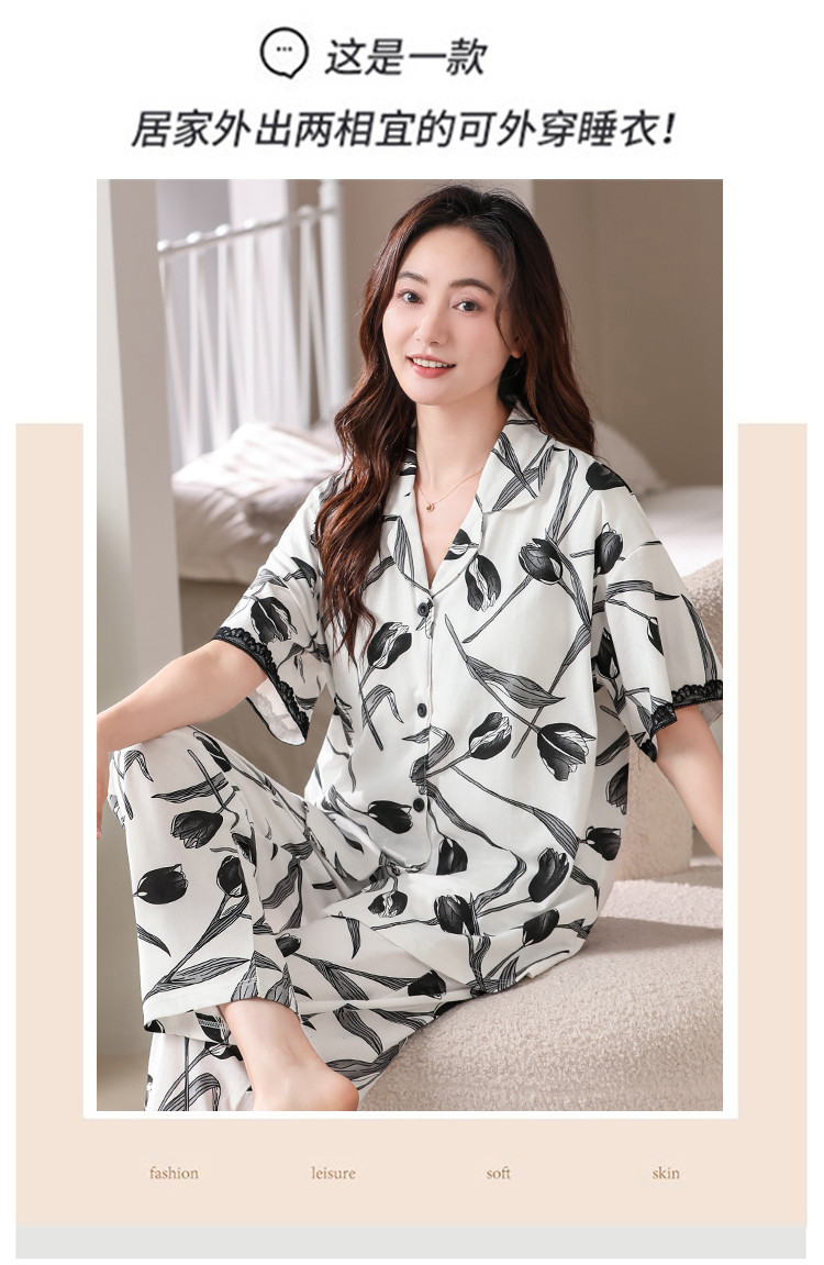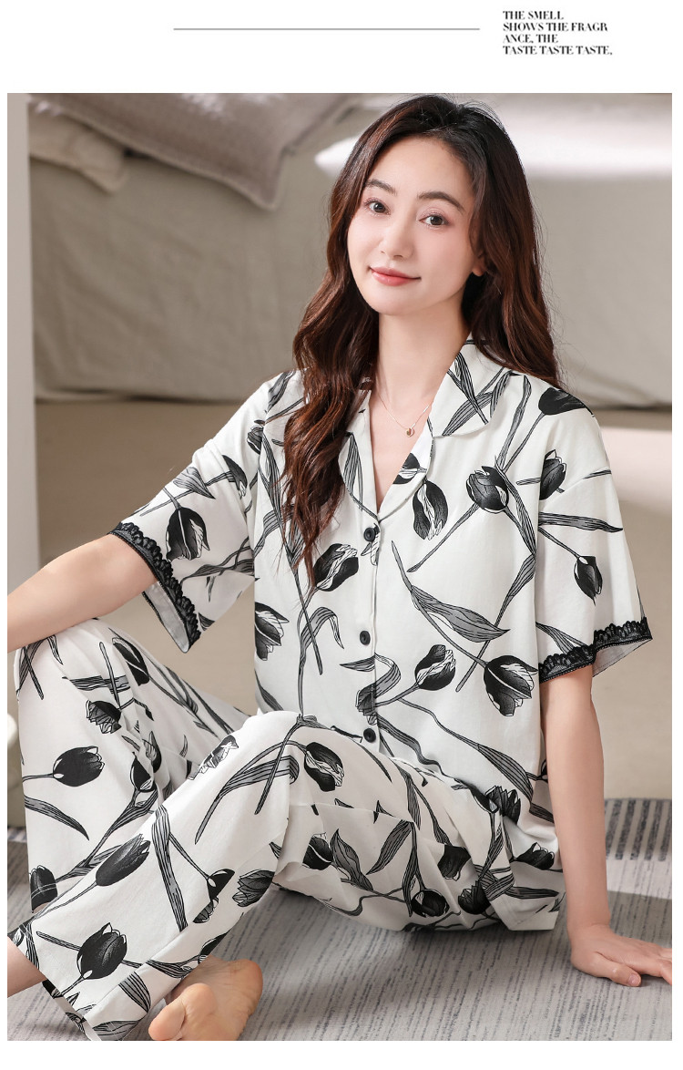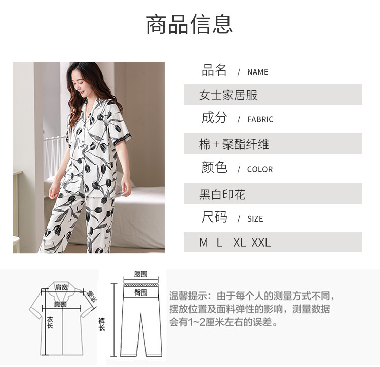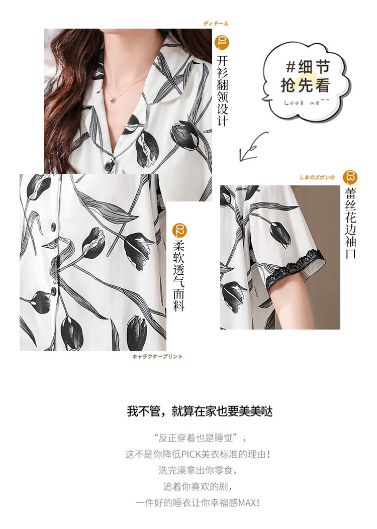 商品名称:【浪漫法式】女睡衣春夏开衫翻领自带文胸垫女士睡衣家居服可外穿 402782