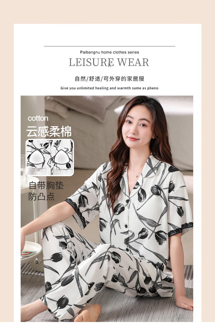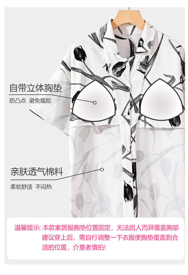 【浪漫法式】女睡衣春夏开衫翻领自带文胸垫女士睡衣家居服可外穿 402782