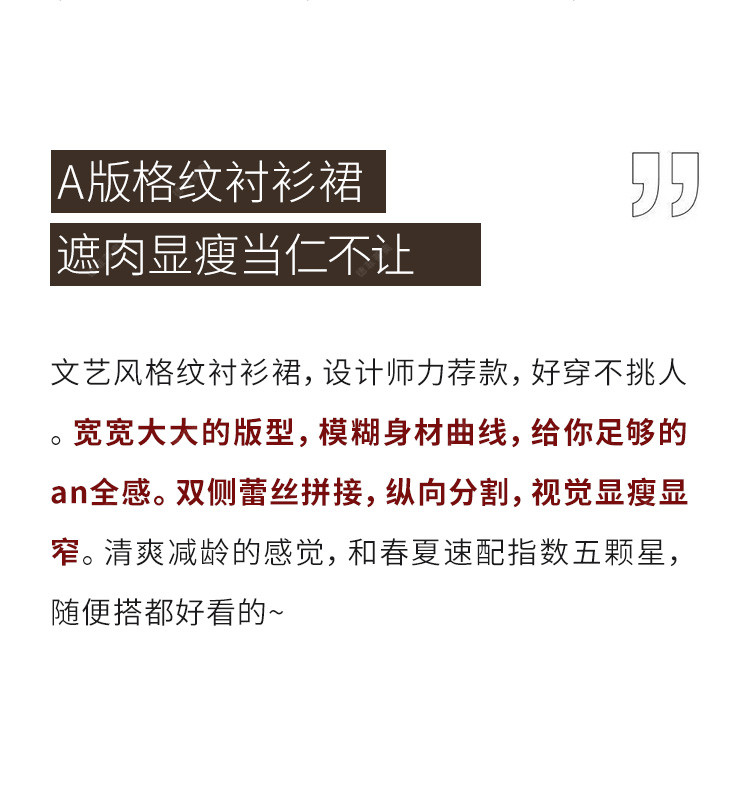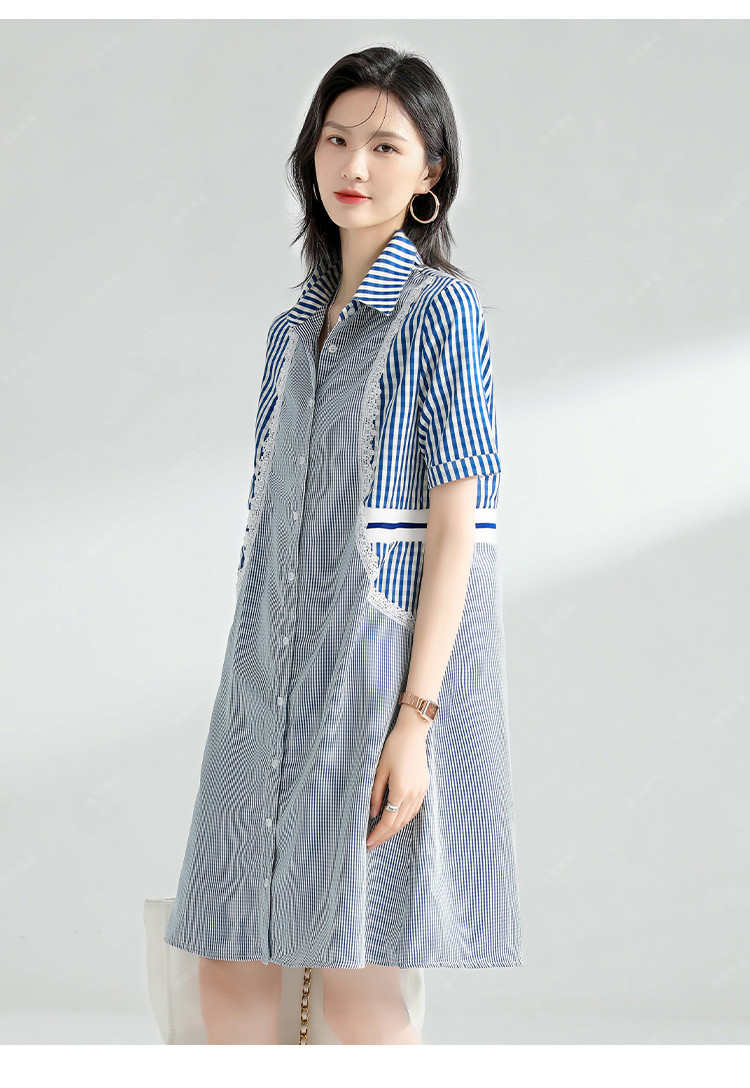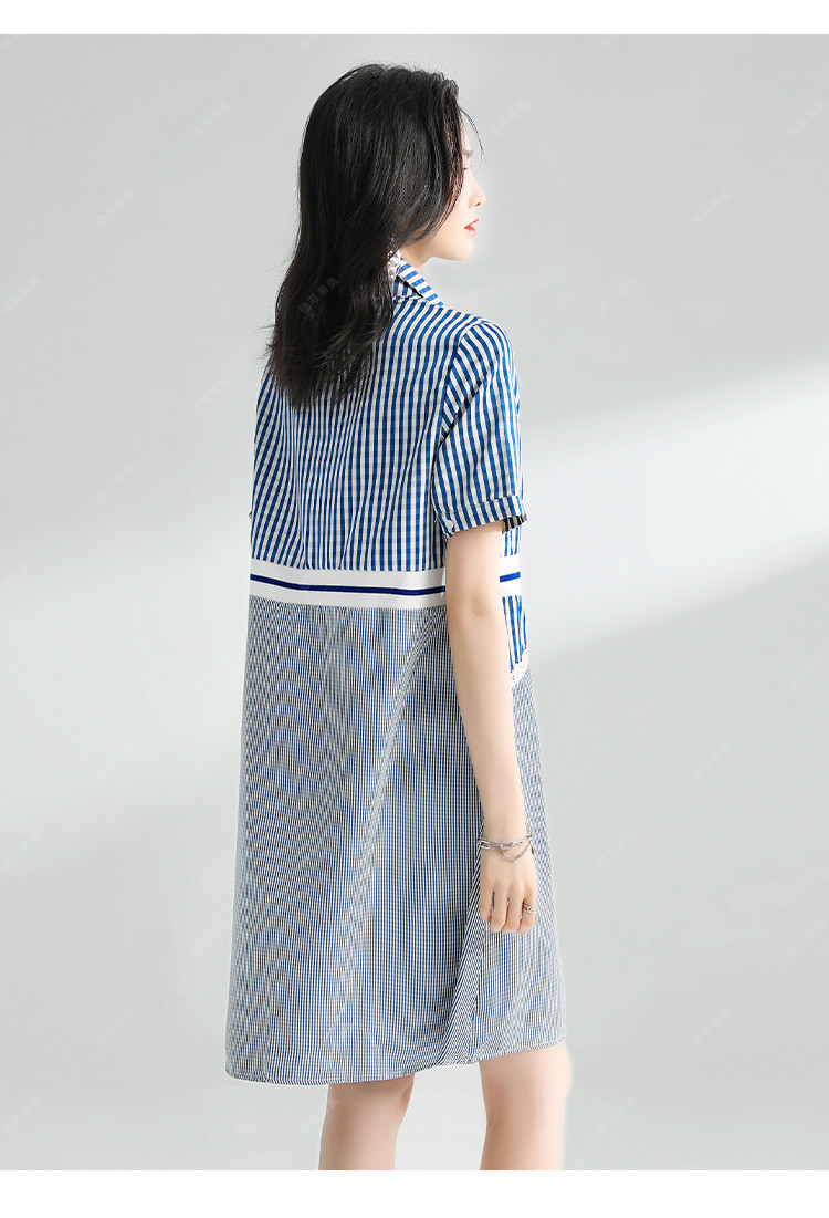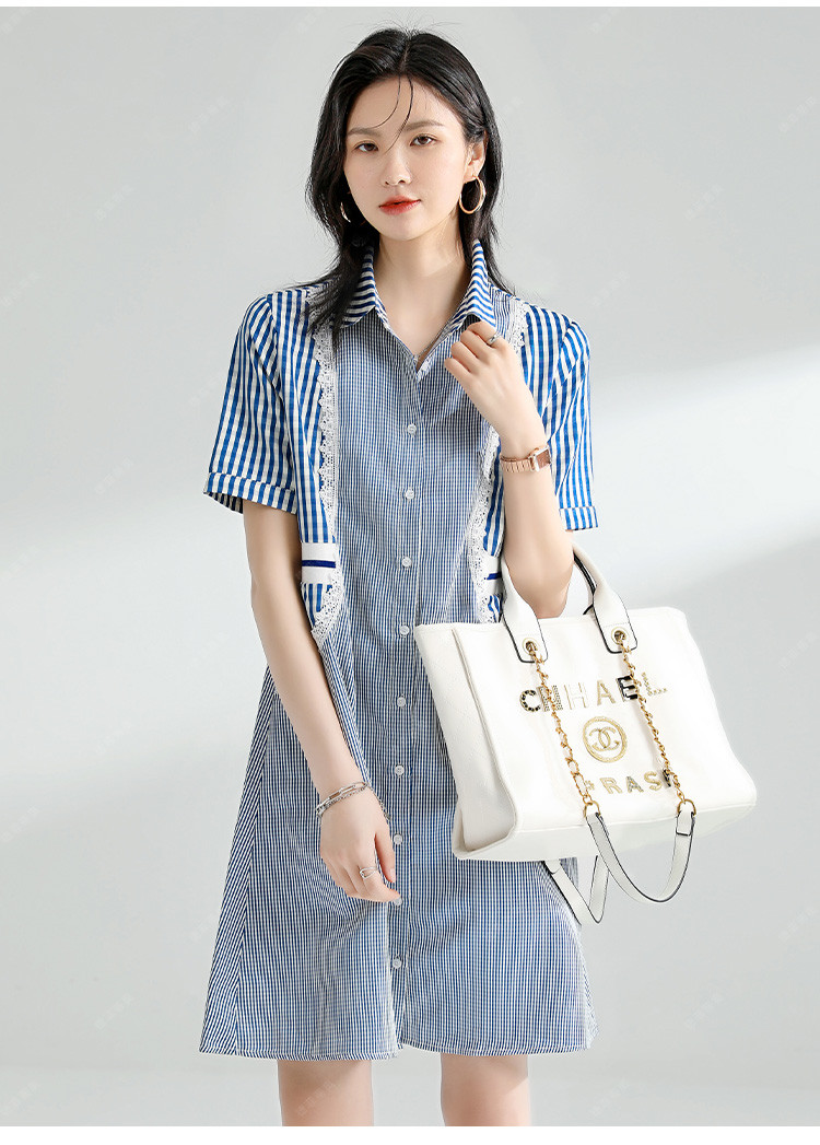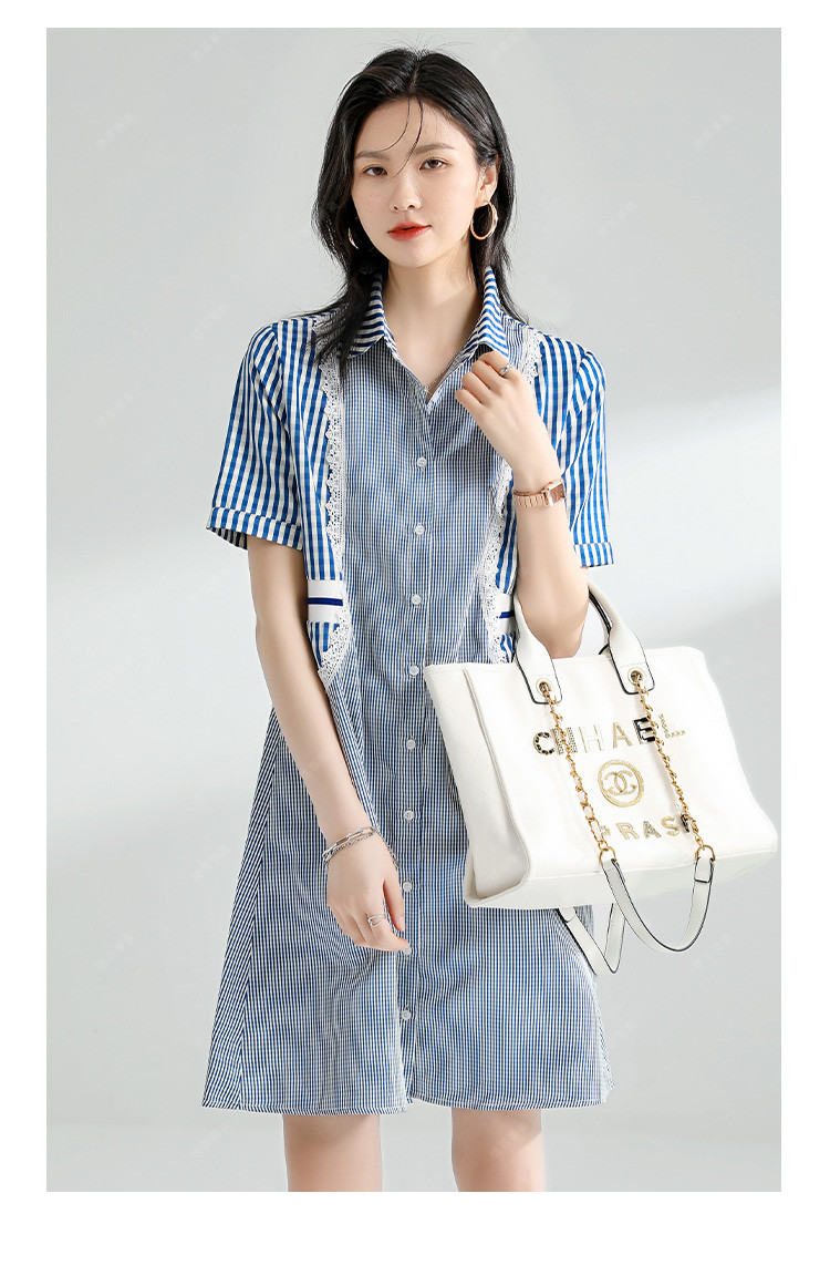 商品名称:【捡漏热卖】韩版时尚文艺格子拼接宽松遮肉翻领衬衫短袖连衣裙夏 126921