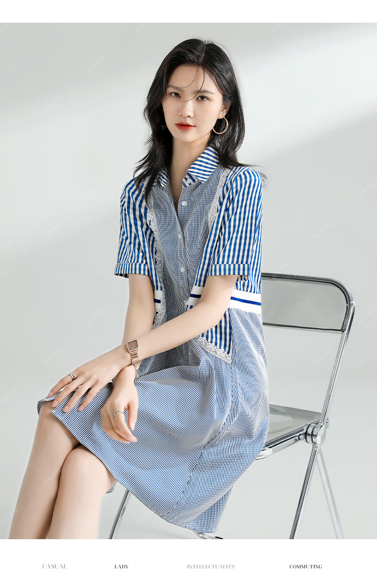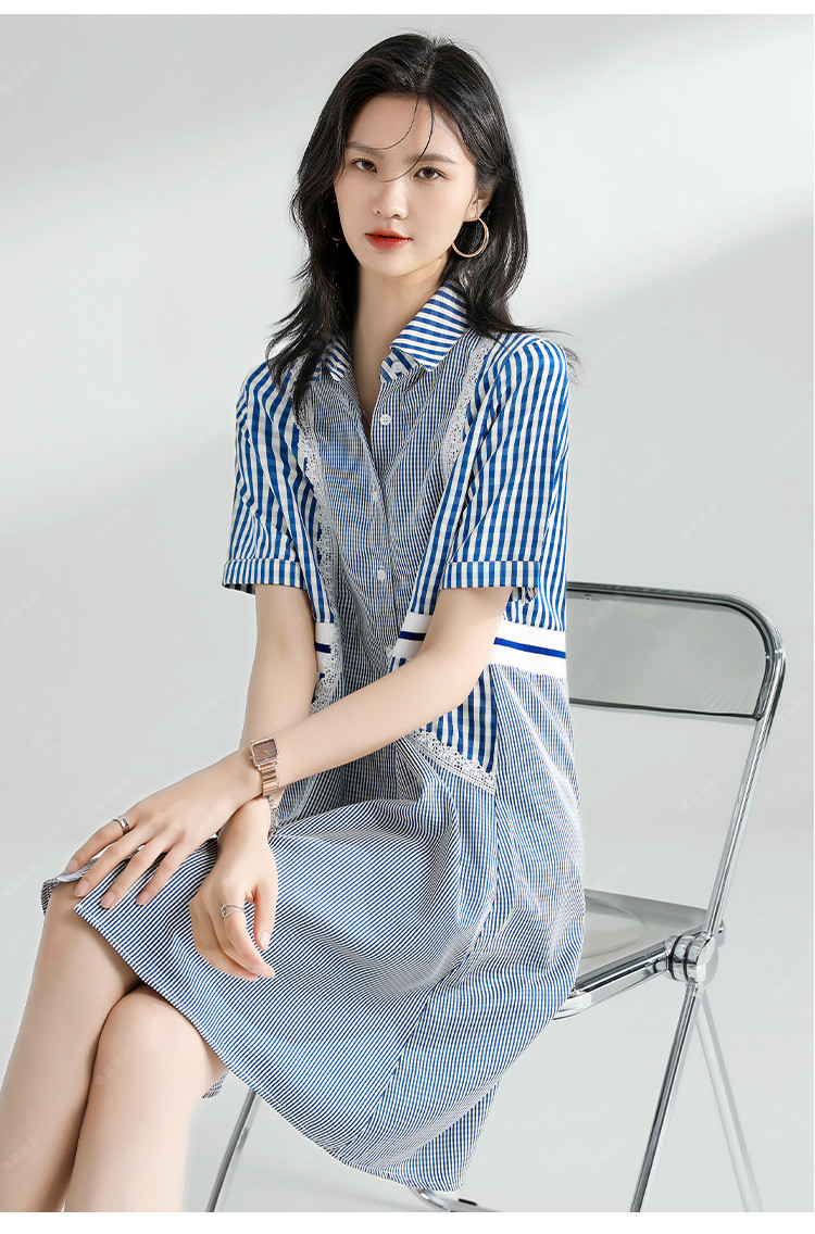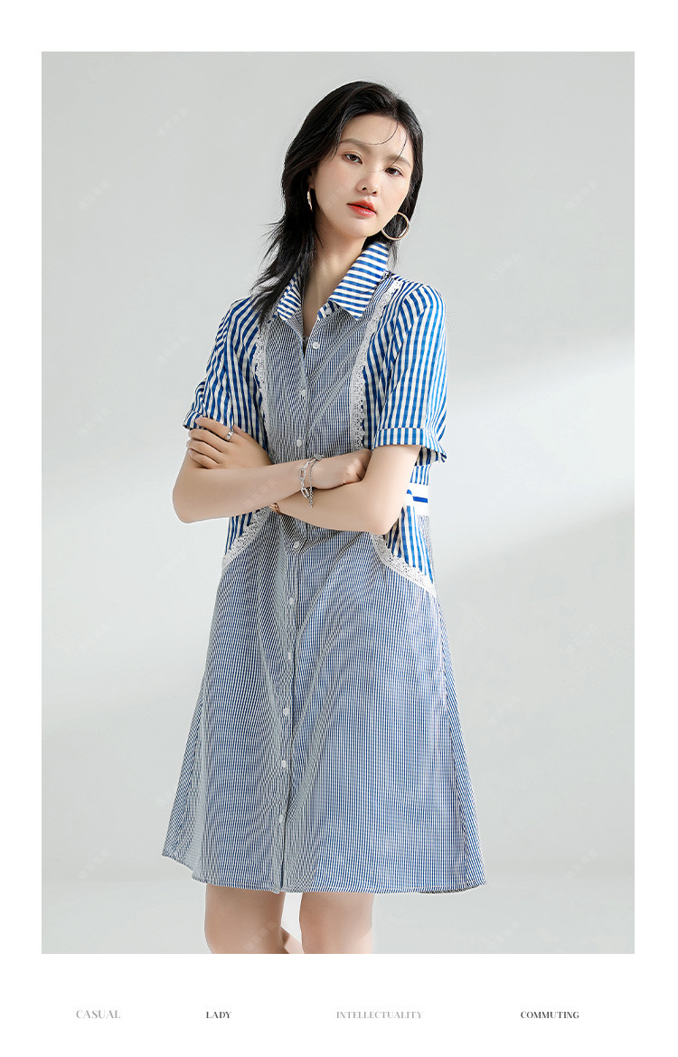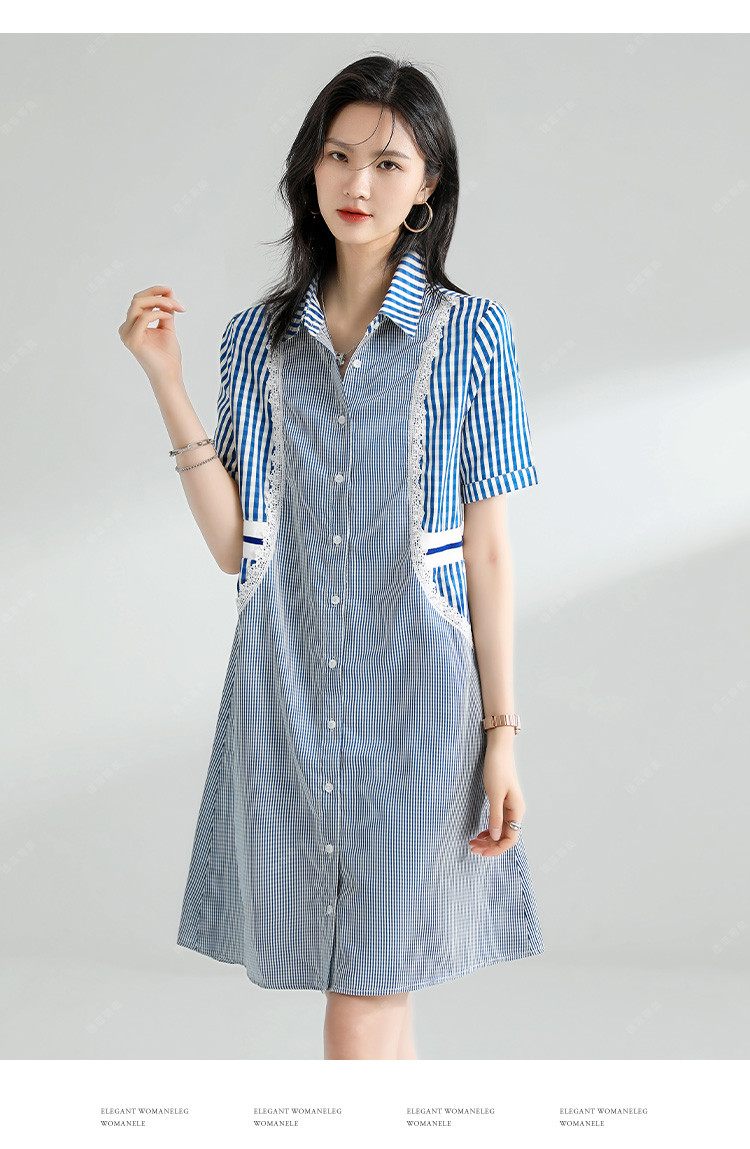 商品名称:【捡漏热卖】韩版时尚文艺格子拼接宽松遮肉翻领衬衫短袖连衣裙夏 126921