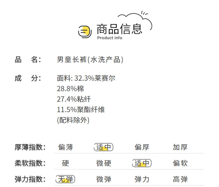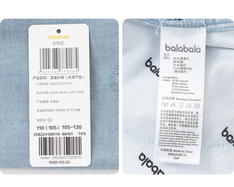 商品名称:凉感抗菌轻薄男童裤子儿童长裤夏装防蚊裤牛仔裤 414853