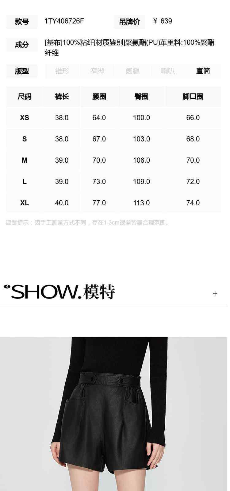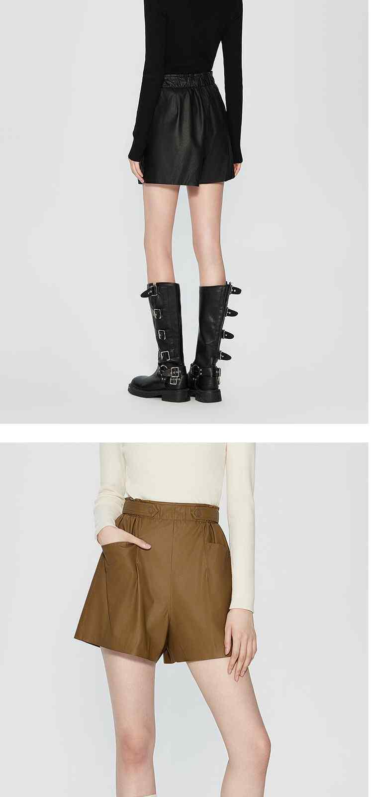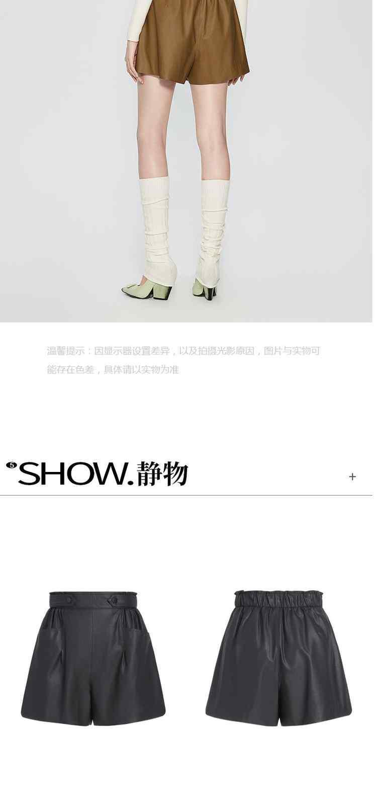 商品名称:春装 松紧高腰宽松显瘦哑光PU直筒短裤女 566543