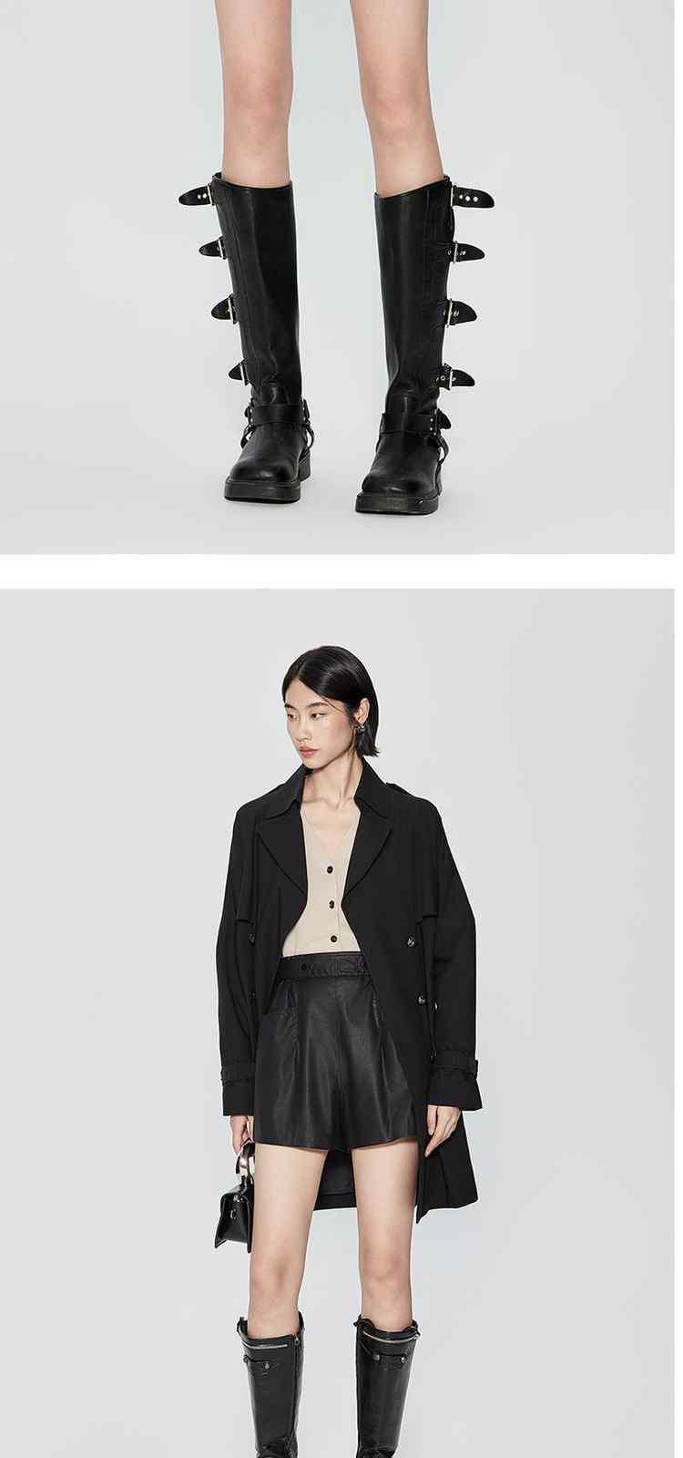 【腰头翻领设计】春季款女式排扣垂感直筒裤简约日常西装休闲裤 212043