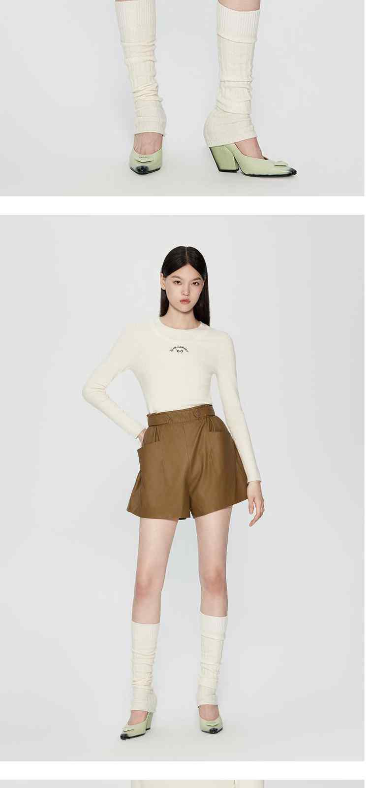 春装 松紧高腰宽松显瘦哑光PU直筒短裤女 566543