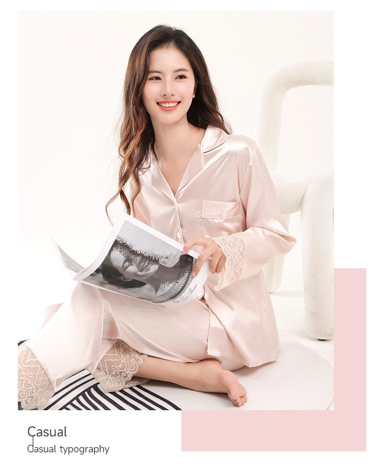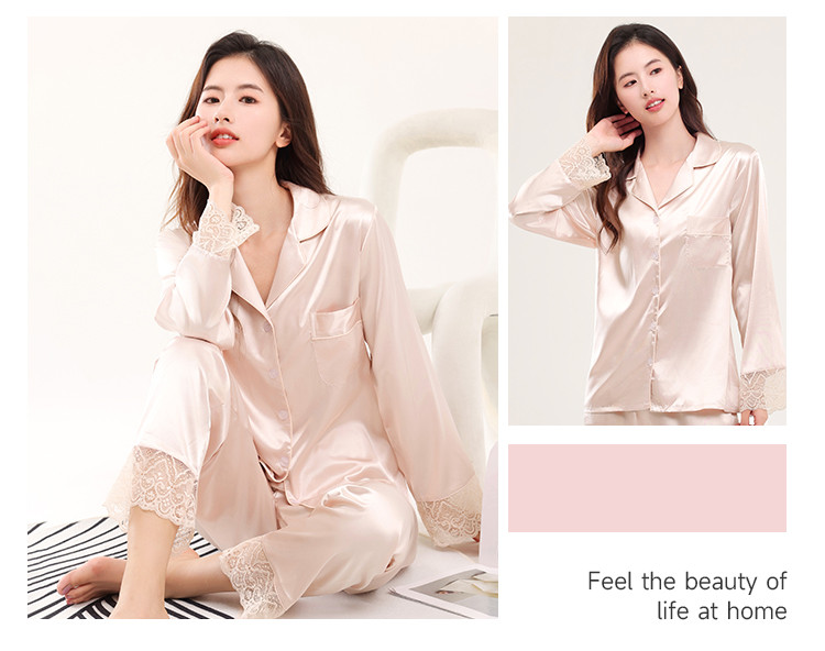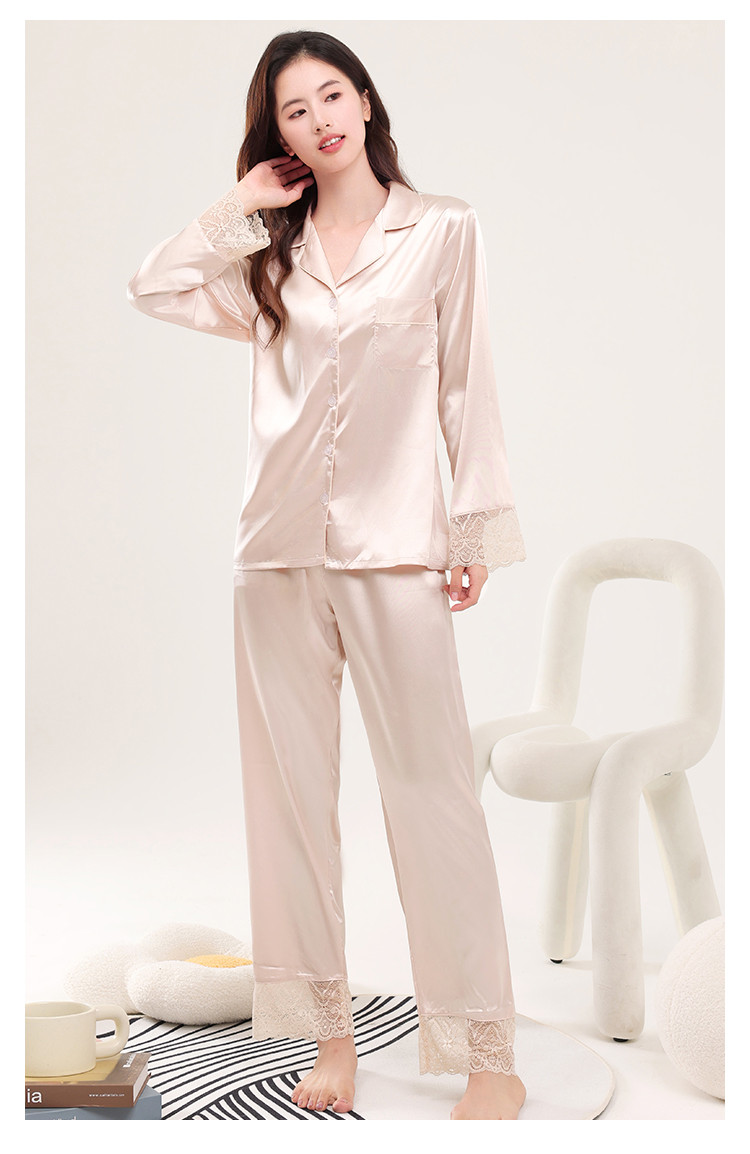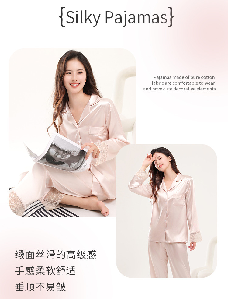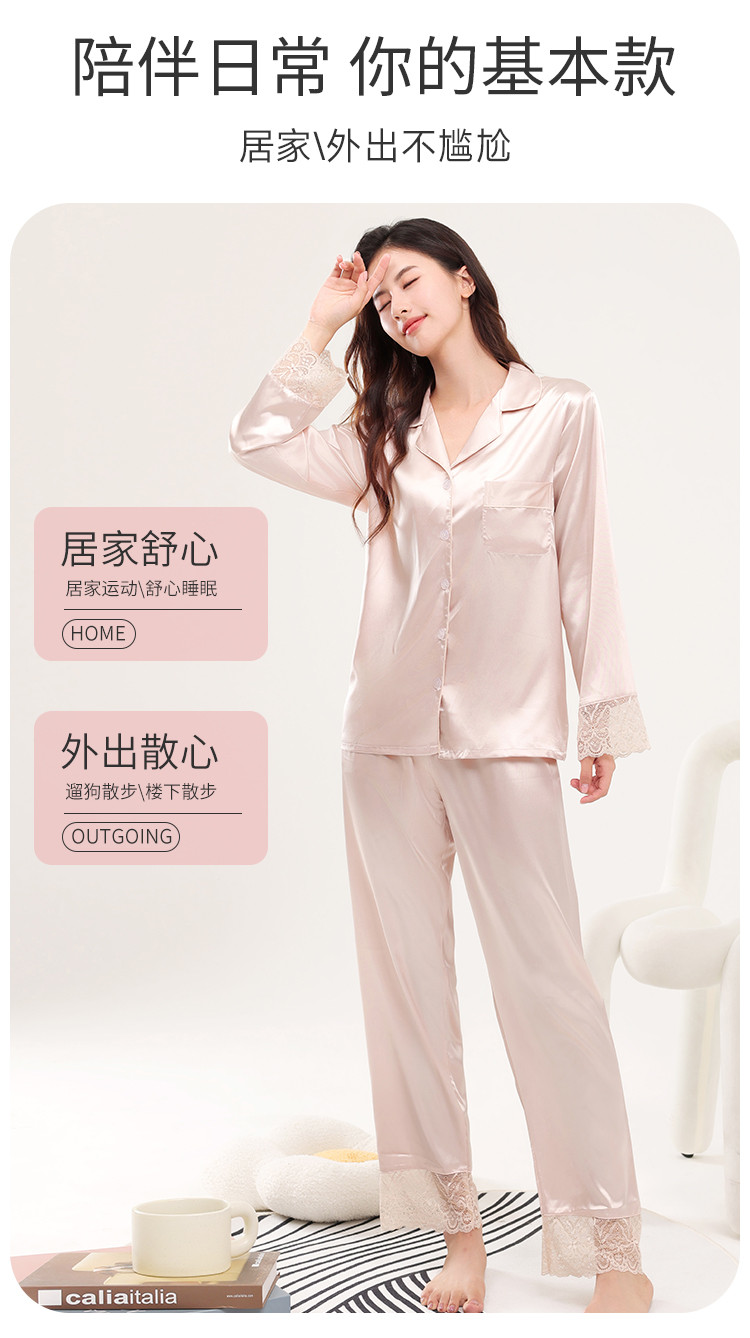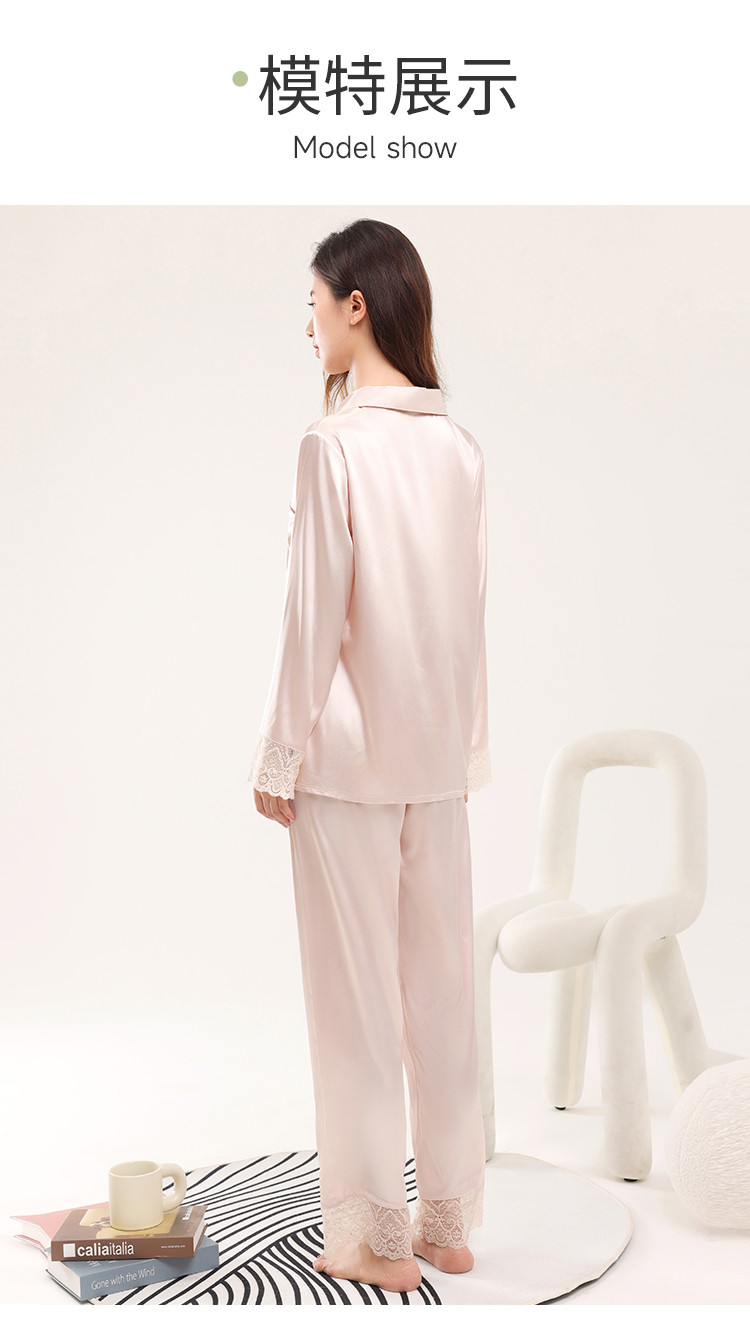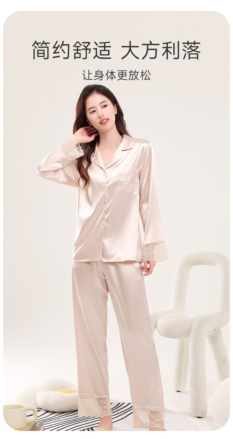 【轻盈冰雪丝】春夏女士法式蕾丝睡衣家居服冰丝高级感套装可外穿 921291