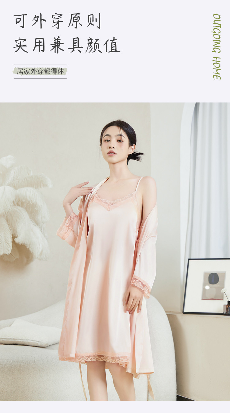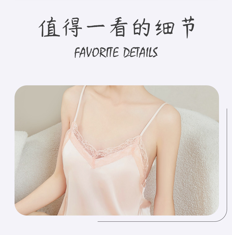 商品名称:【性感两件套】带胸垫蕾丝冰丝吊带裙连衣裙睡裙女士睡衣家居服 513483