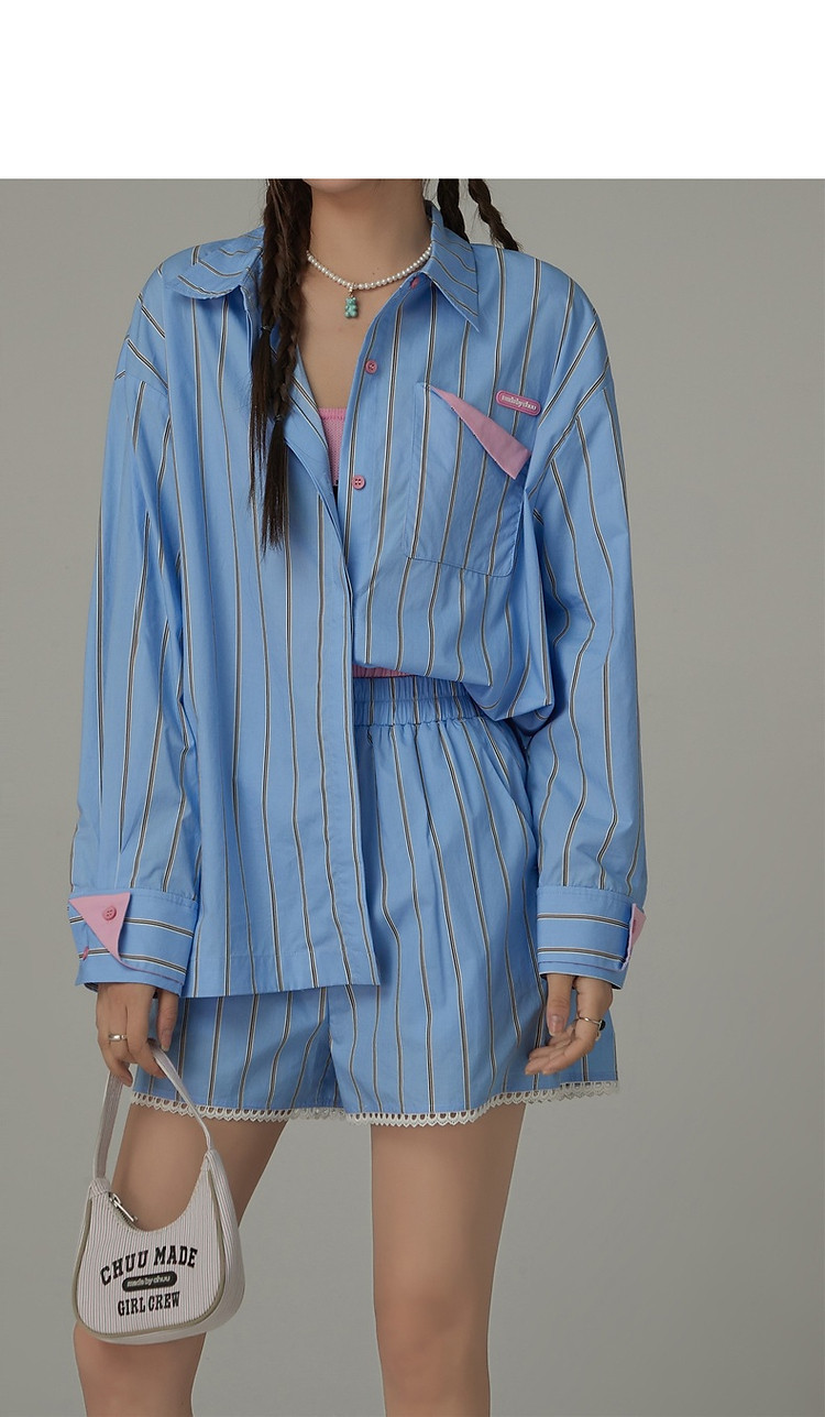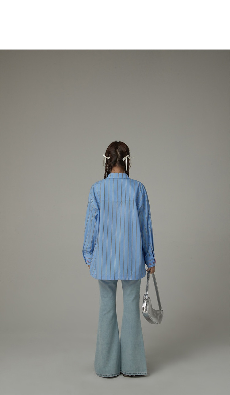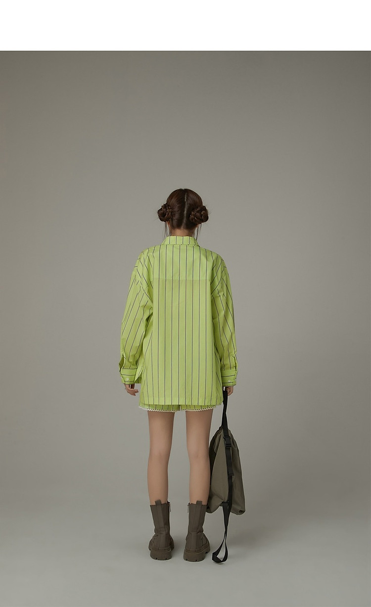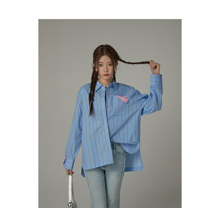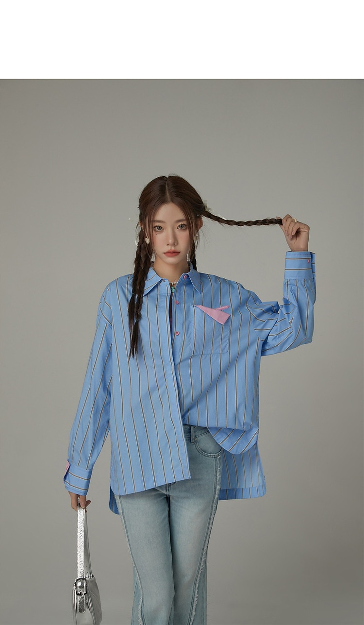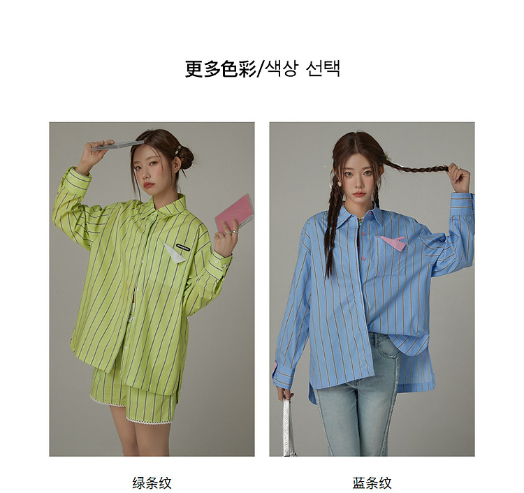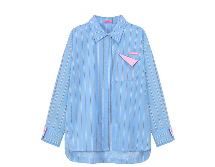 商品名称:宽松条纹衬衫女夏洋气休闲百搭别致长袖上衣 924691