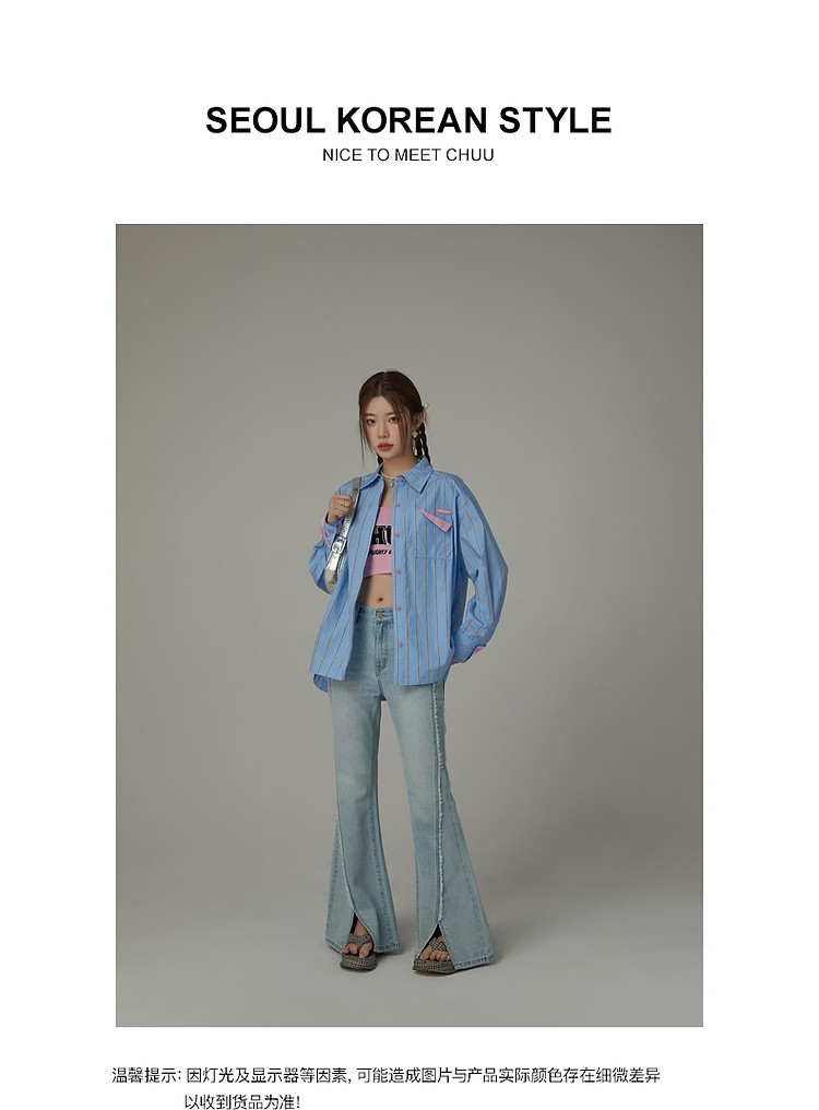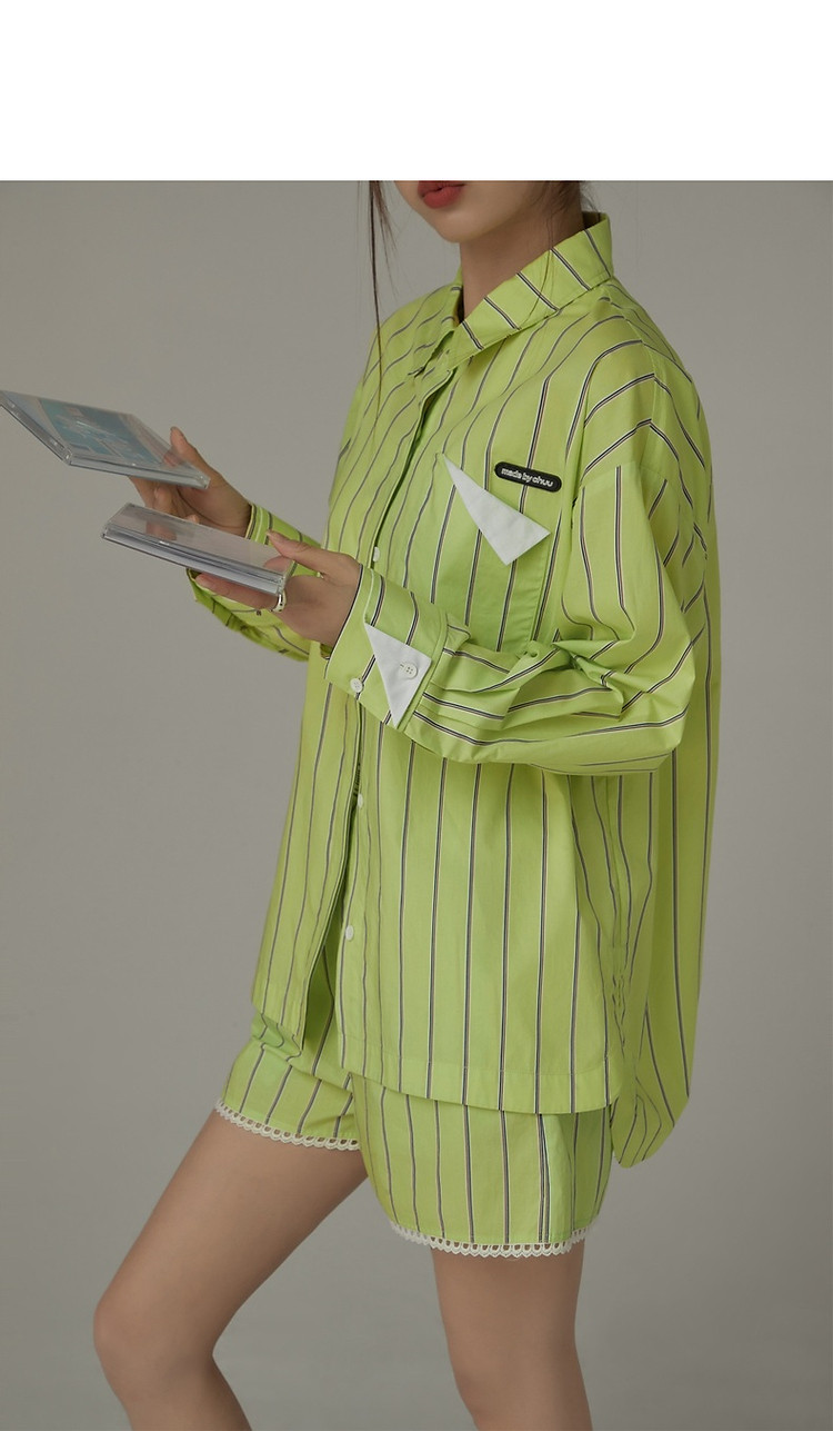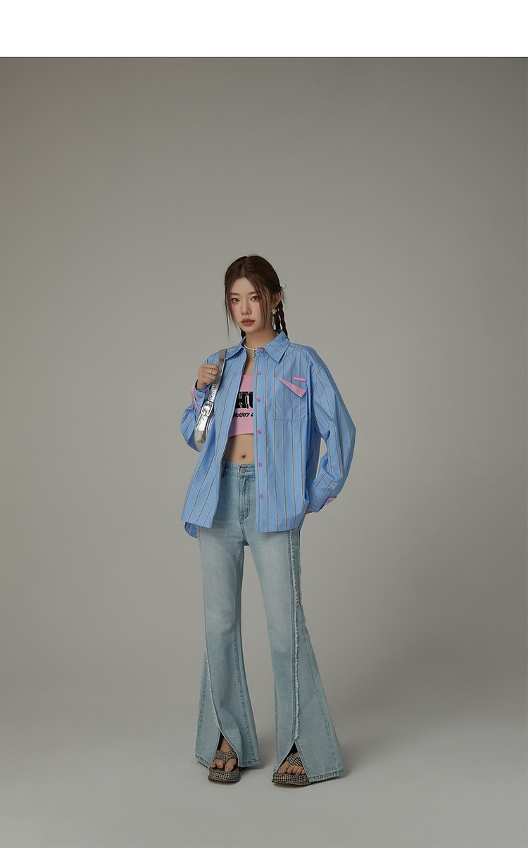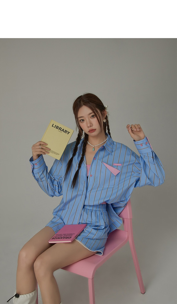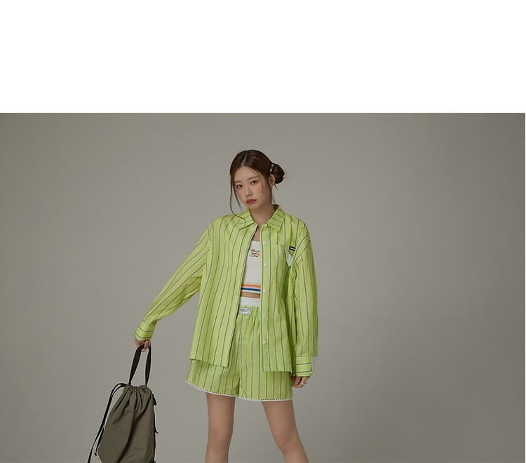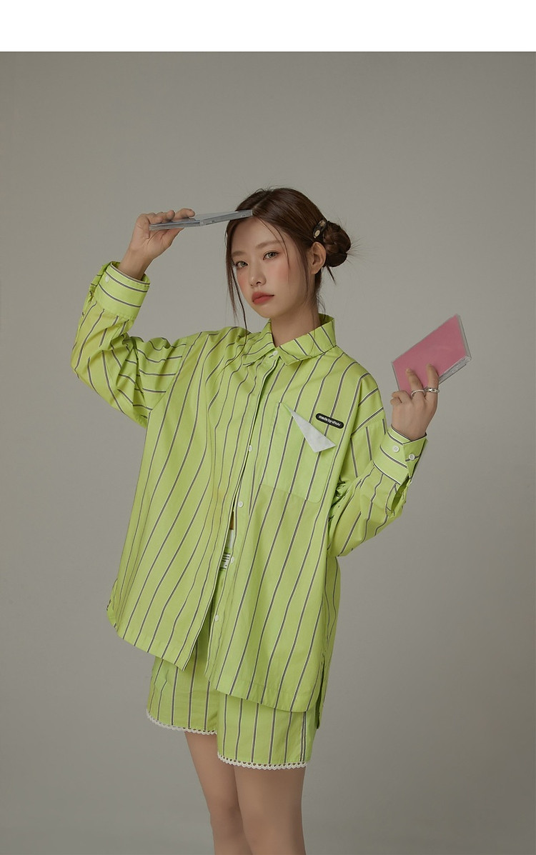 商品名称:宽松条纹衬衫女夏洋气休闲百搭别致长袖上衣 924691