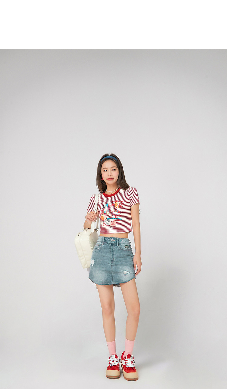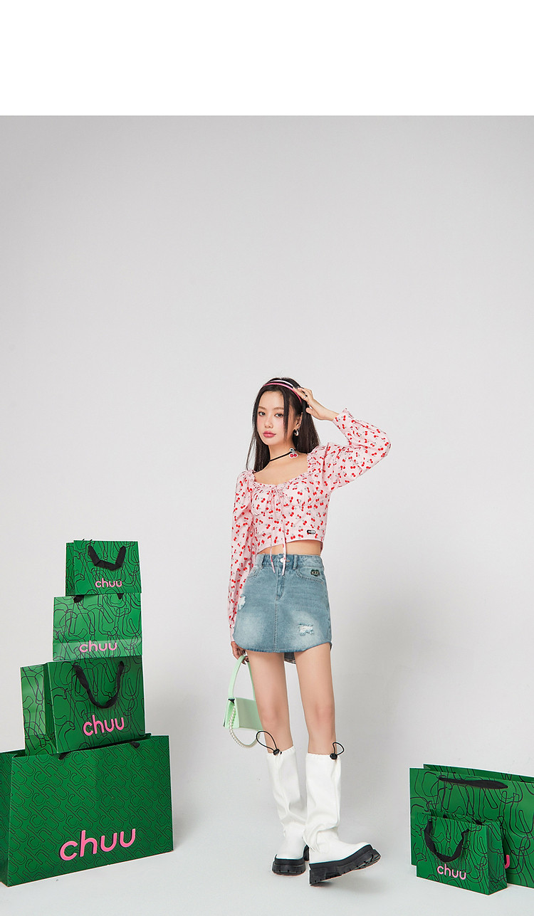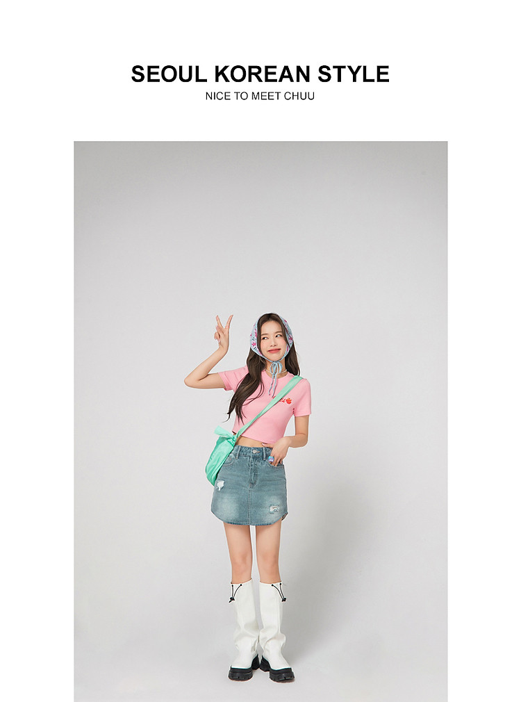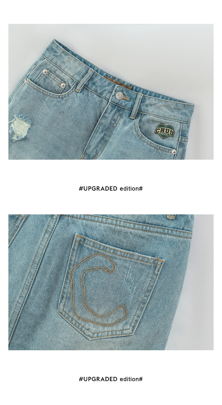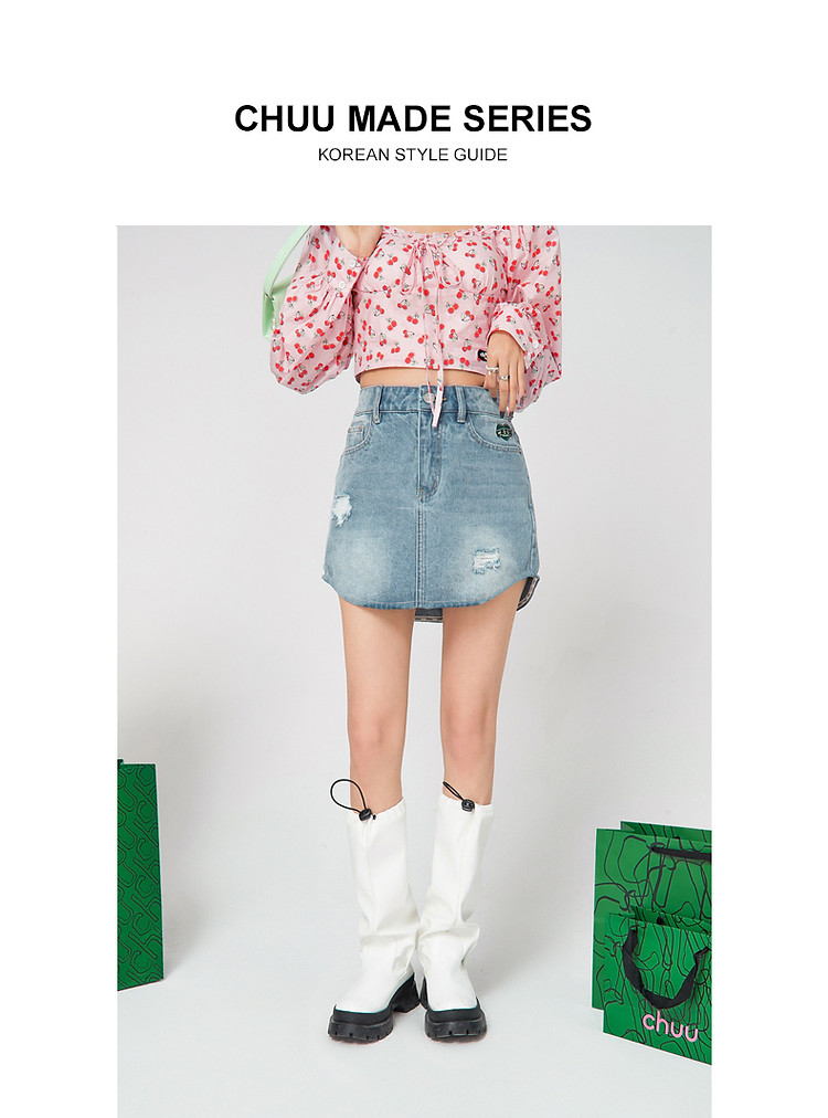 CHUU高腰破洞时尚辣妹半身裙女夏季百搭短裙子 612883