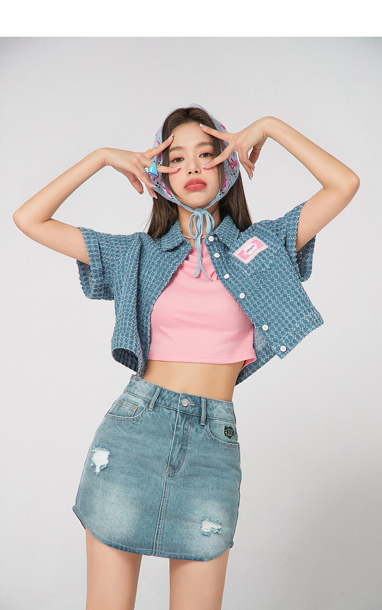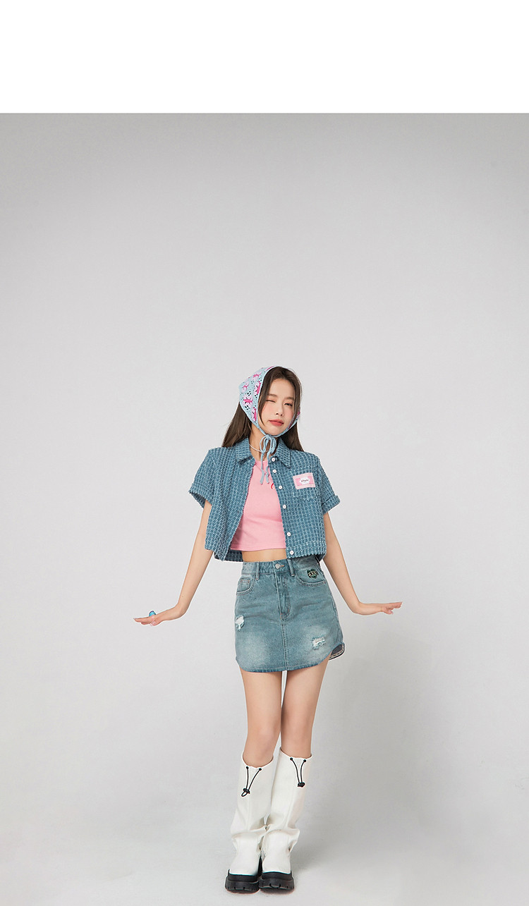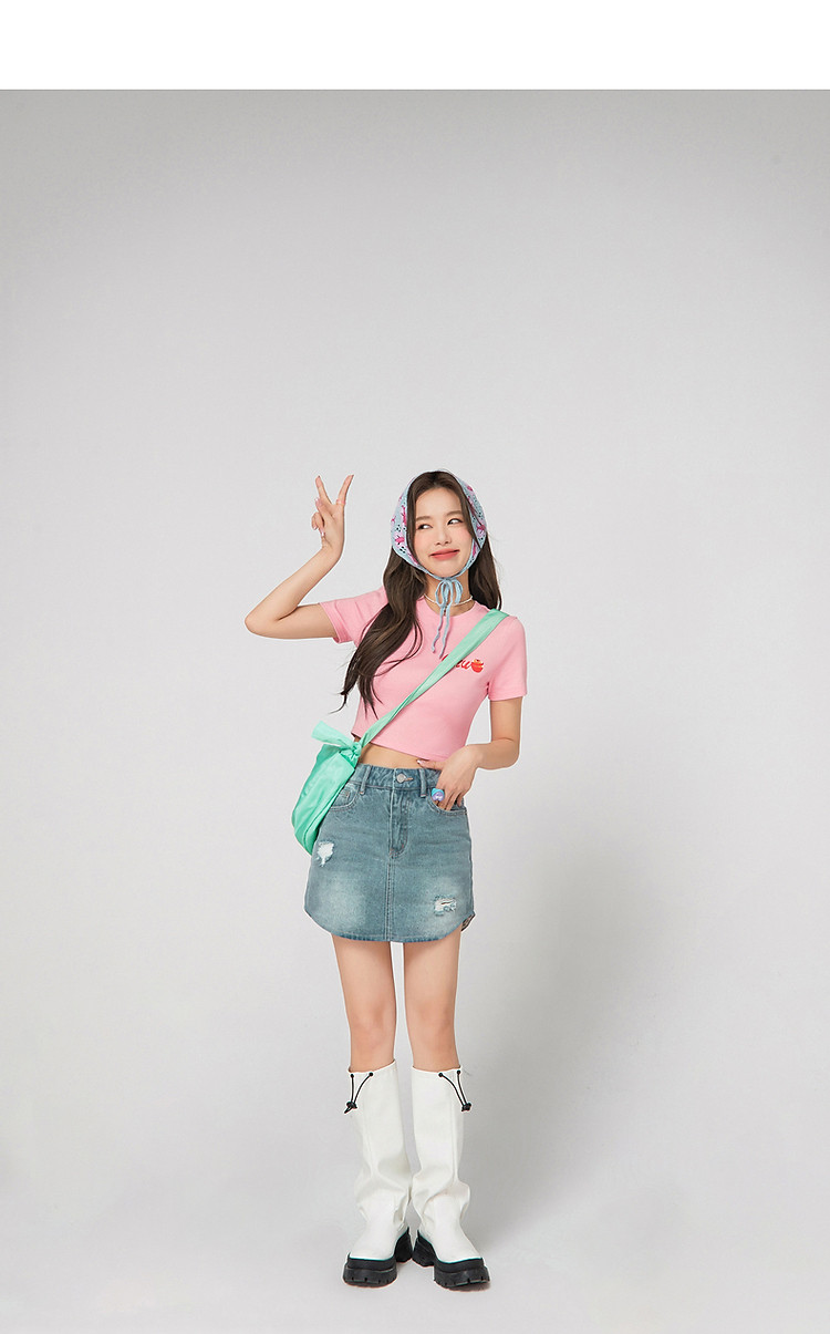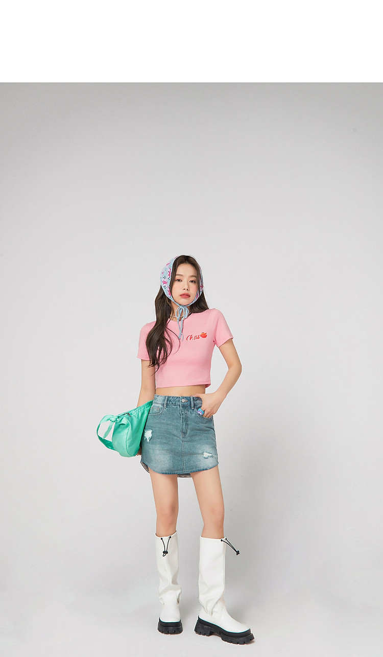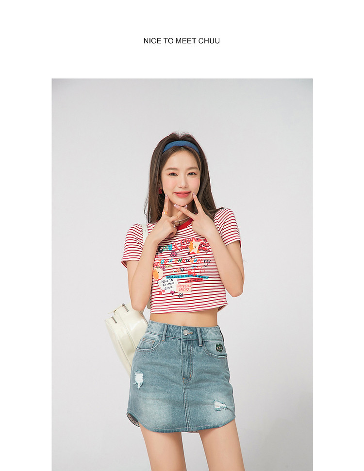 CHUU高腰破洞时尚辣妹半身裙女夏季百搭短裙子 612883