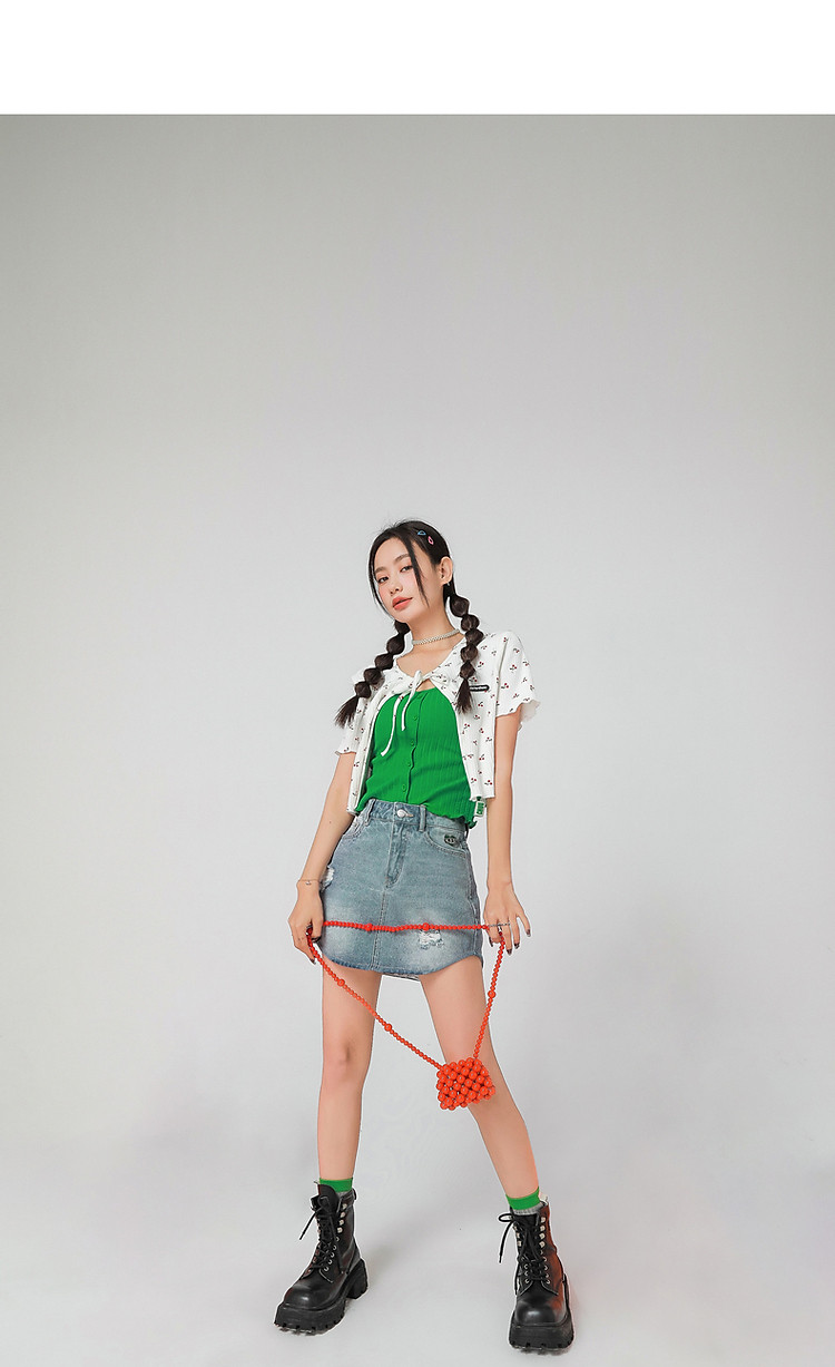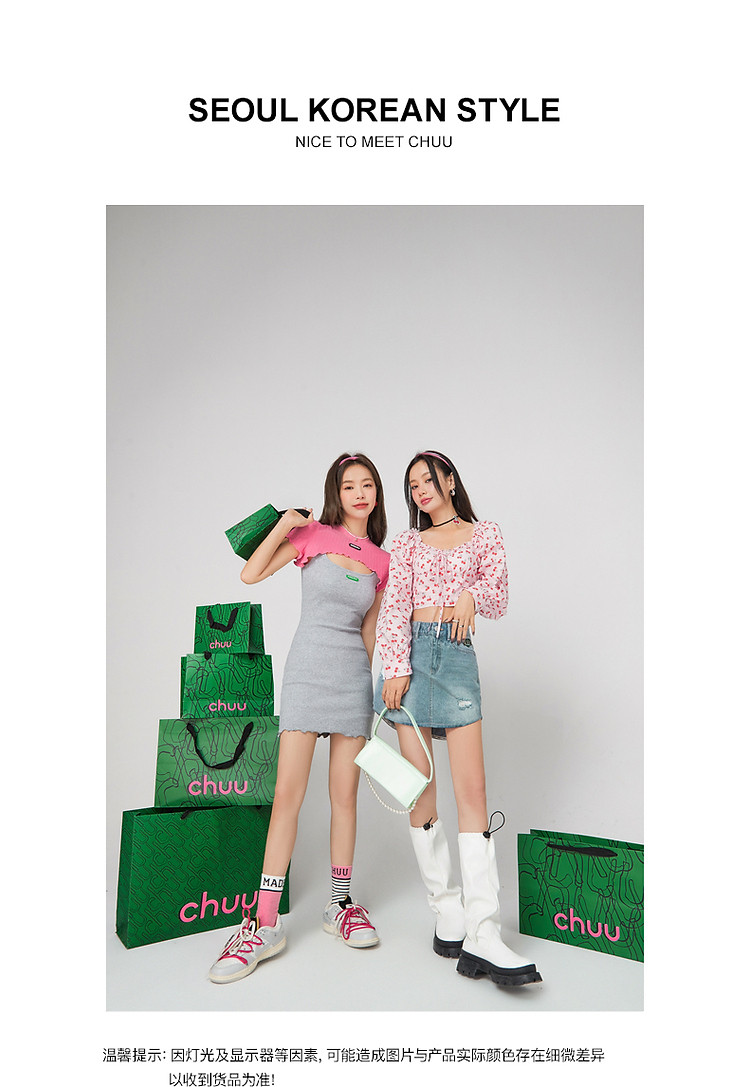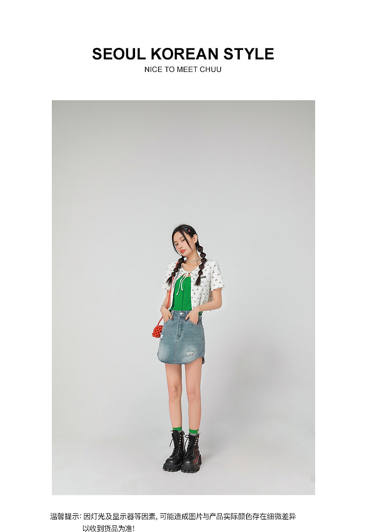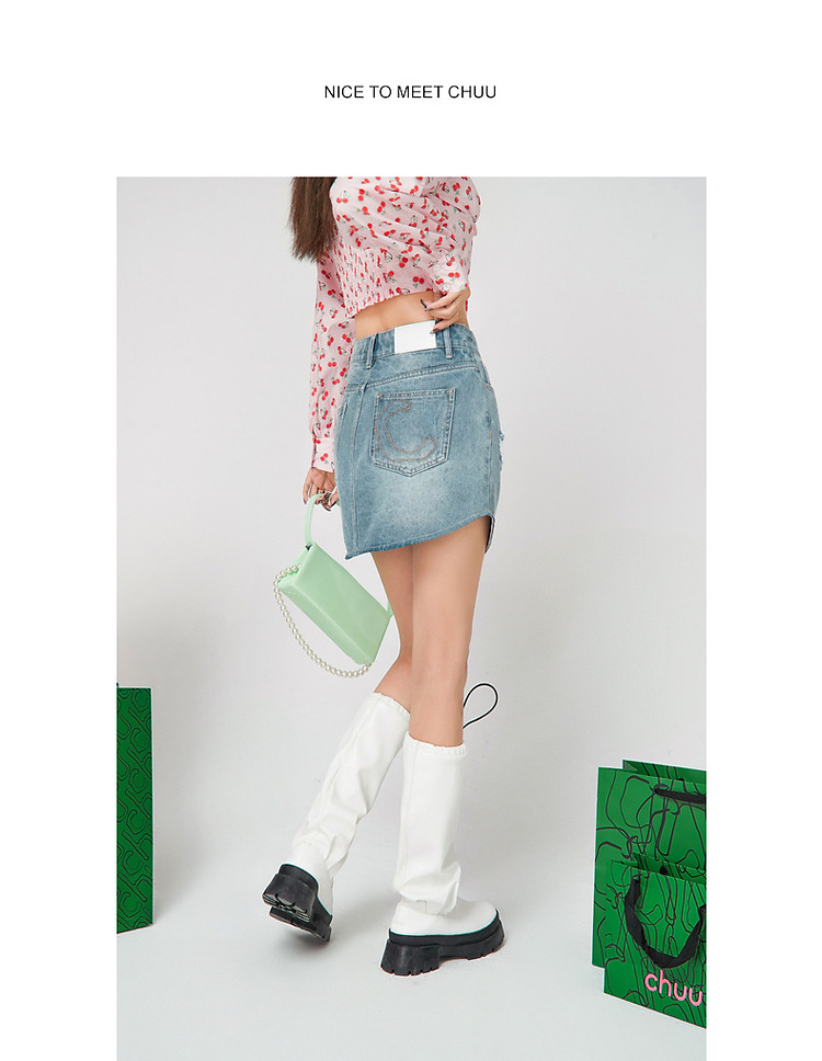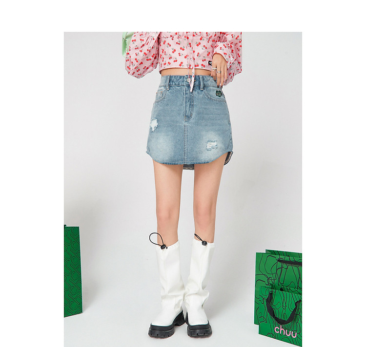 商品名称:CHUU高腰破洞时尚辣妹半身裙女夏季百搭短裙子 612883