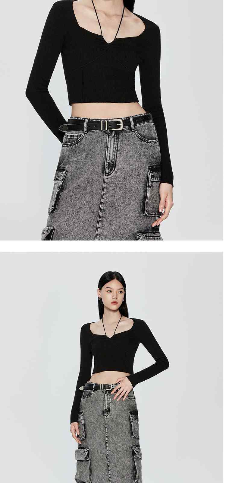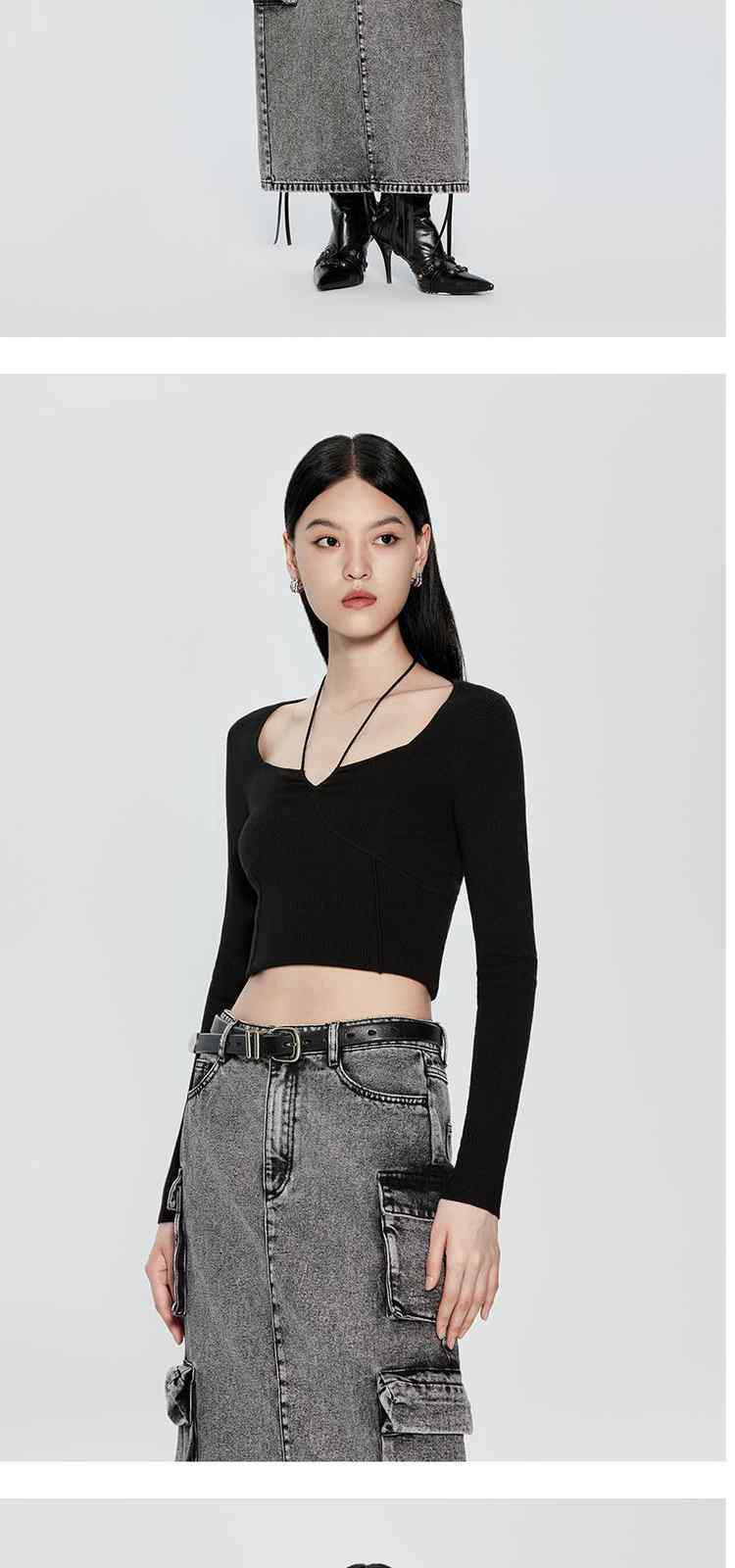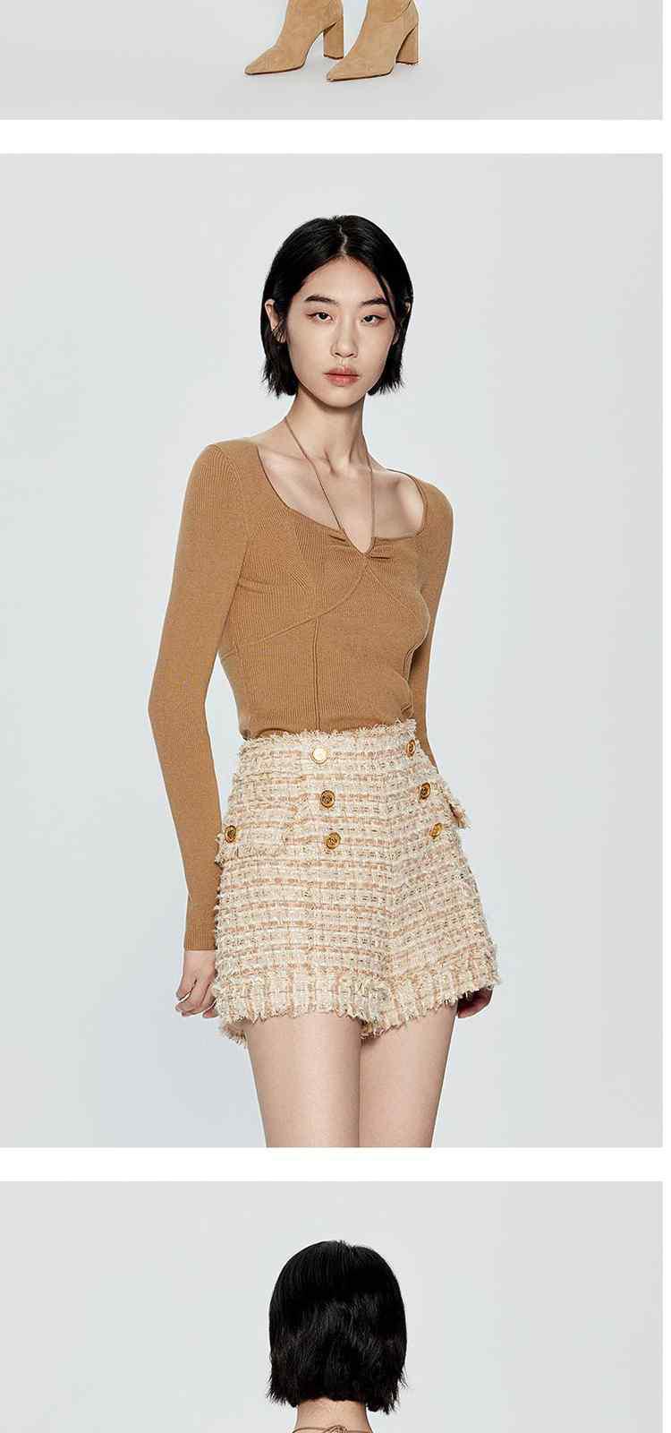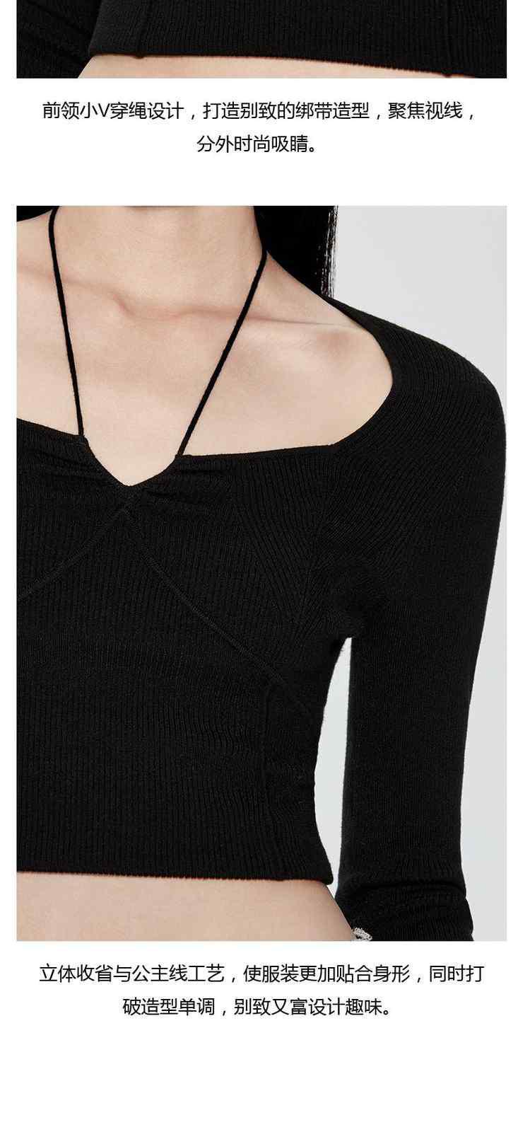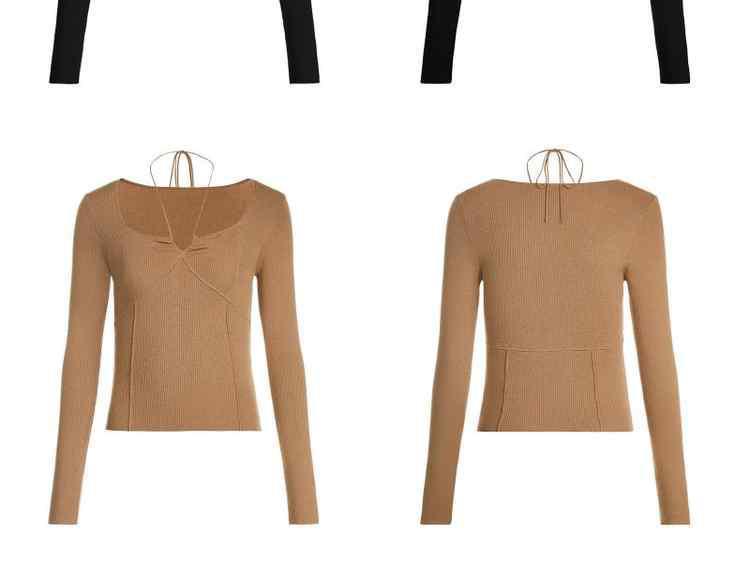商品名称:春装 绑带方领法式珍珠纤维毛衣女 780303