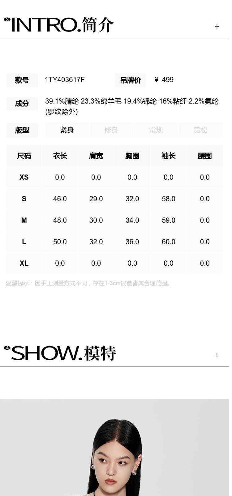 袖长(cm)
