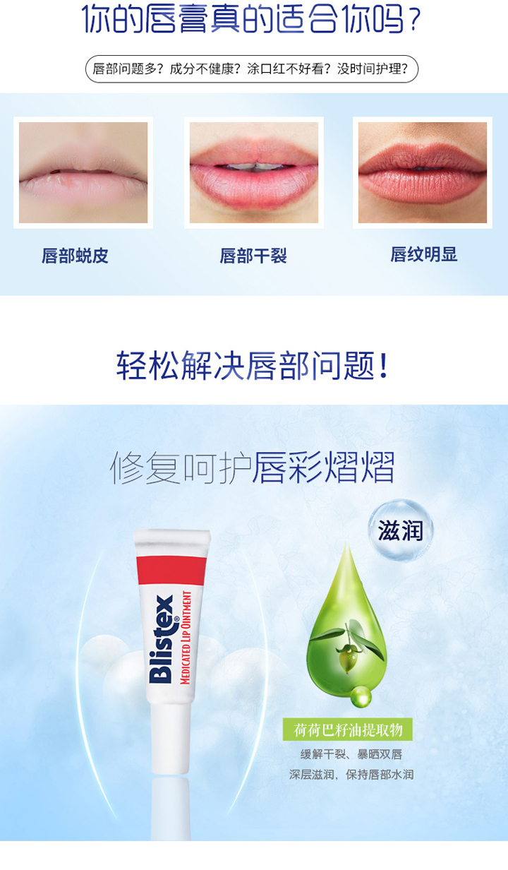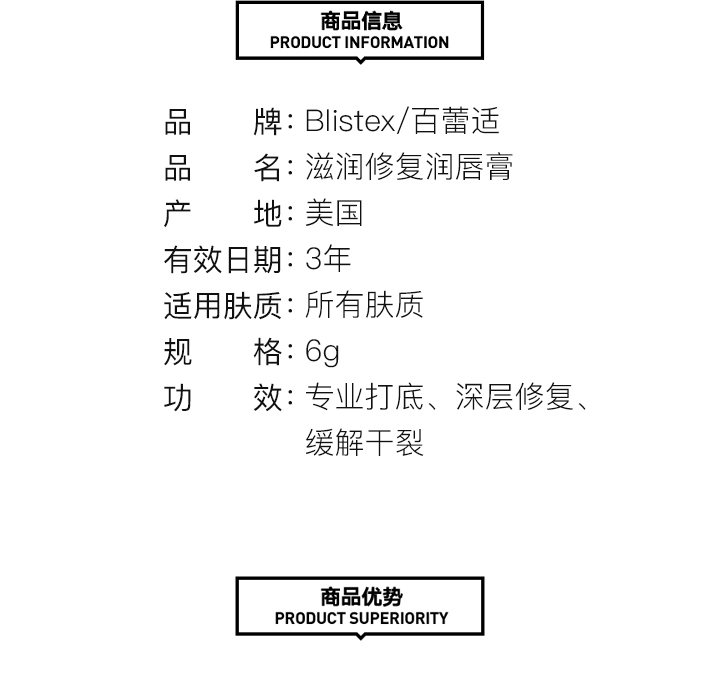商品名称:BLISTEX/碧唇 小白管软管润唇膏修护滋润保湿淡化唇纹唇部打底 6g