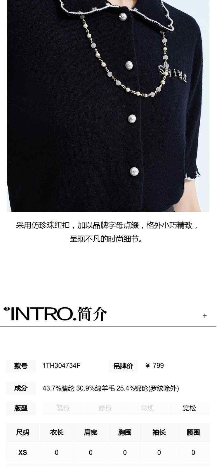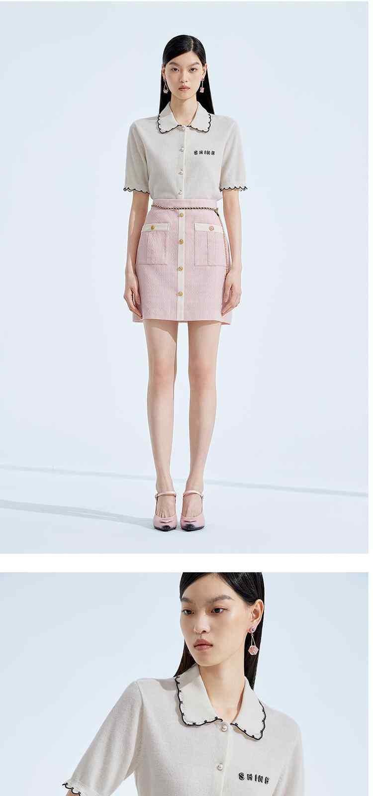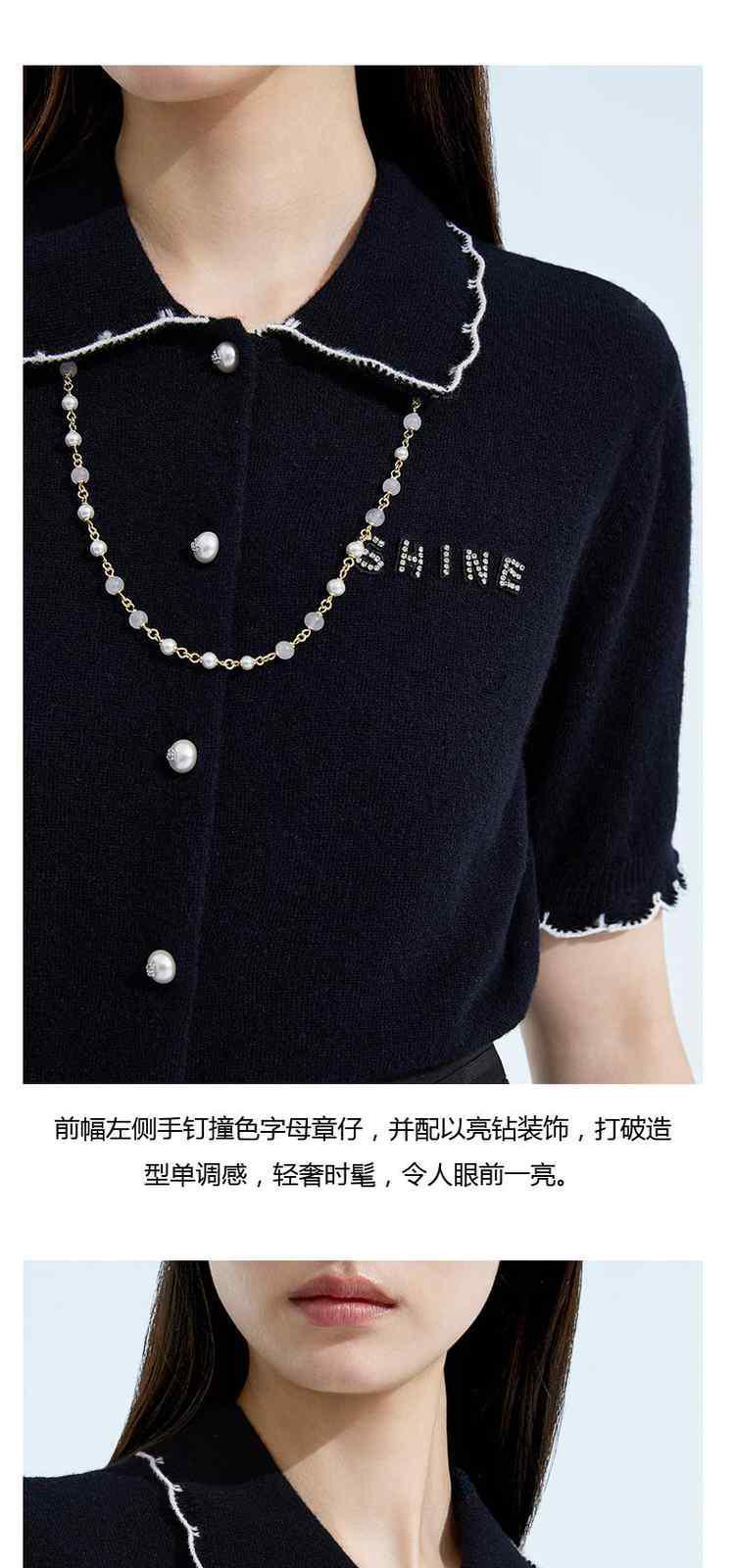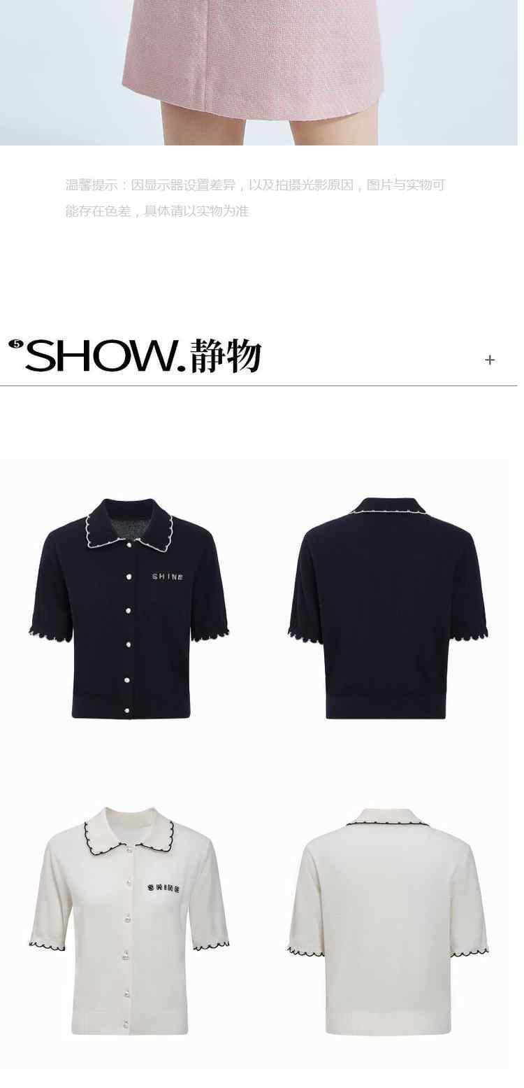 商品名称:春装 撞边娃娃领小香风短袖针织外套女 667535
