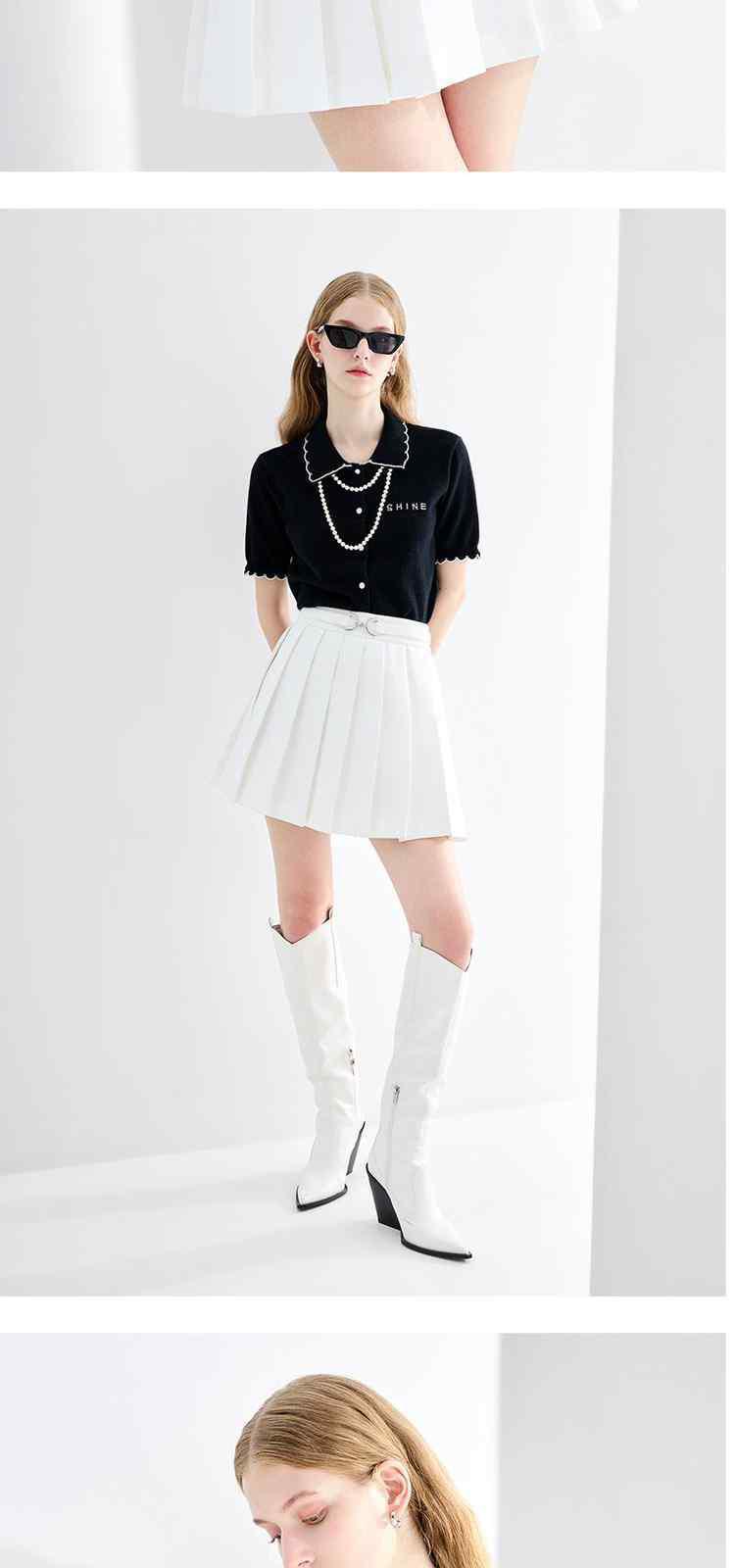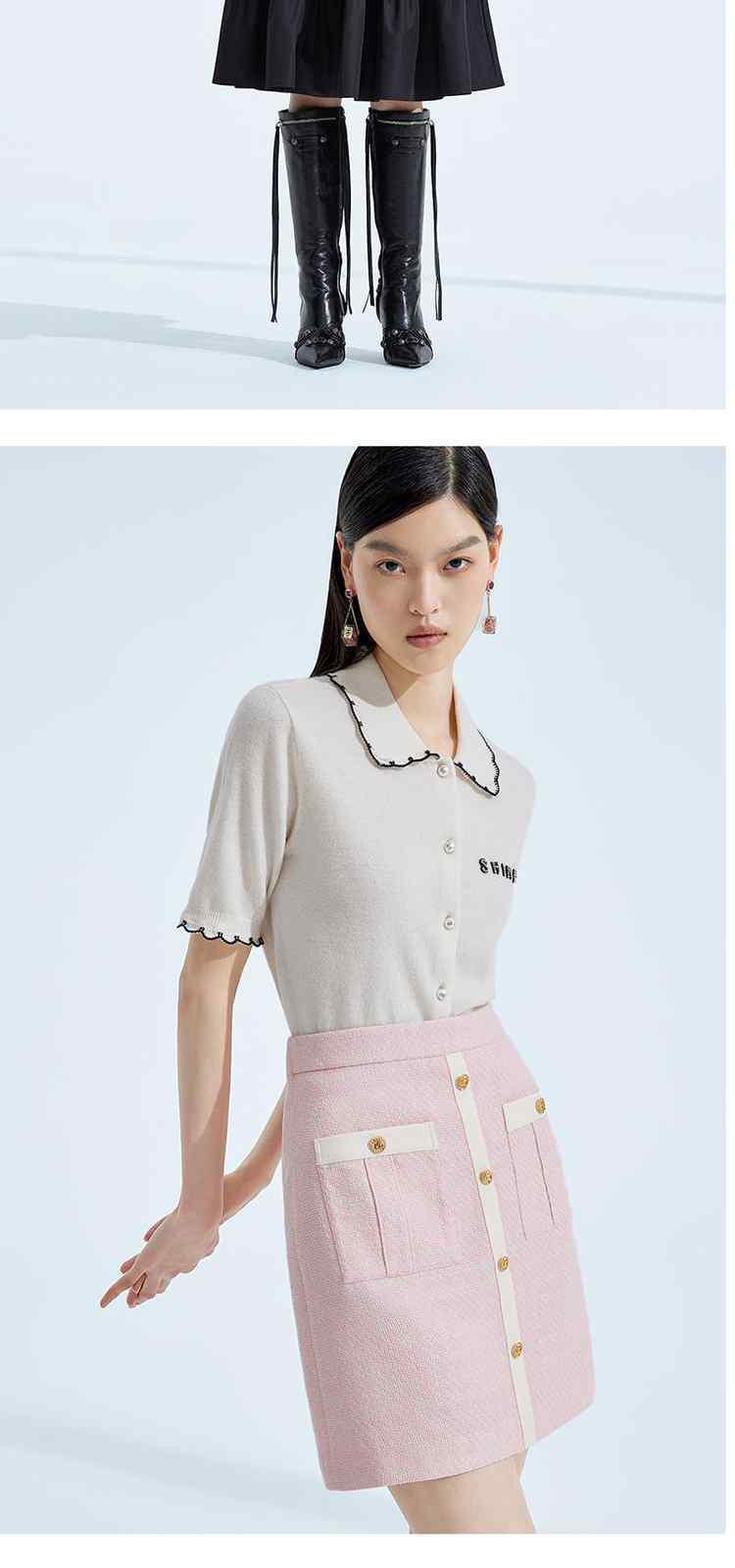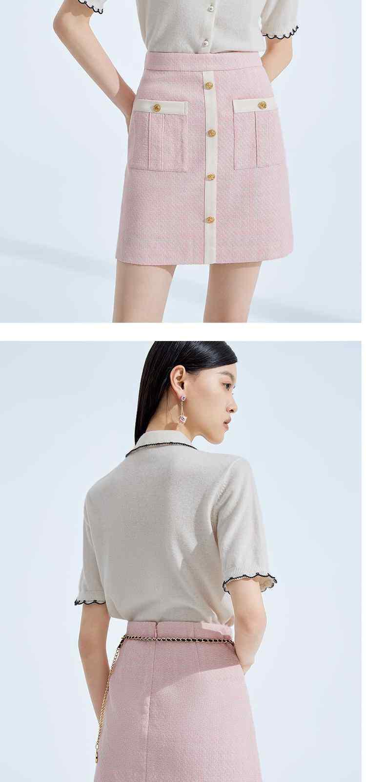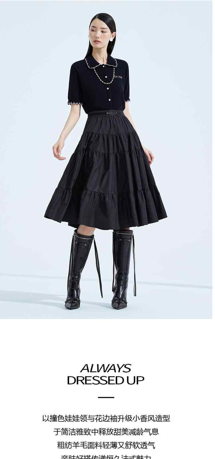 商品名称:春装 撞边娃娃领小香风短袖针织外套女 667535