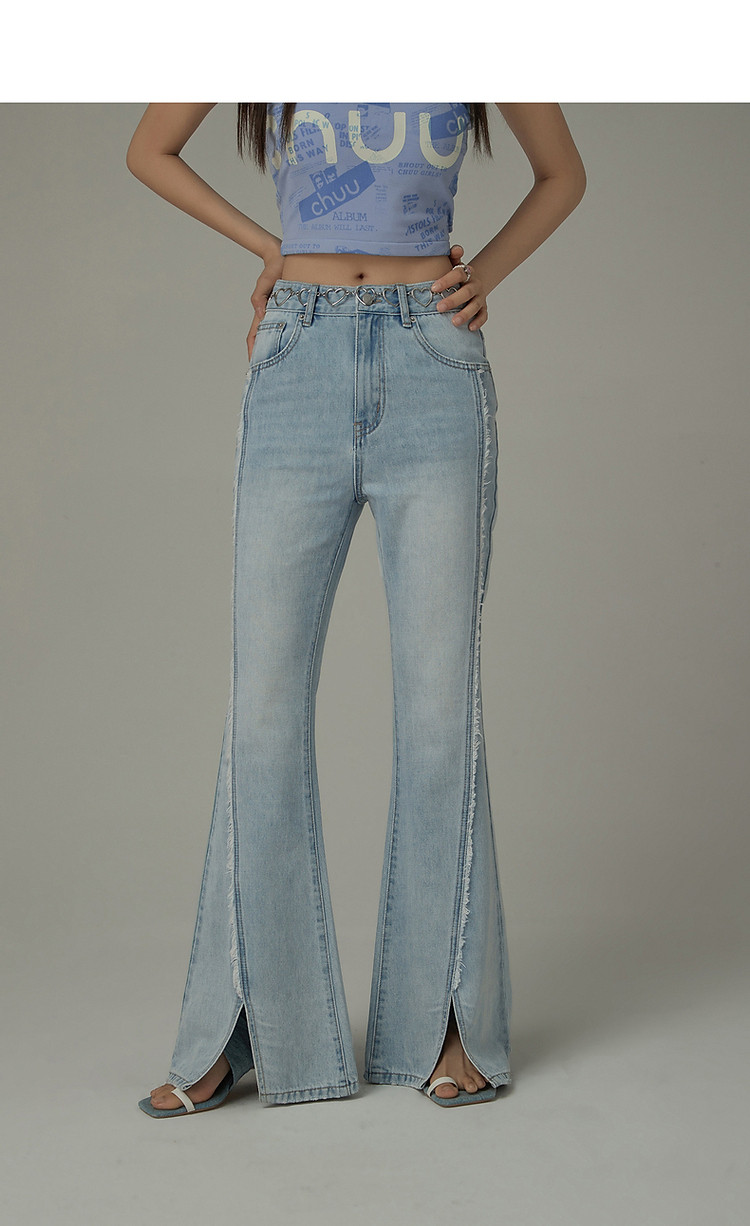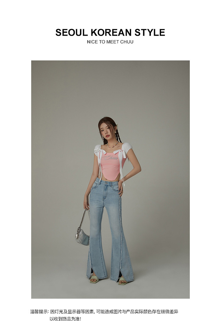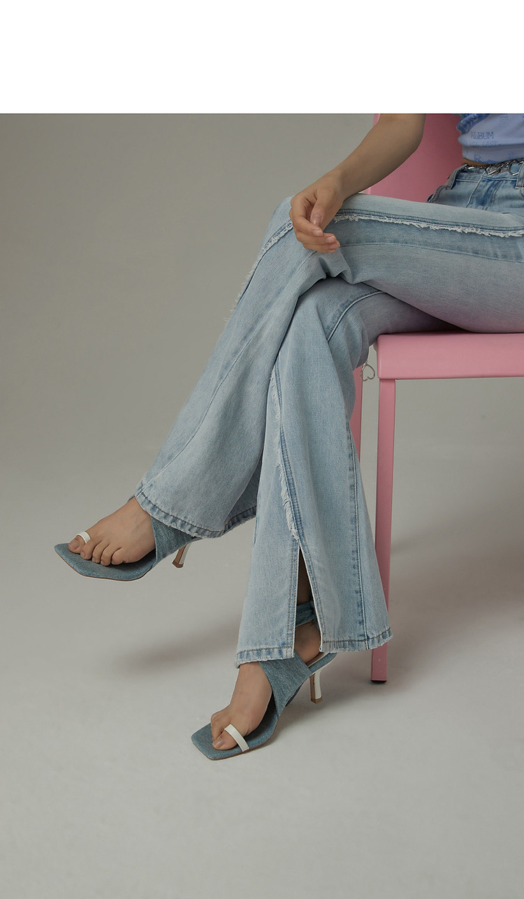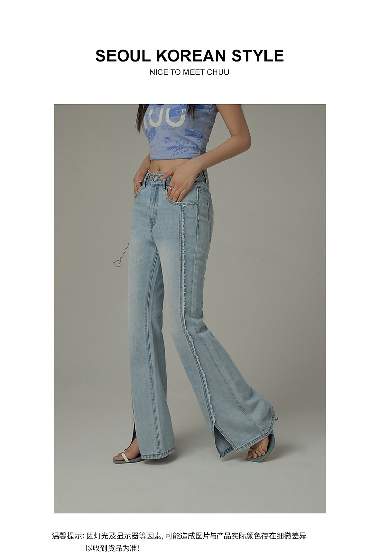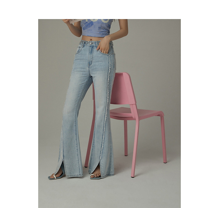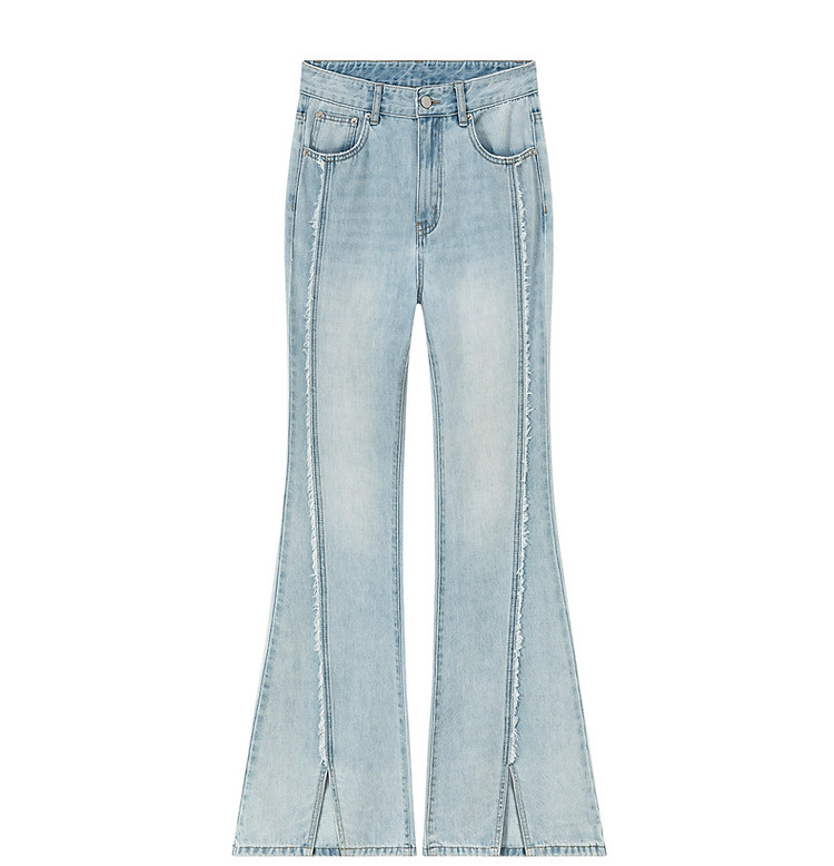 商品名称:毛边微喇牛仔裤女夏设计感磨白开叉个性长裤 728467