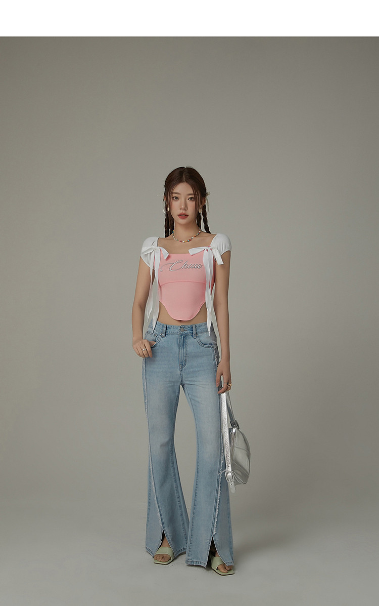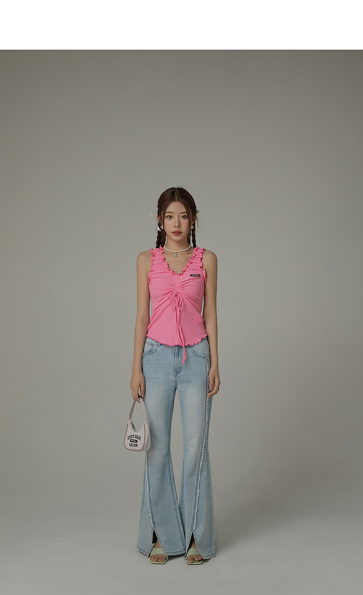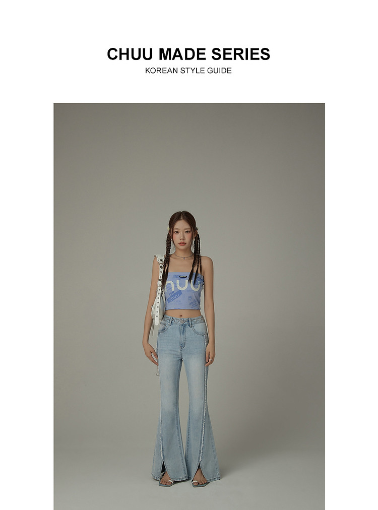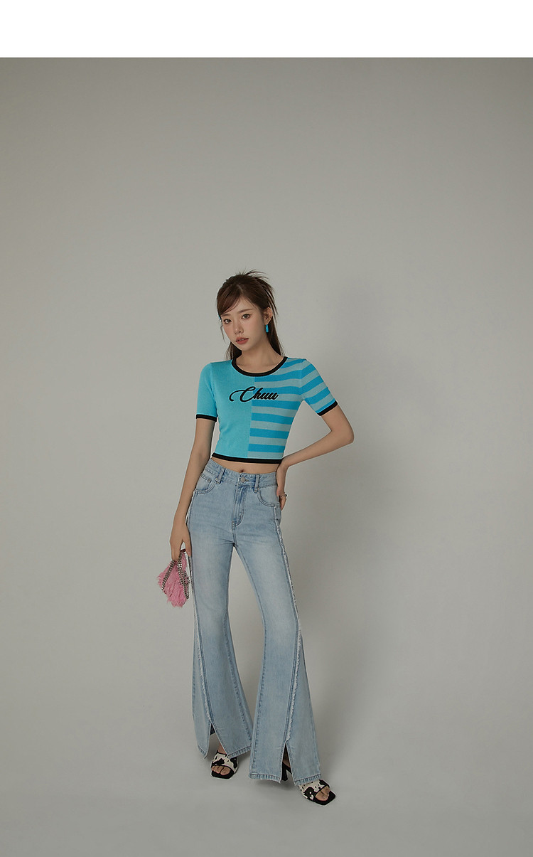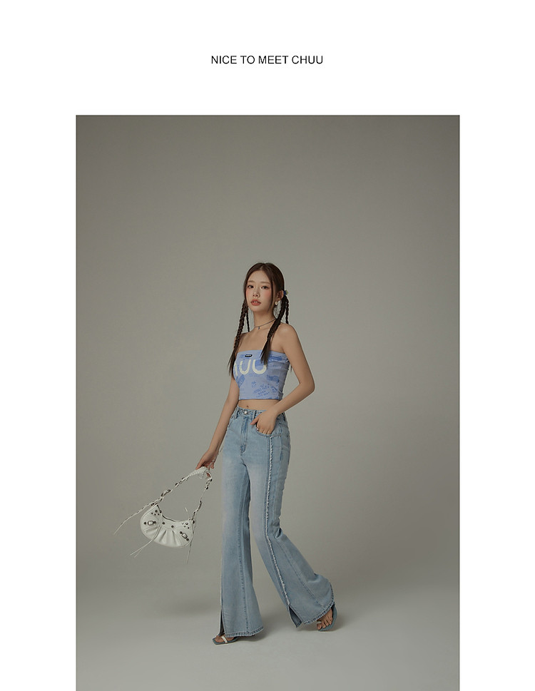 商品名称:毛边微喇牛仔裤女夏设计感磨白开叉个性长裤 728467