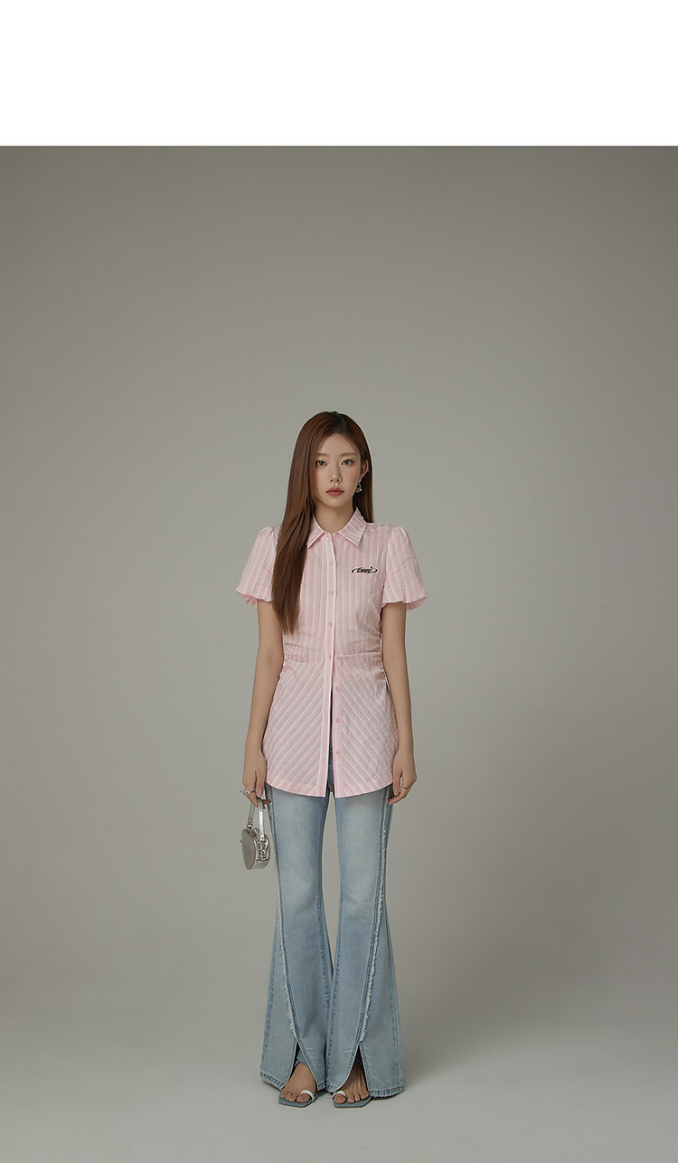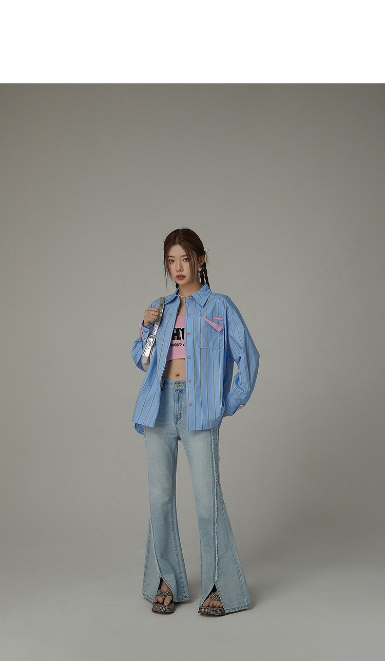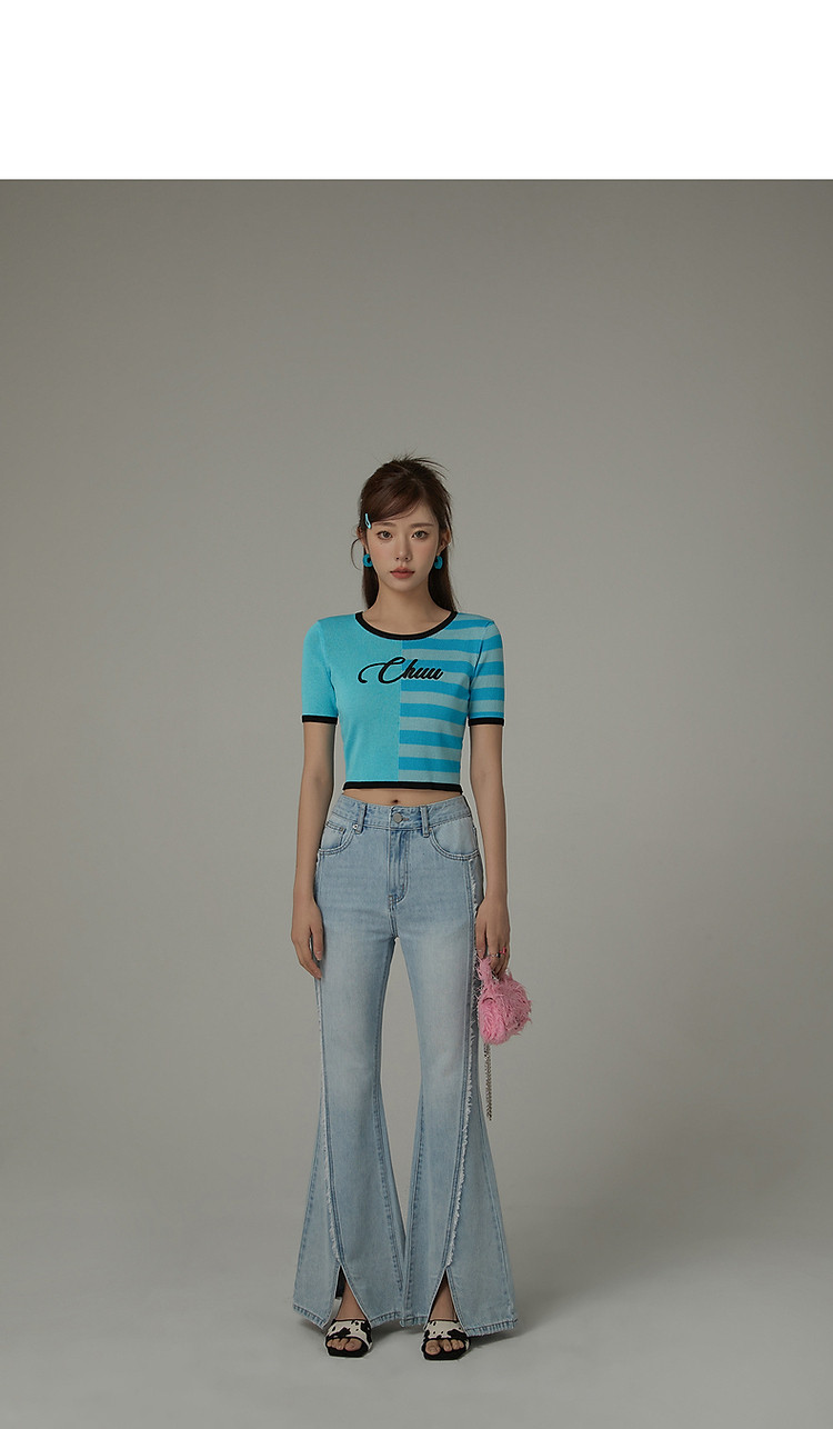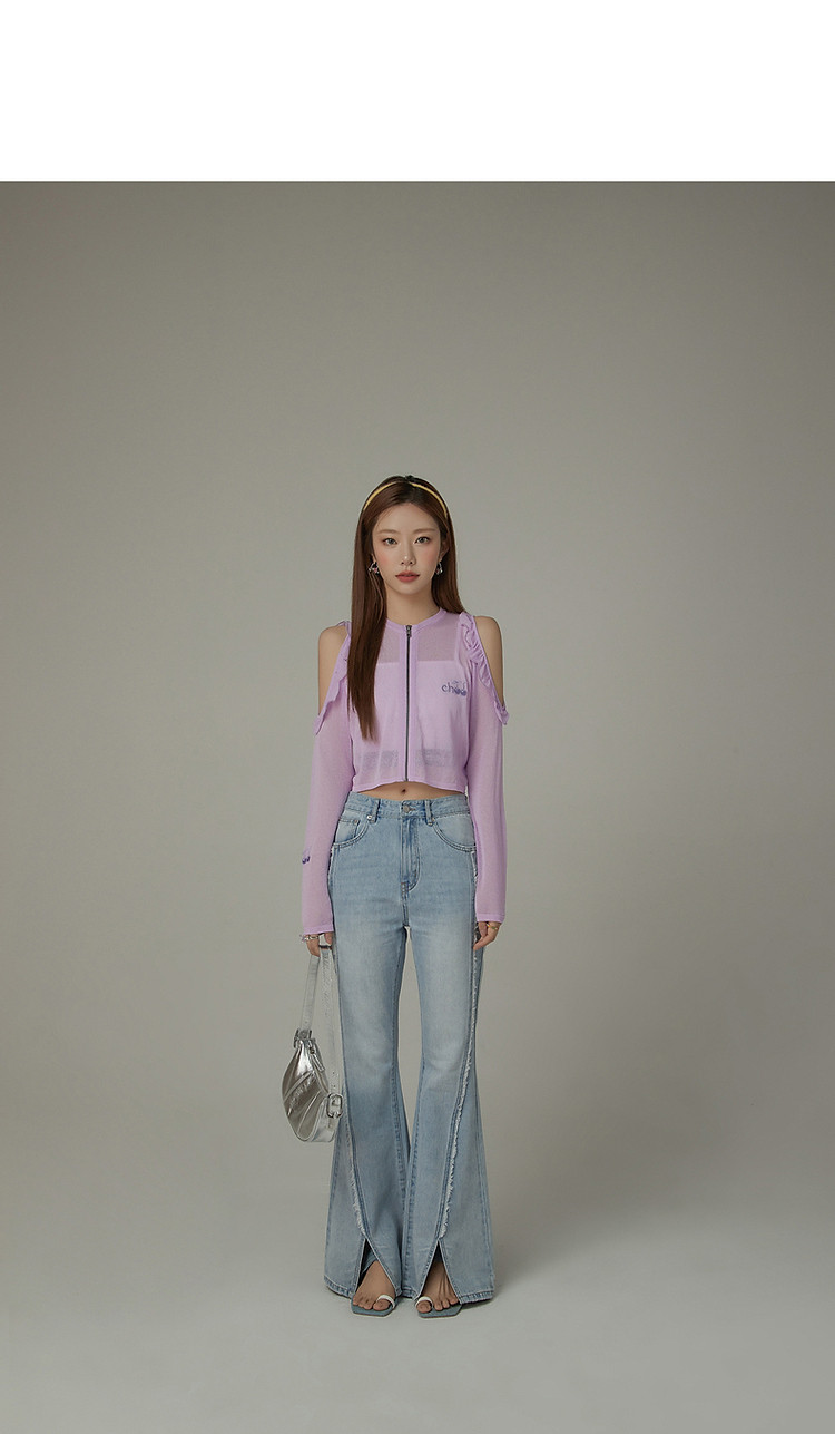 商品名称:毛边微喇牛仔裤女夏设计感磨白开叉个性长裤 728467
