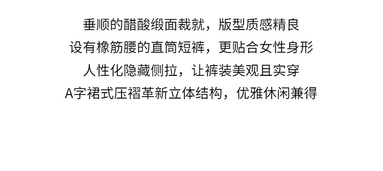 商品名称:春装 醋酸缎面直筒短裤女压褶a字显瘦休闲 892239
