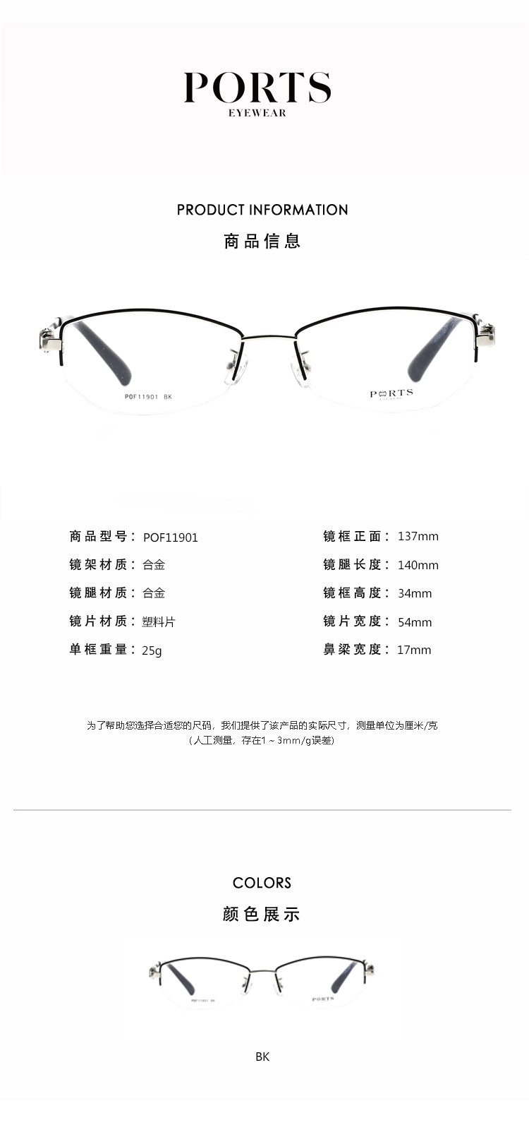 商品名称:PORTS日常女款知性优雅金属眼镜架POF11901 842058
