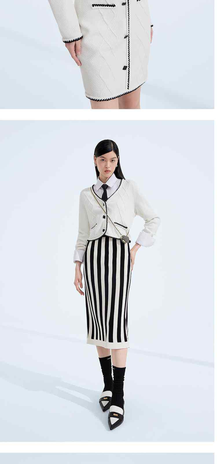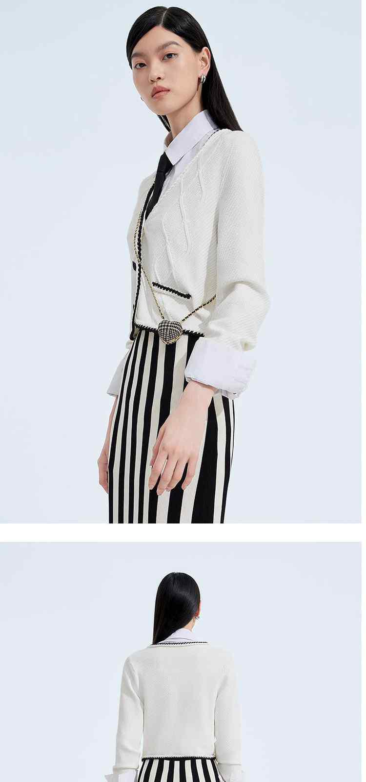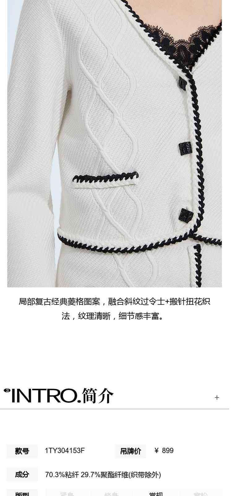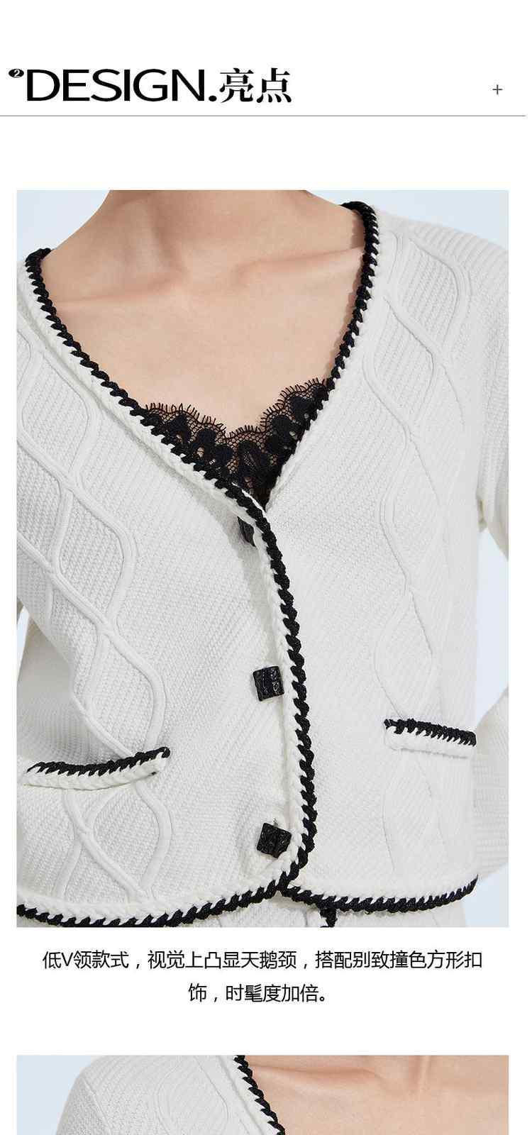 商品名称:春装 撞色几何纹开衫肌理感小香风针织外套 625807