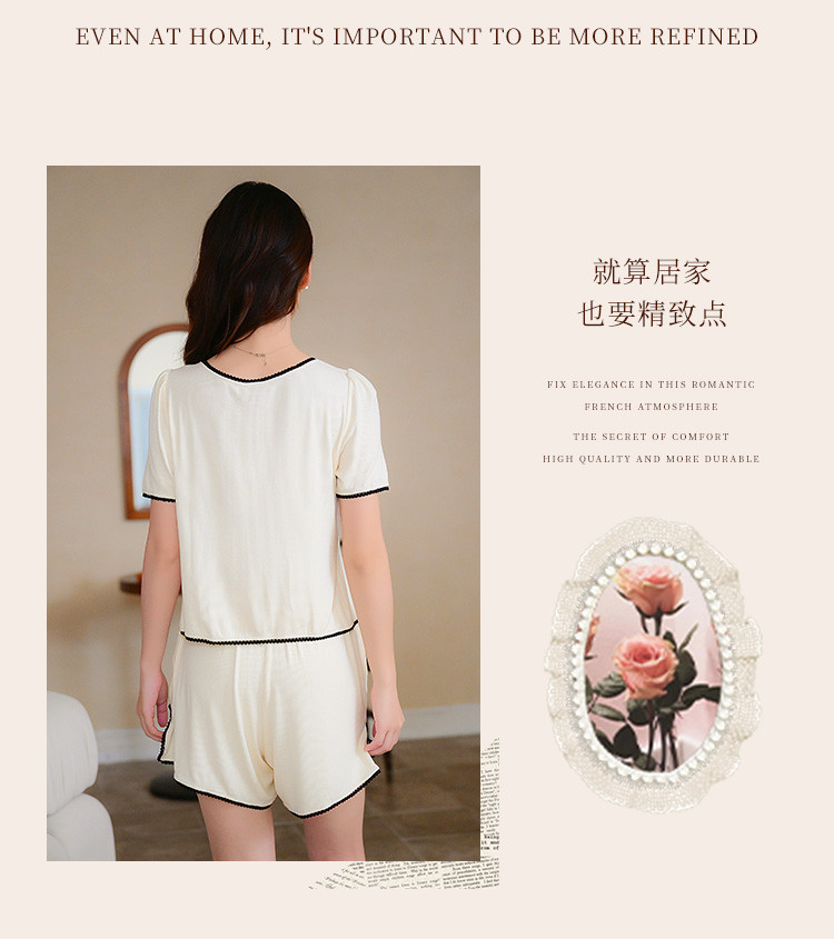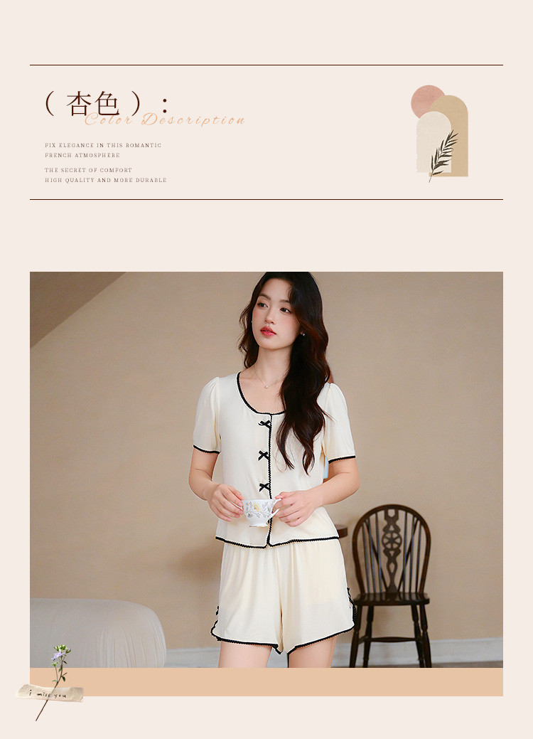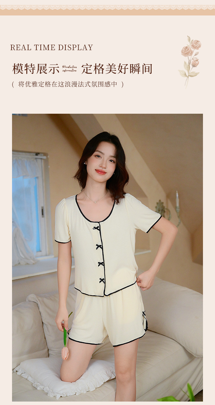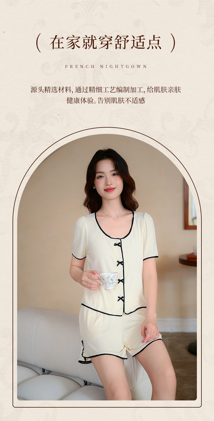 商品名称:【优雅小香风】可外穿女士家居服套装夏款舒适亲肤短袖短裤睡衣 154763
