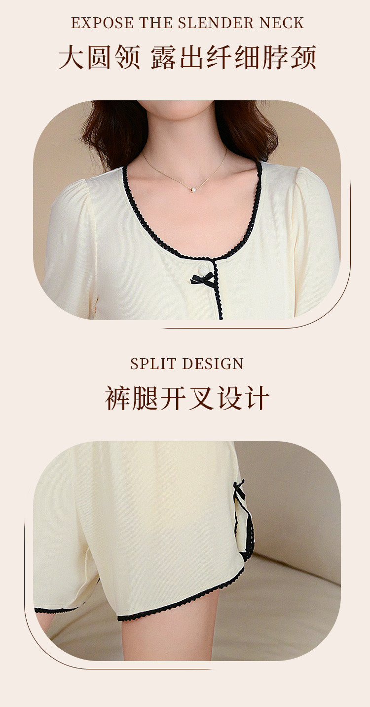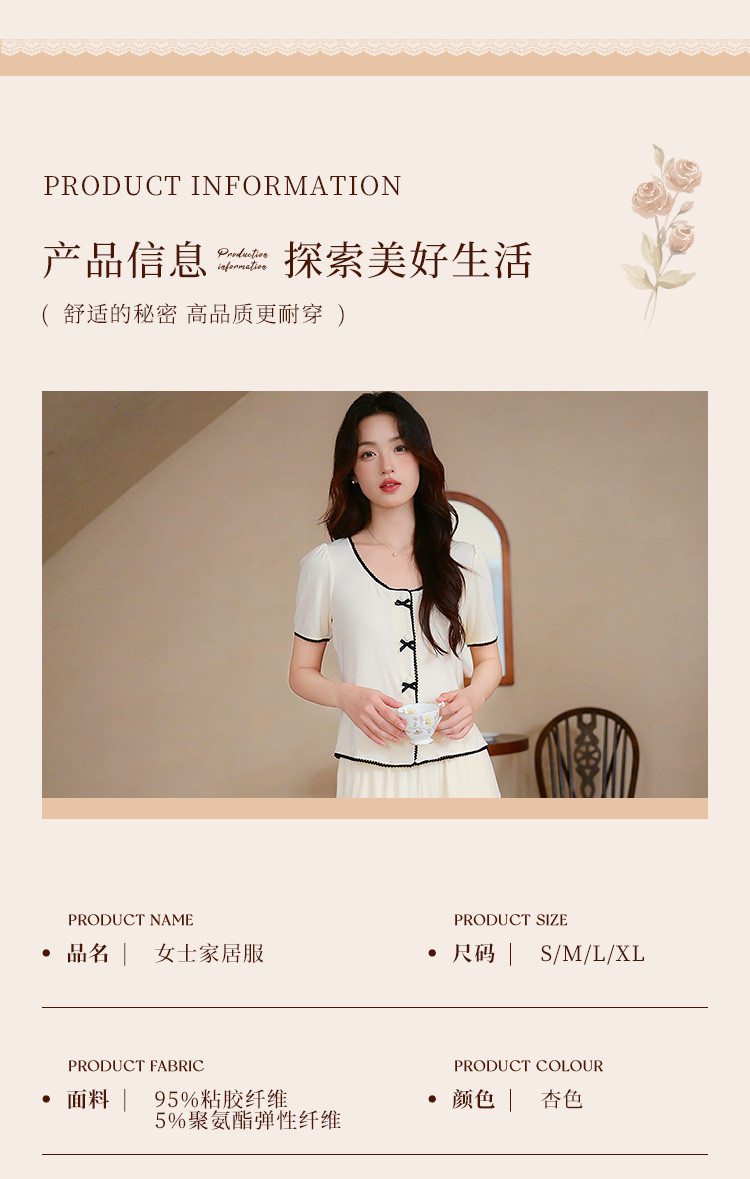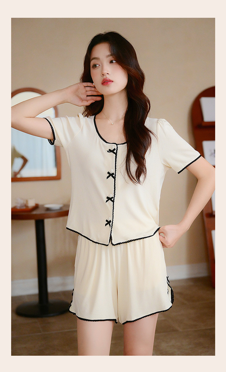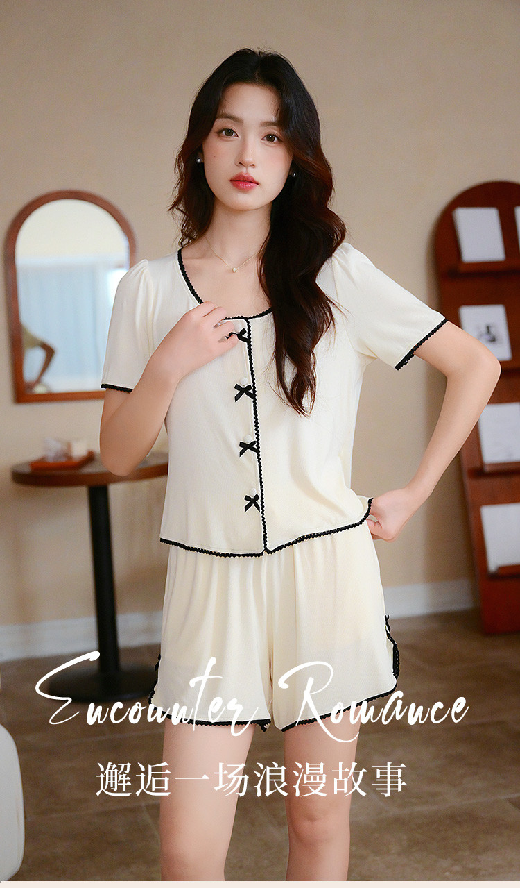商品名称:【优雅小香风】可外穿女士家居服套装夏款舒适亲肤短袖短裤睡衣 154763
