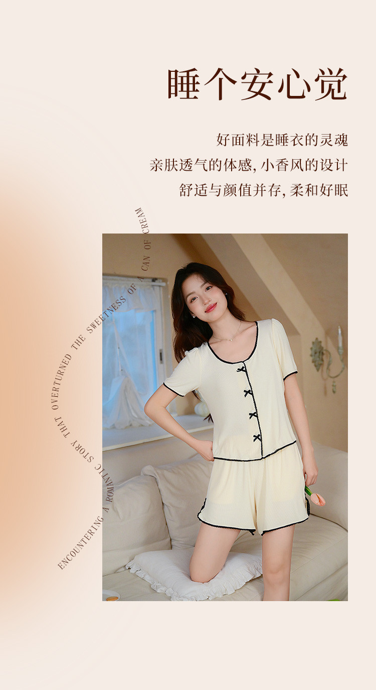 【优雅小香风】可外穿女士家居服套装夏款舒适亲肤短袖短裤睡衣 154763