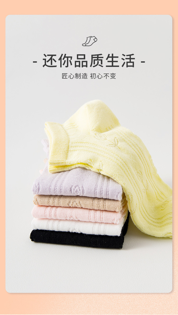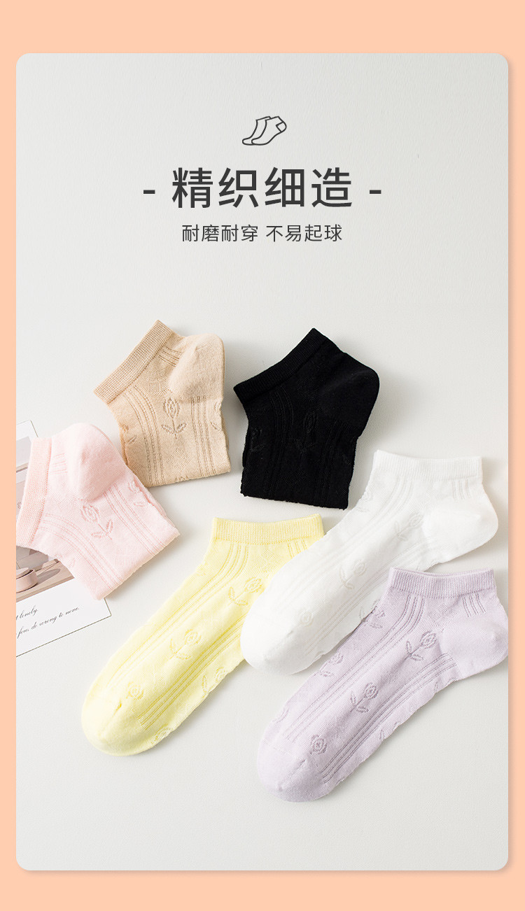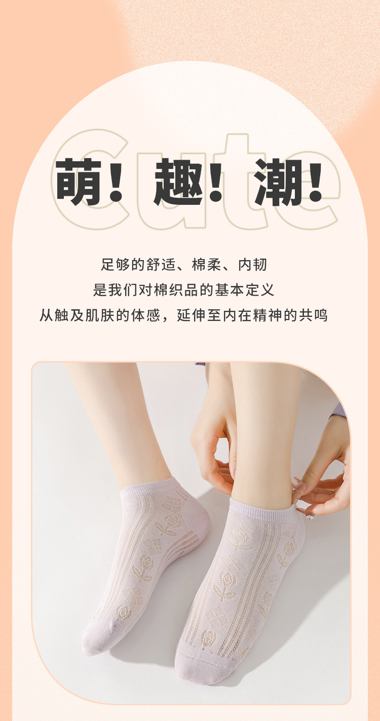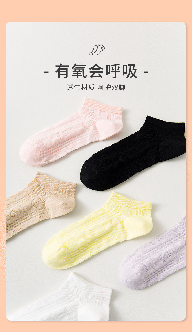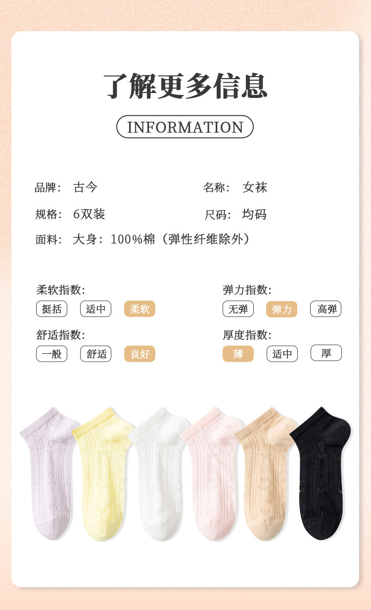 商品名称:【6双装】袜子100%纯棉防臭女士夏季薄款网眼透气不掉跟船袜 491787