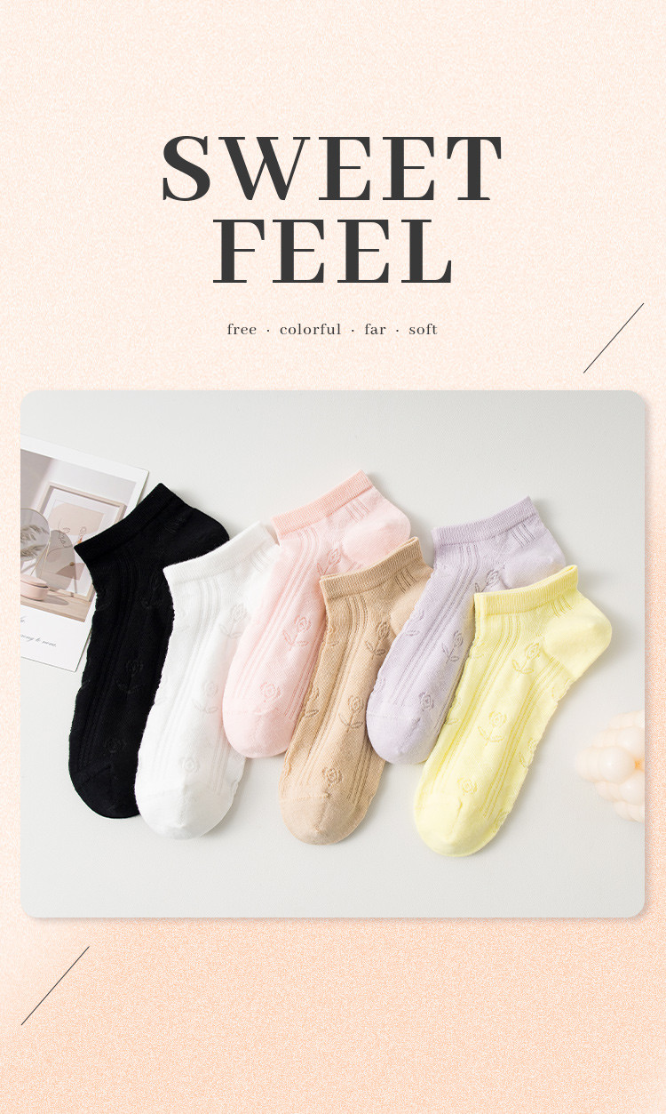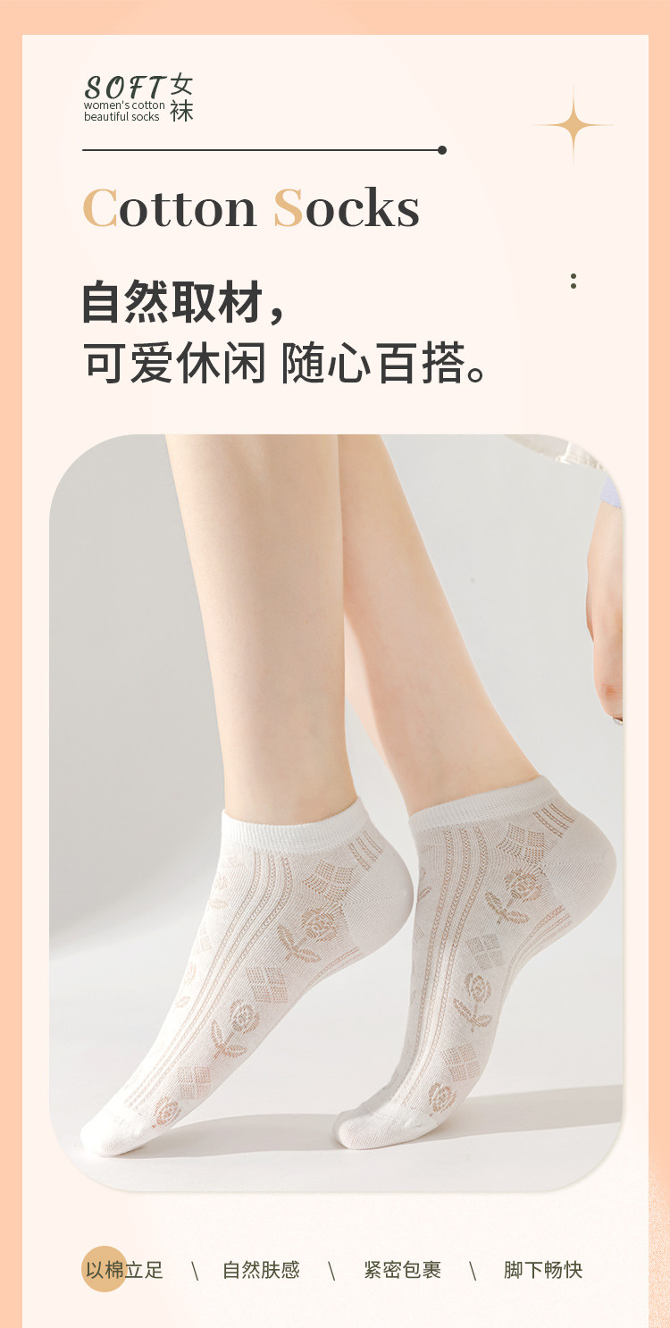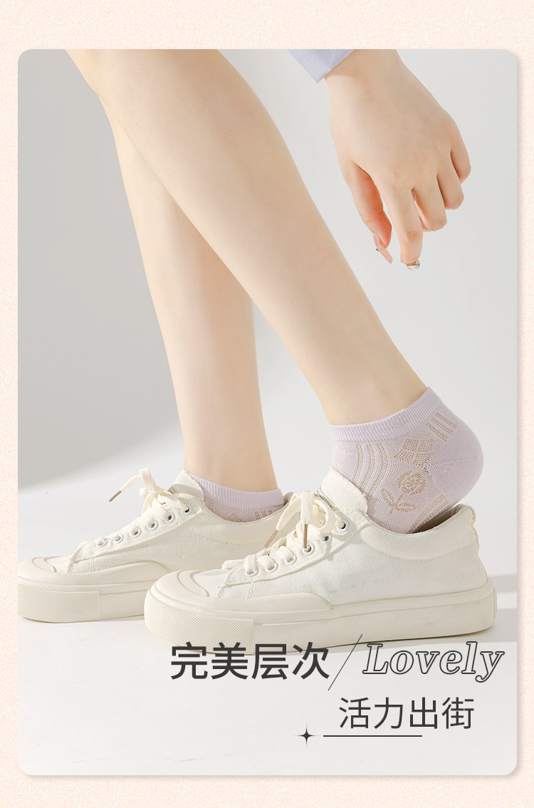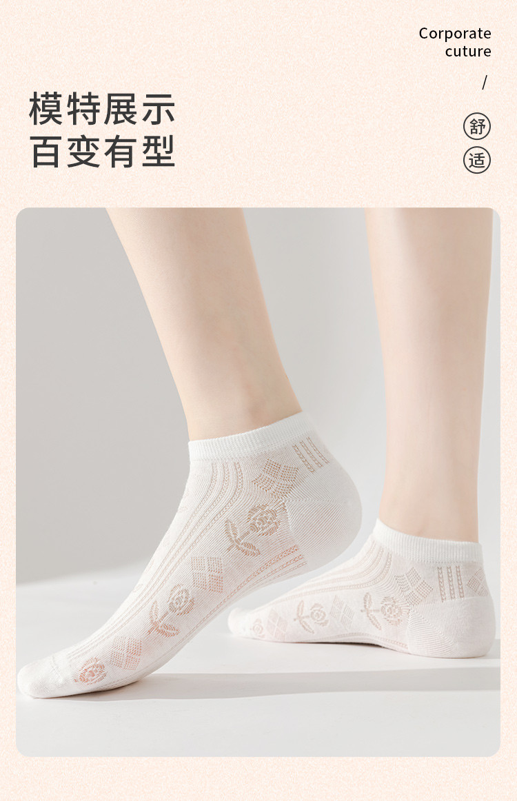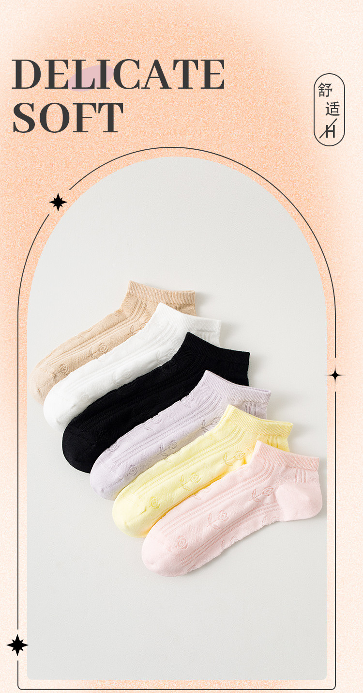 商品名称:【6双装】袜子100%纯棉防臭女士夏季薄款网眼透气不掉跟船袜 491787