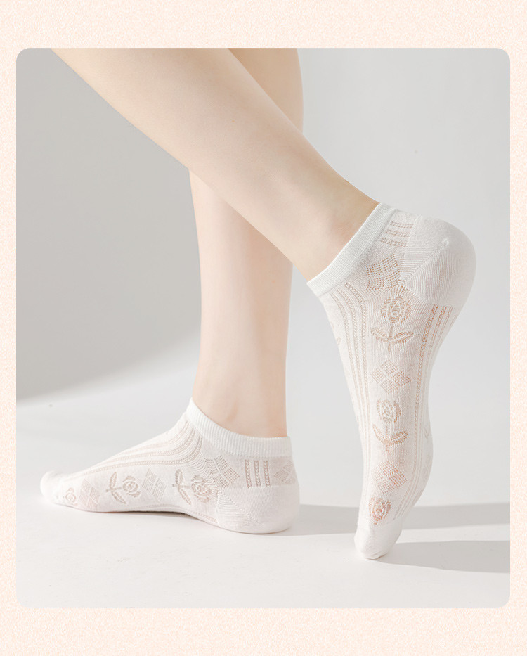 【6双装】袜子100%纯棉防臭女士夏季薄款网眼透气不掉跟船袜 491787