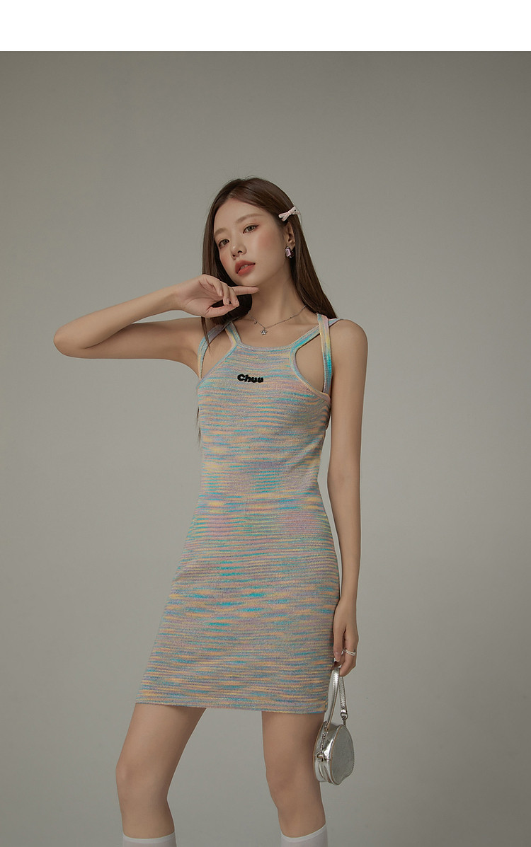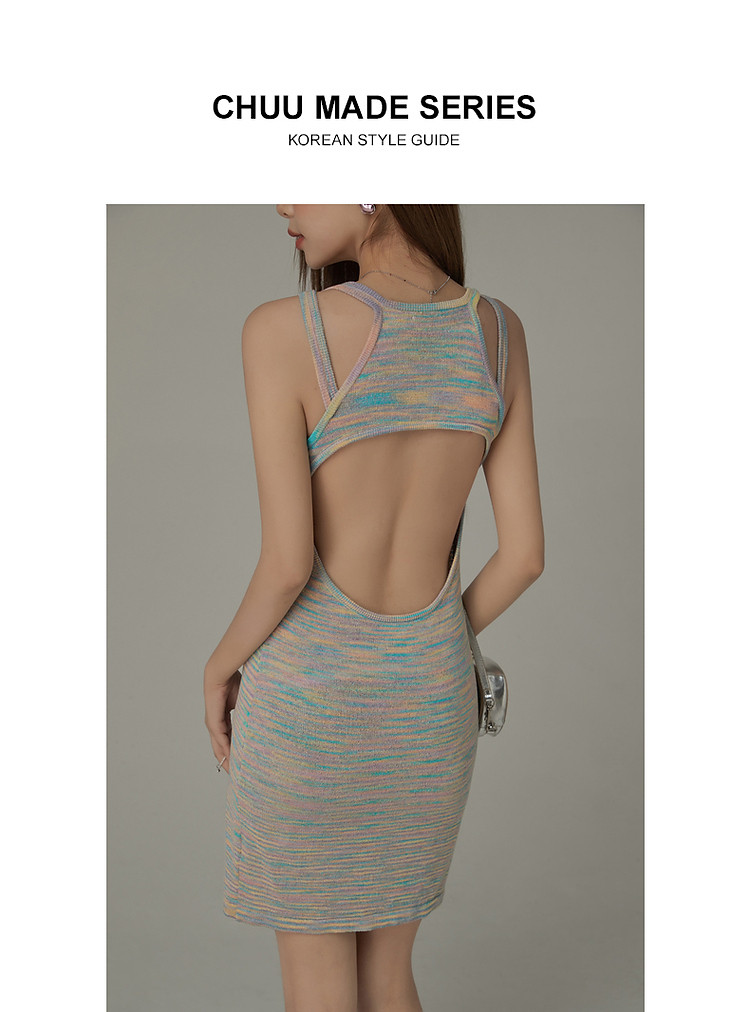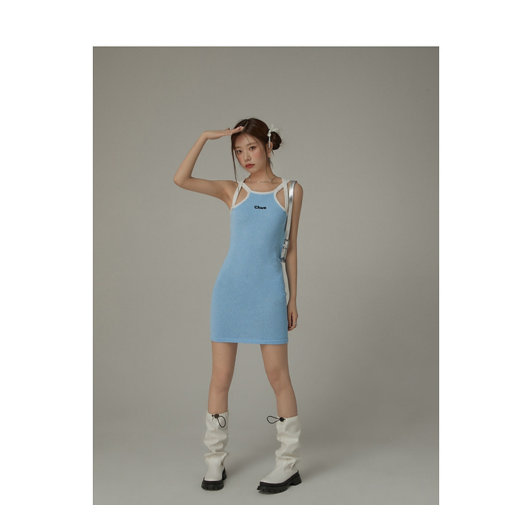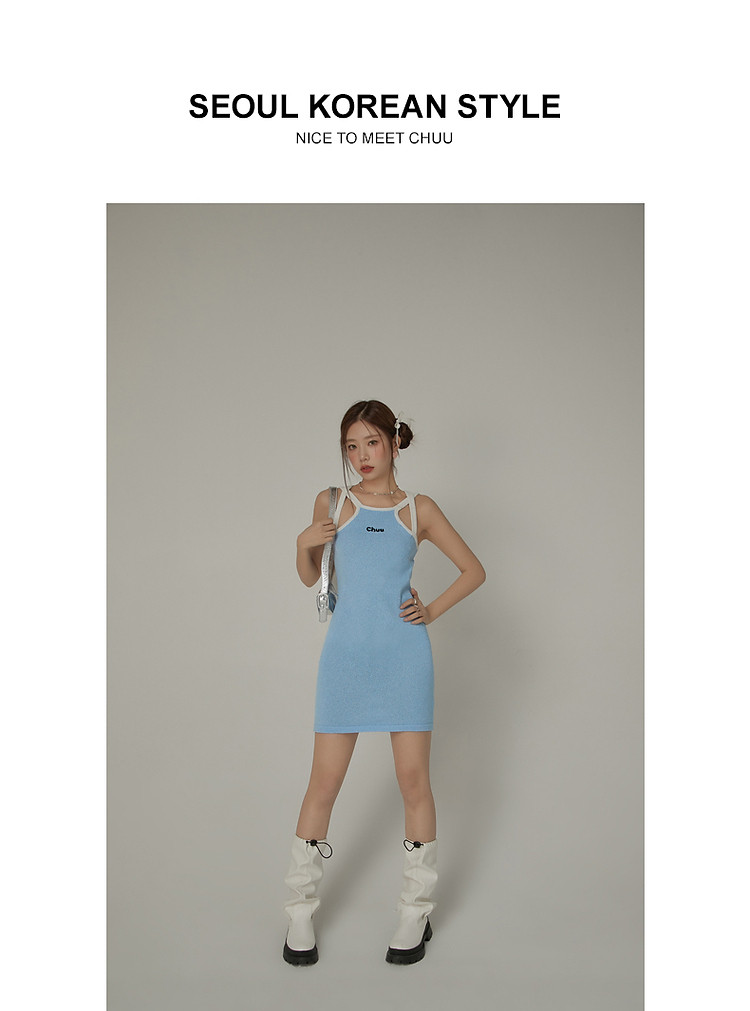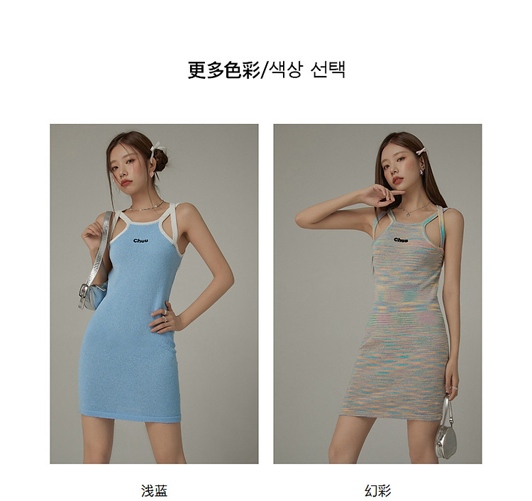 商品名称:字母刺绣吊带连衣裙女夏镂空露背辣妹包臀短裙子 996563