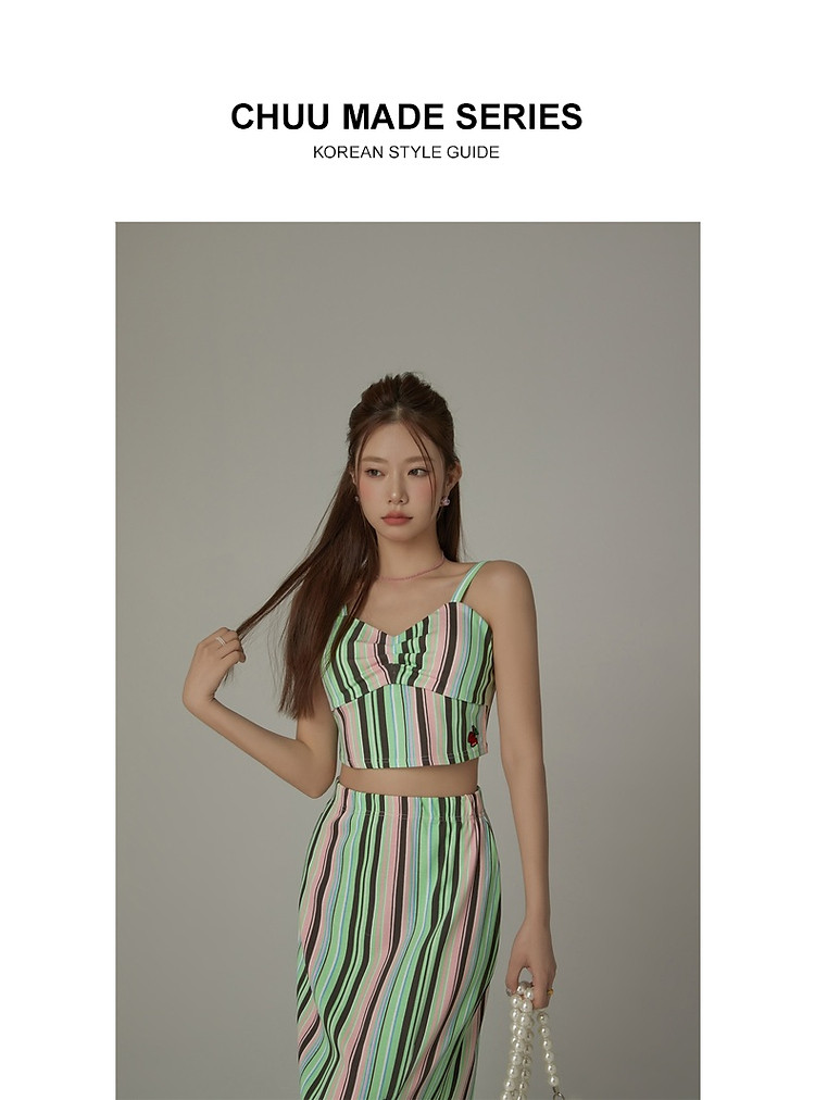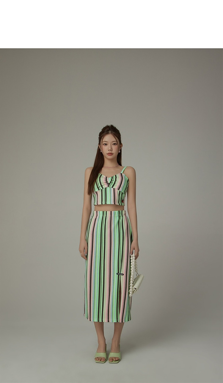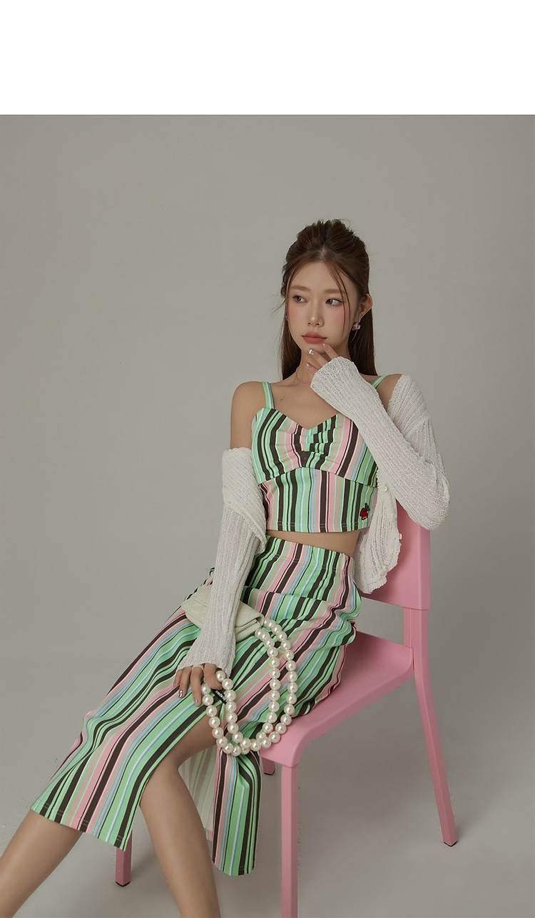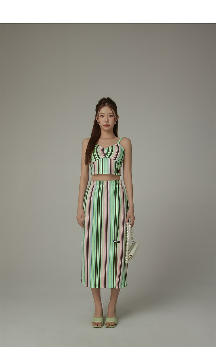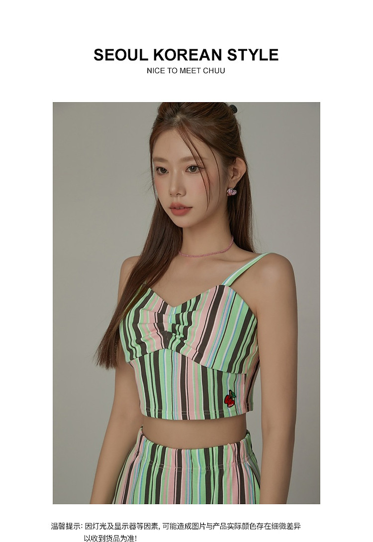 条纹撞色吊带女春夏个性显瘦设计感修身短款小背心 400403