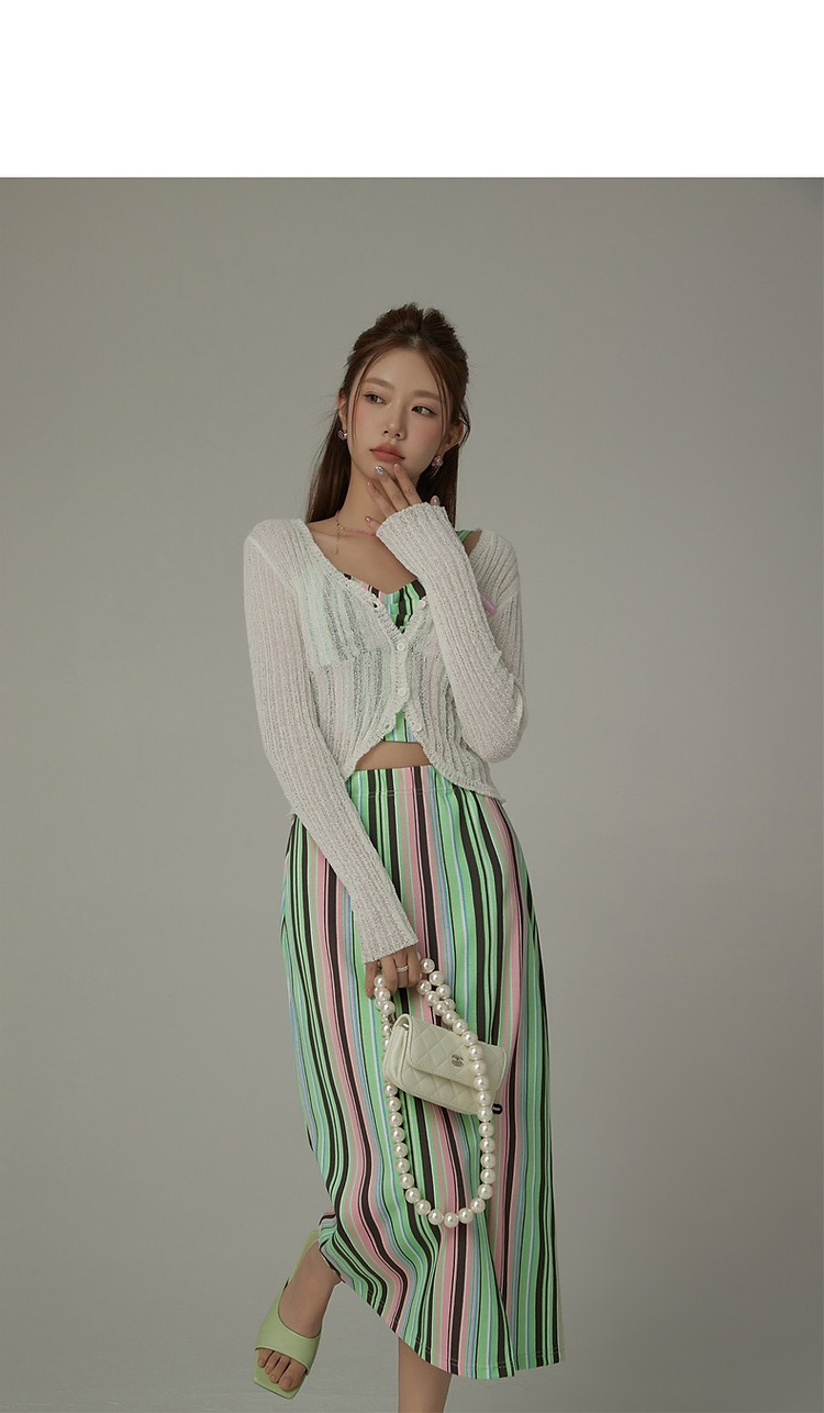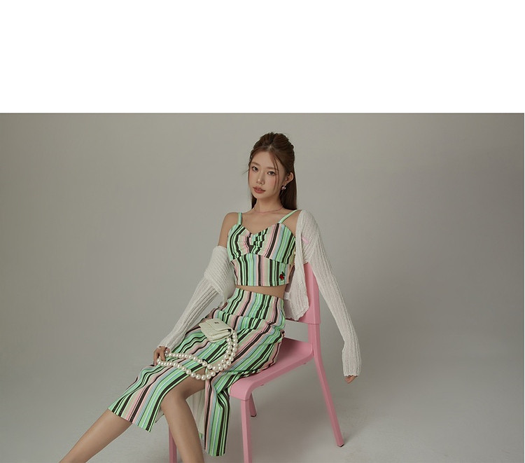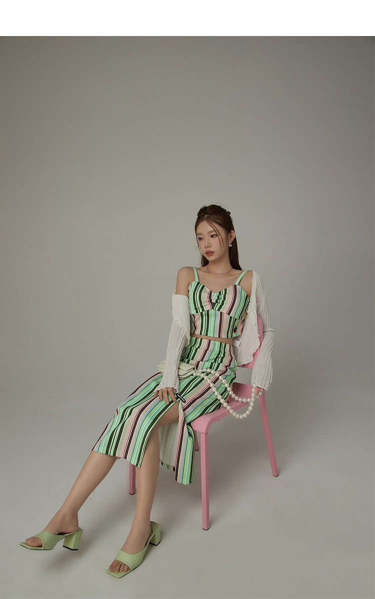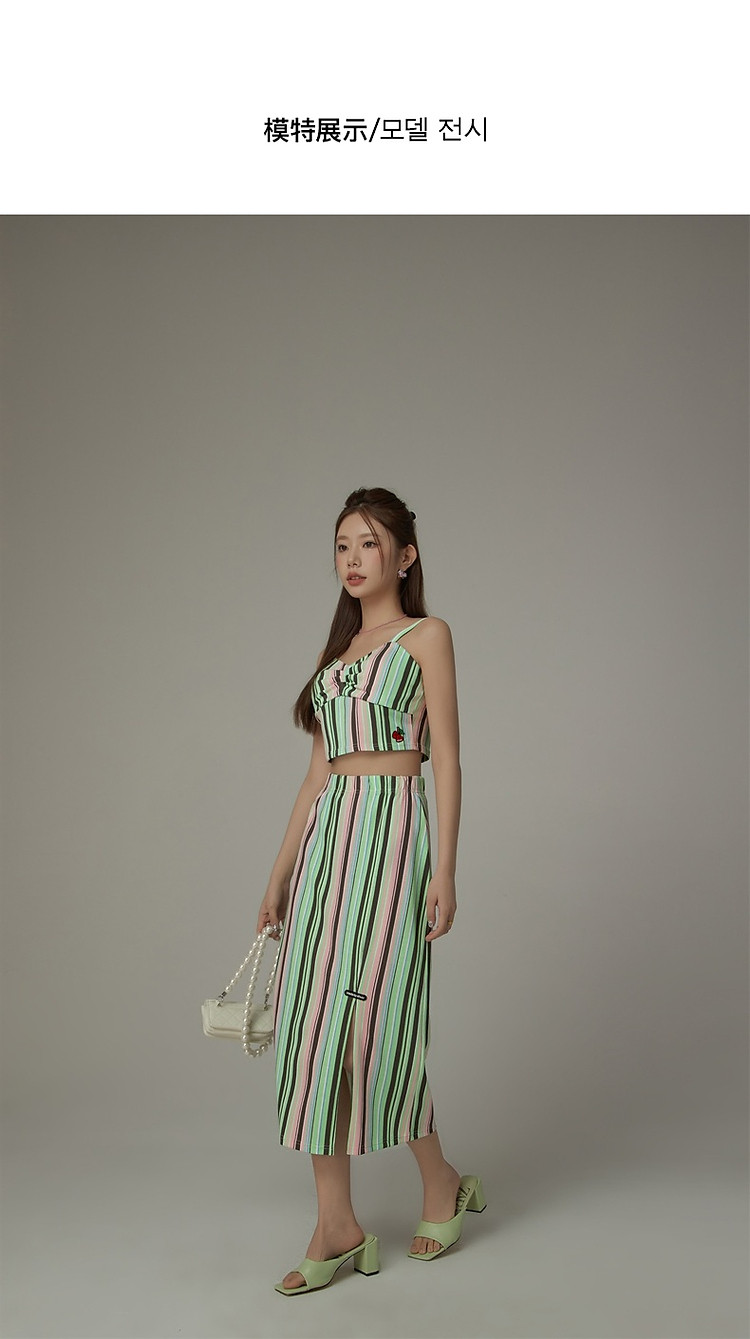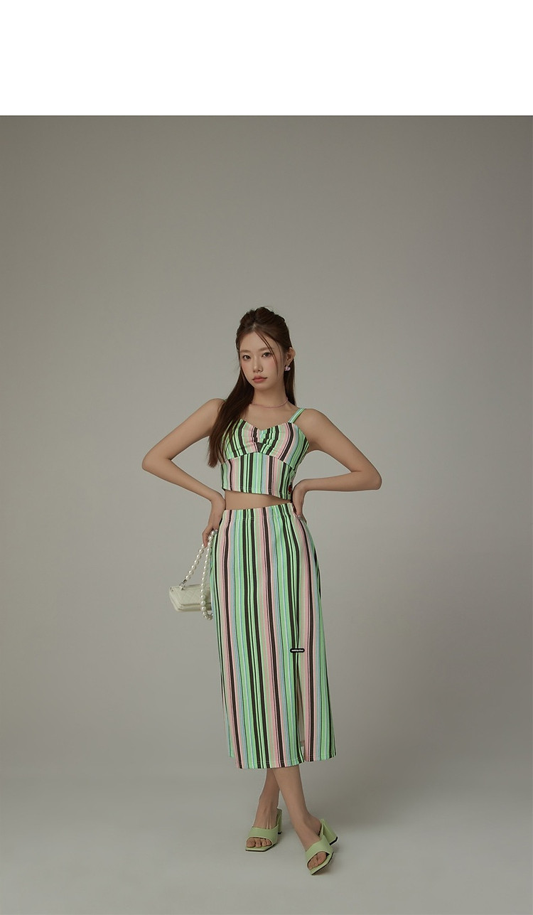条纹撞色吊带女春夏个性显瘦设计感修身短款小背心 400403