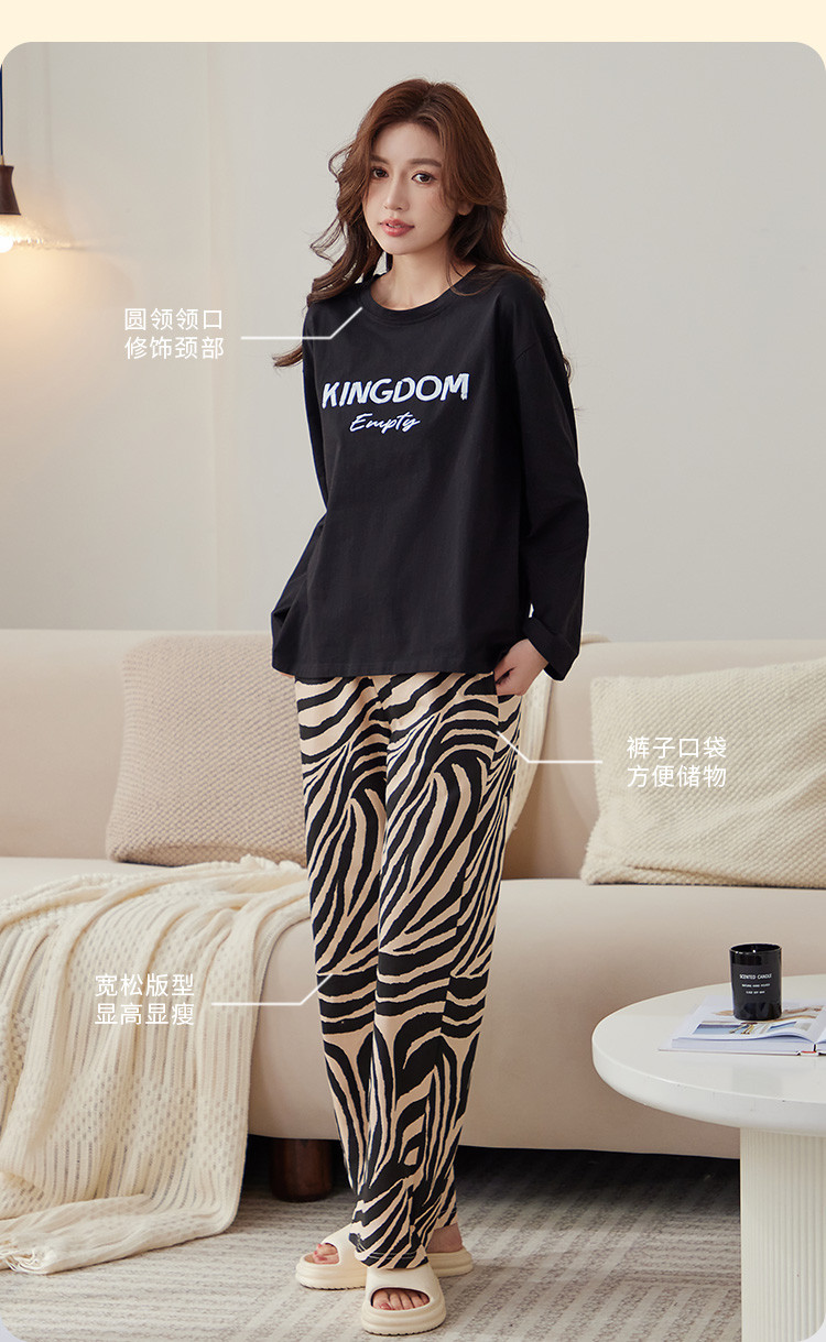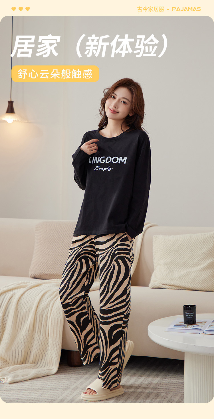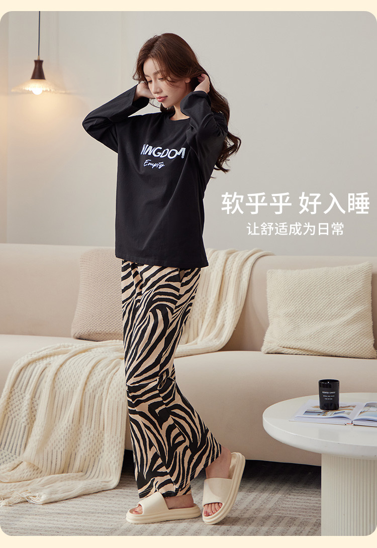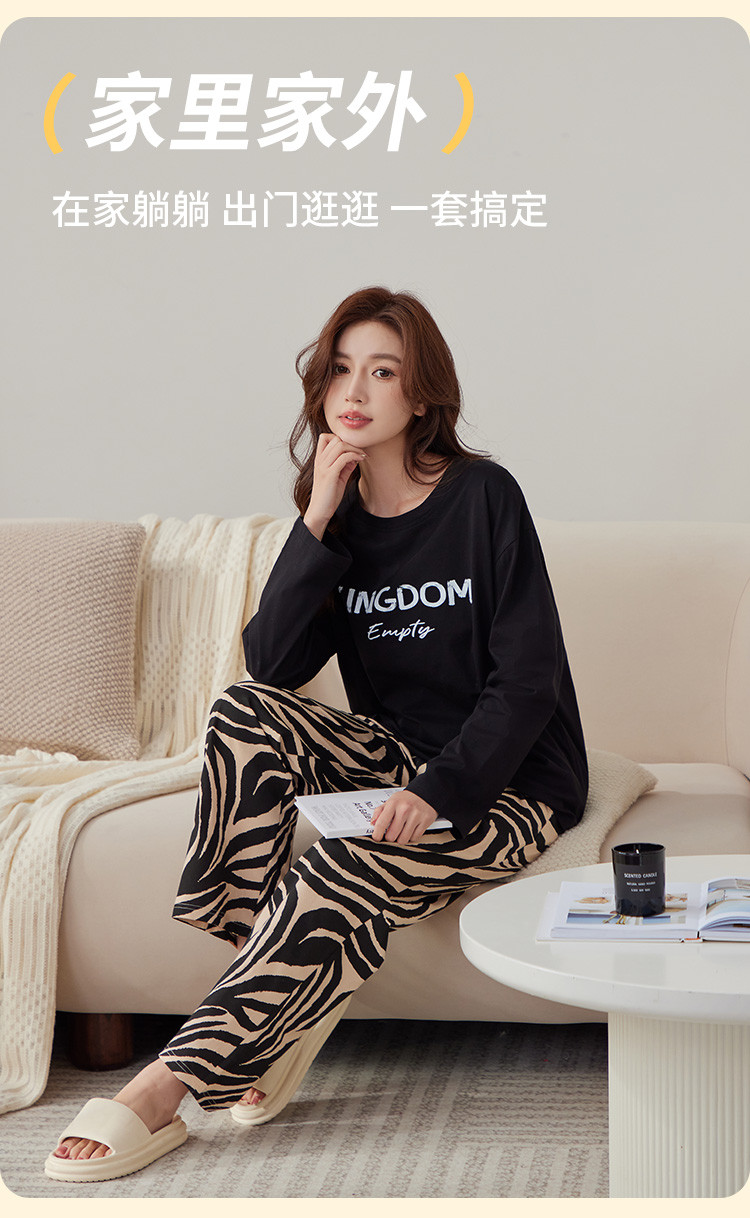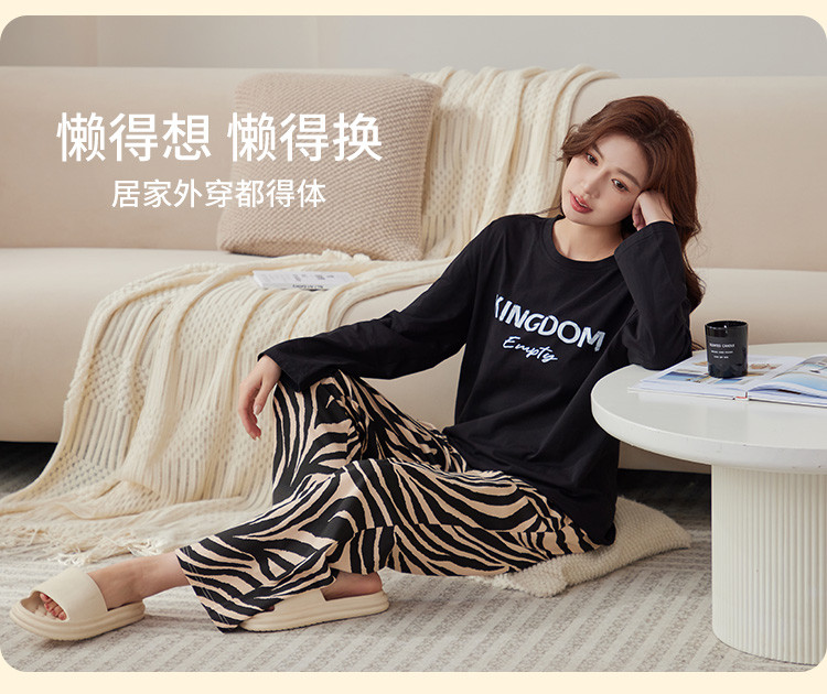 商品名称:【100%棉】春秋款纯棉长袖女士睡衣高级感可外穿家居服套装 386507