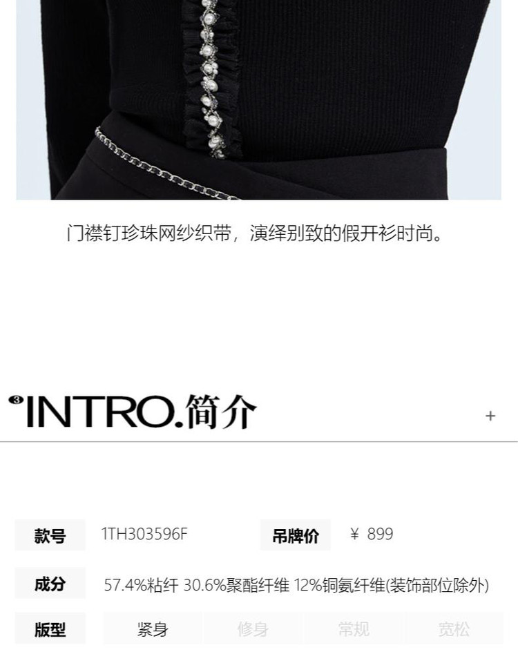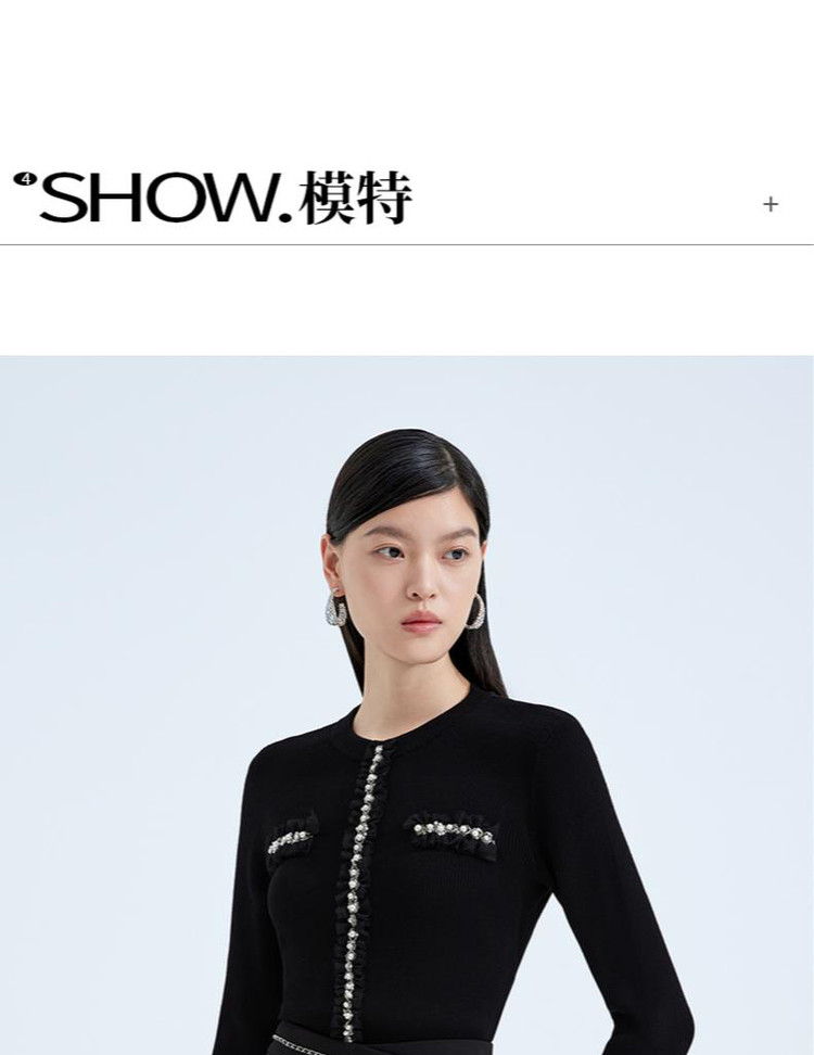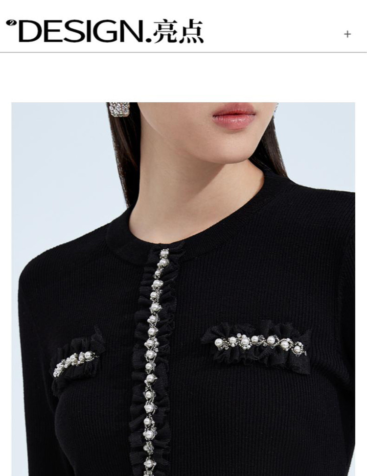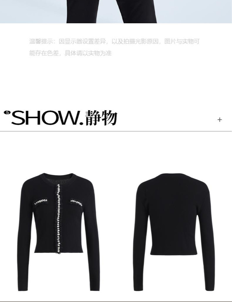 商品名称:黑标系列春装 手工钉钻法式小香风修身针织衫女 550479