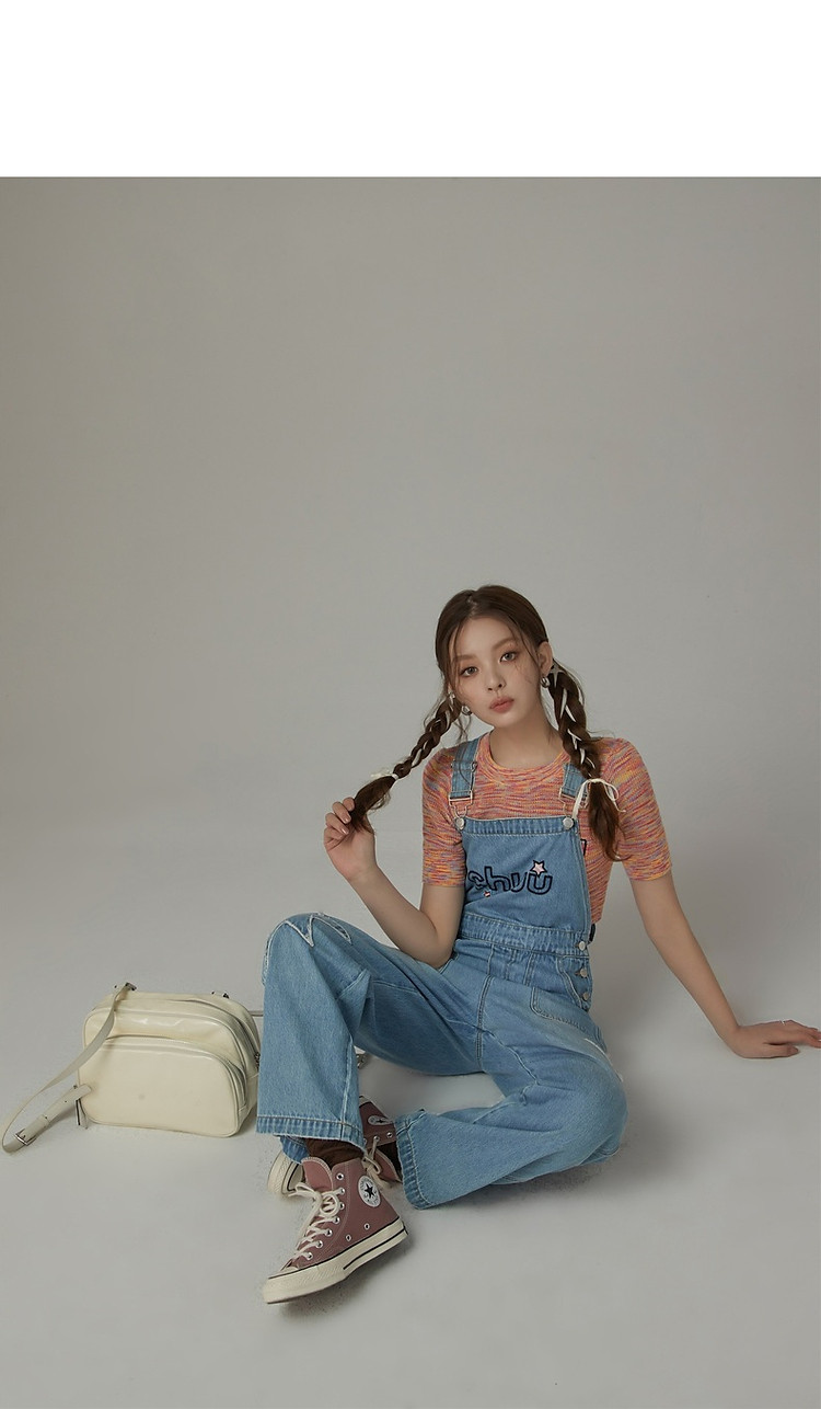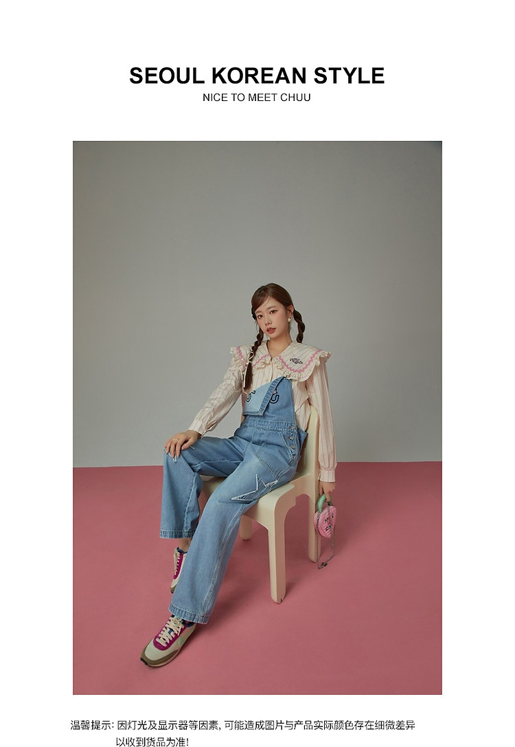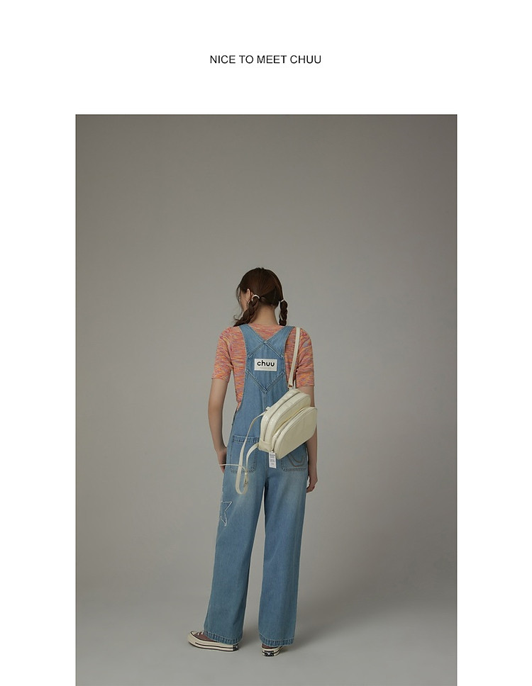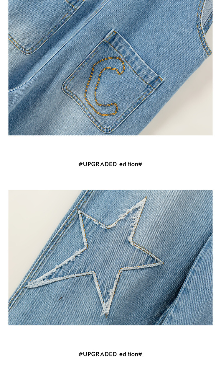 商品名称:刺绣背带牛仔裤女夏字母星星宽松阔腿长裤子 961811