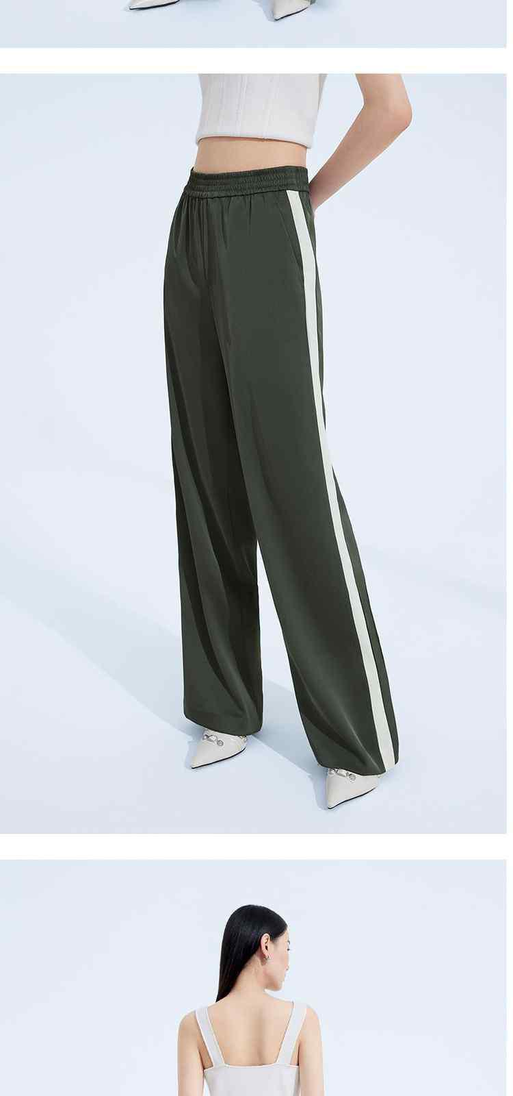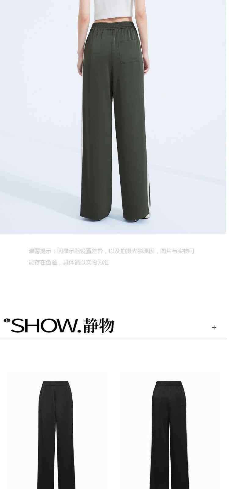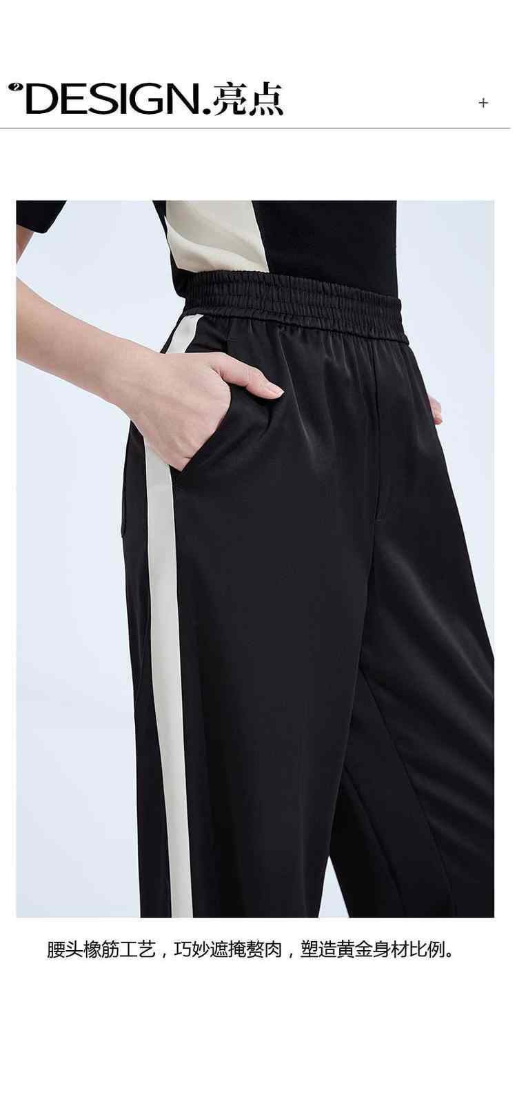 商品名称:春装高腰宽松显瘦运动风缎面阔腿休闲裤女 054415