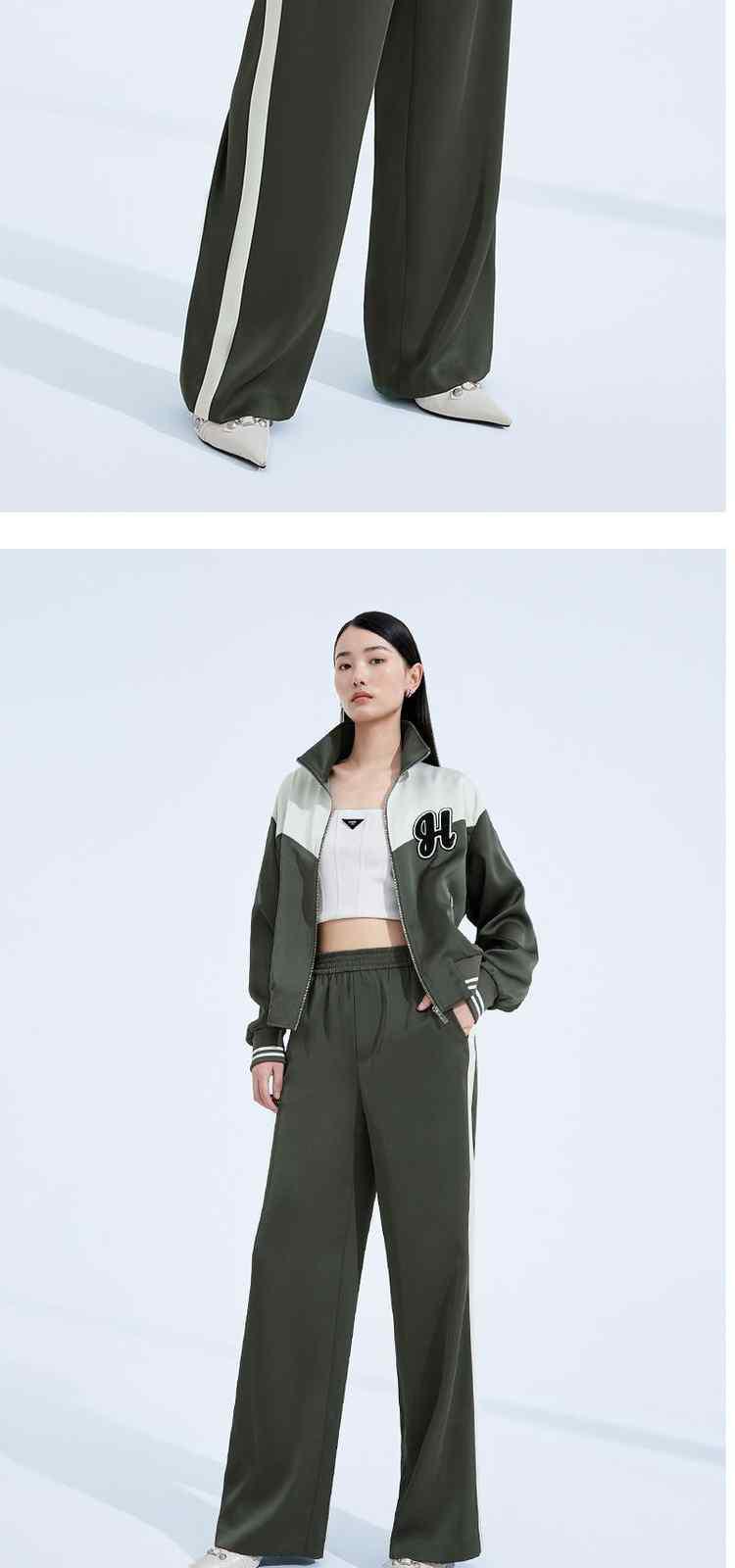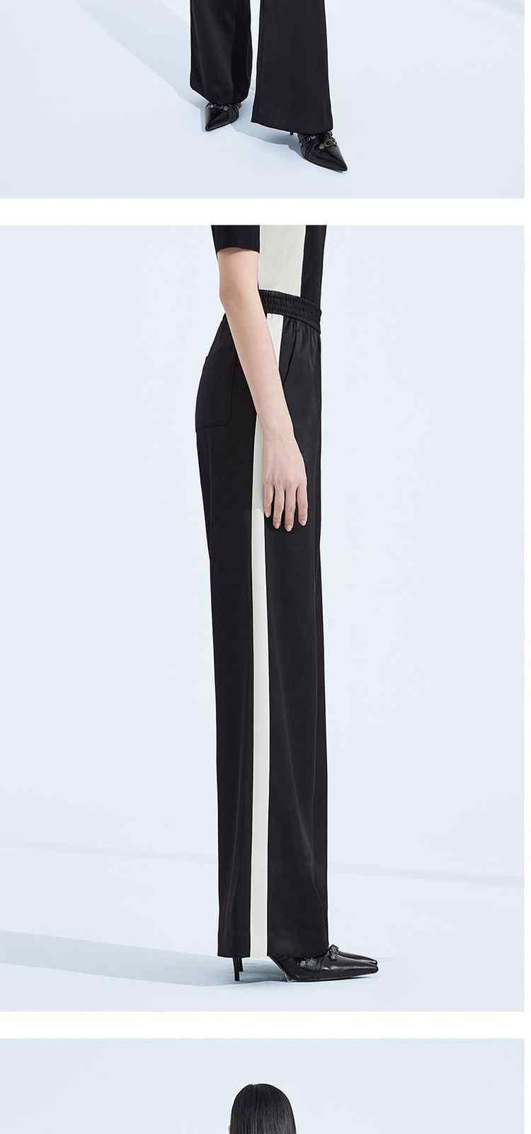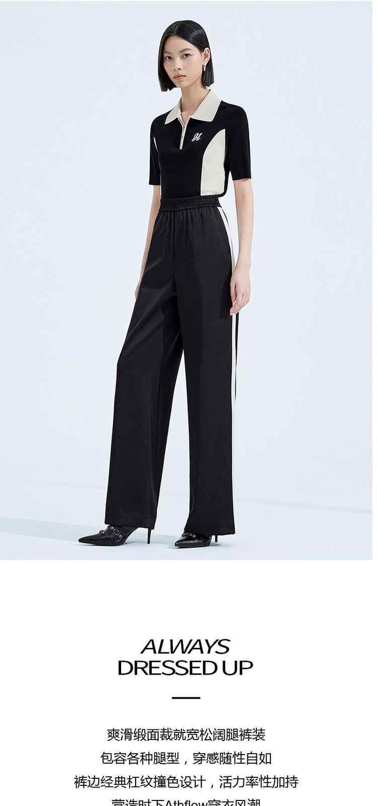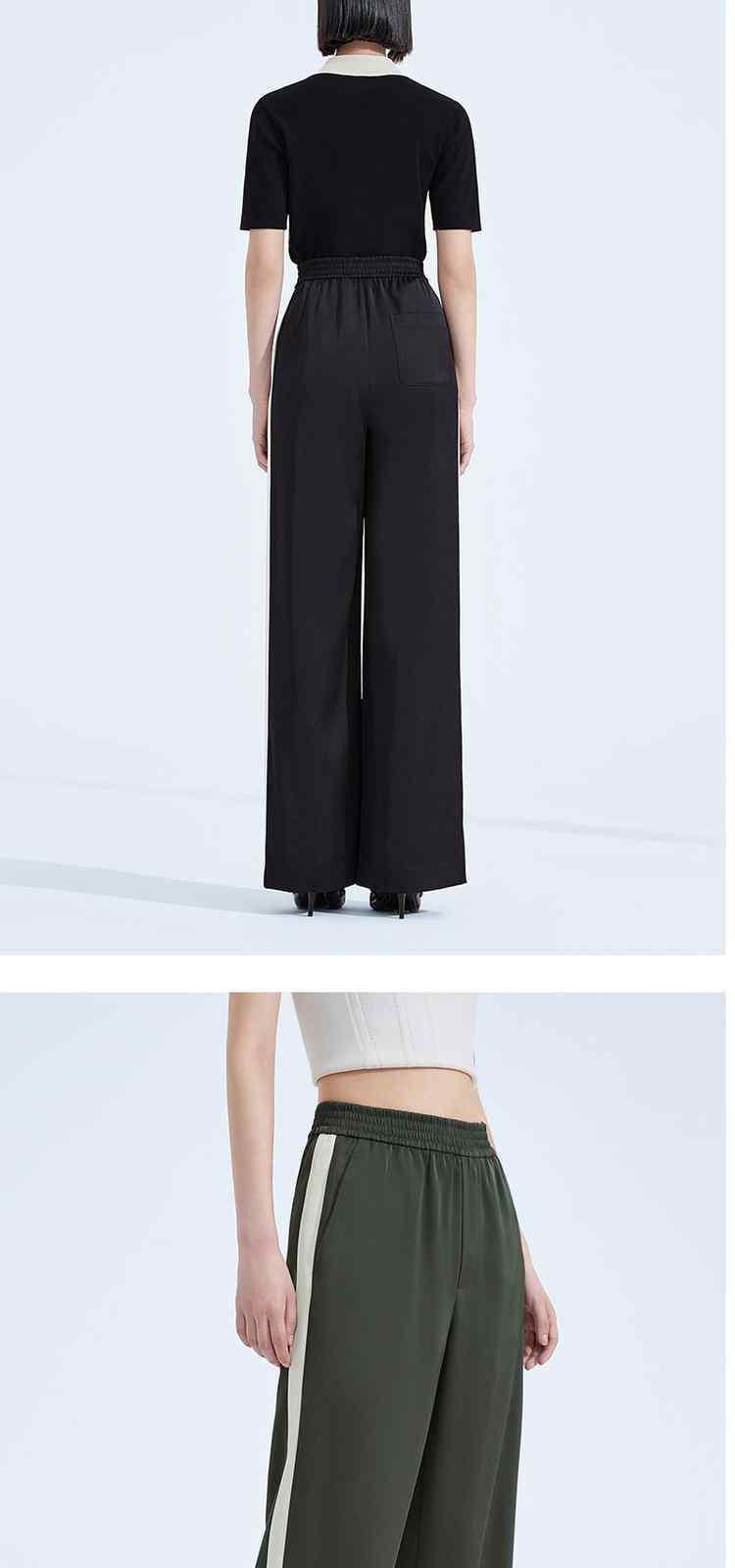 商品名称:春装高腰宽松显瘦运动风缎面阔腿休闲裤女 054415