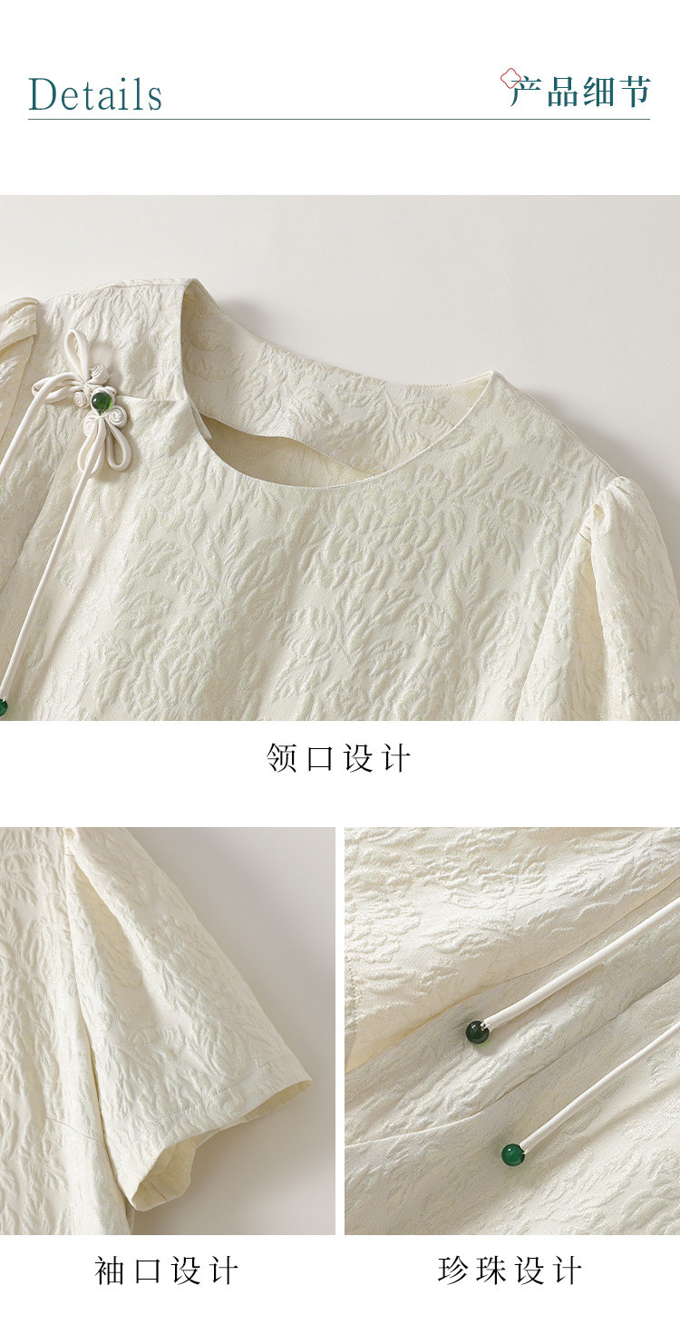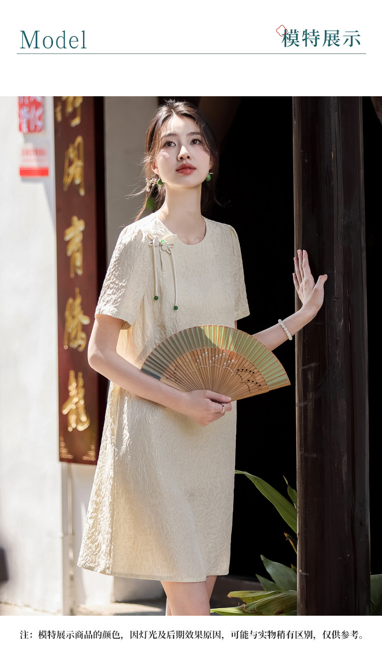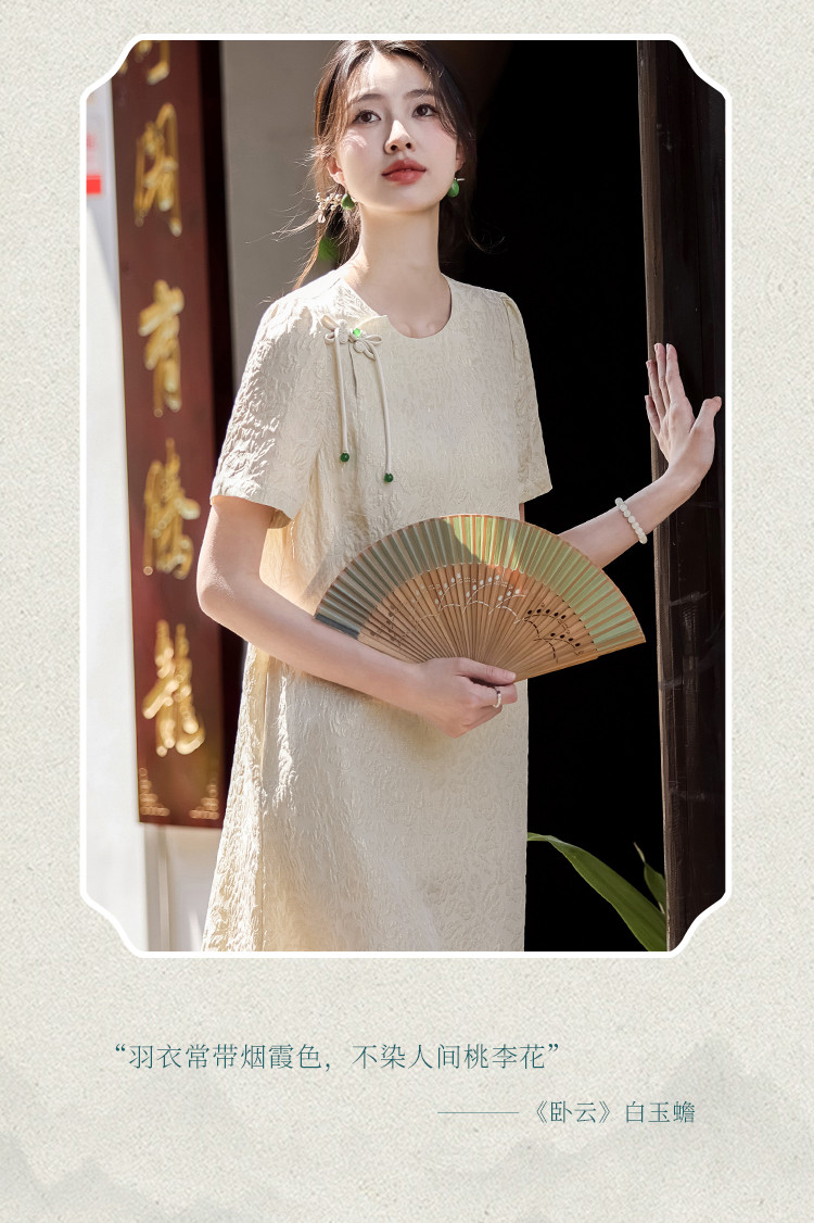 商品名称:90桑蚕丝~国风新中式圆领纯色提花桑蚕丝连衣裙高级感裙子夏 061331
