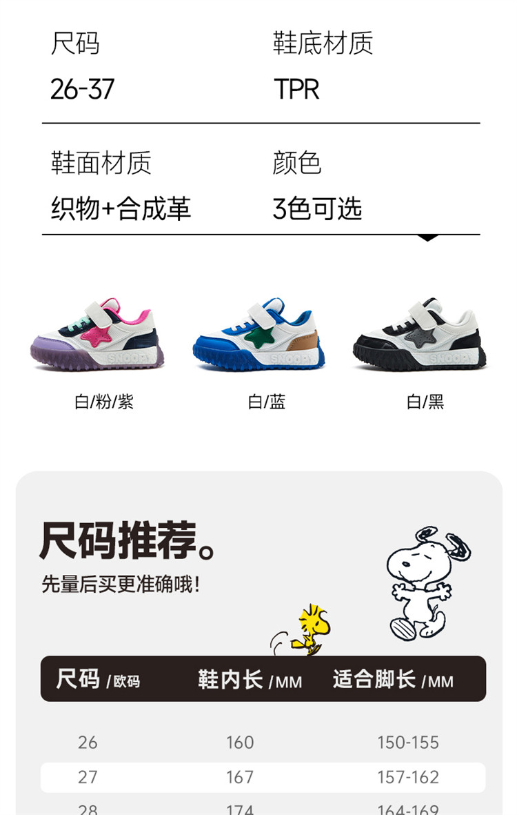 商品名称:史努比春秋季时尚儿童户外休闲老爹鞋轻便柔韧运动鞋 774621