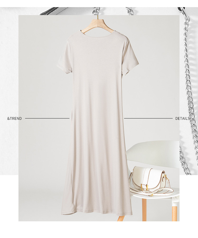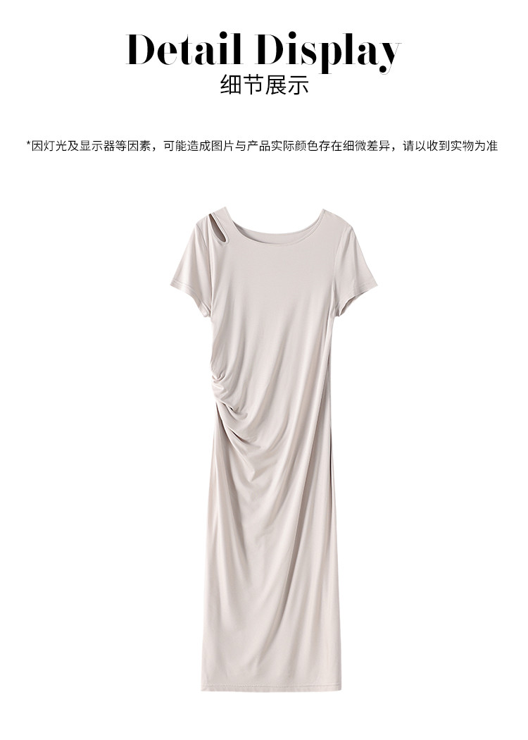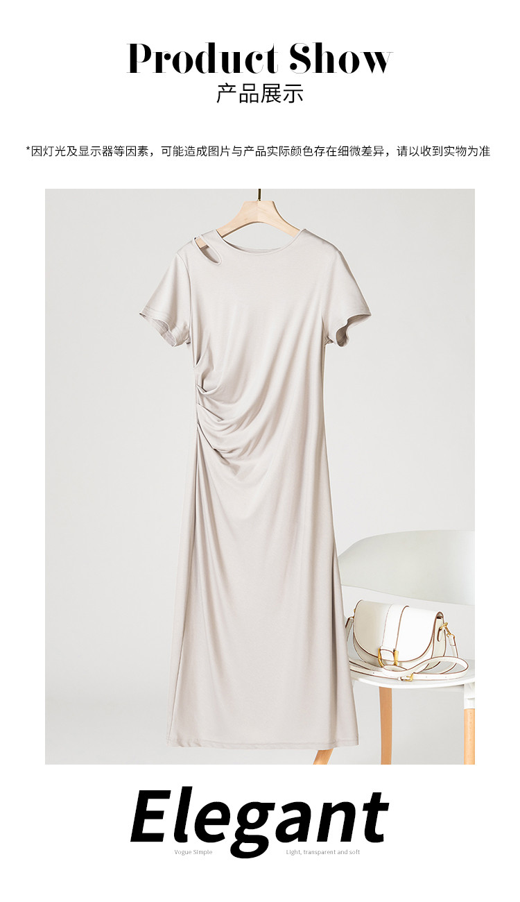 商品名称:【小黑裙】赫本风夏季圆领短袖褶皱设计含桑蚕丝法式连衣裙中长裙 998291